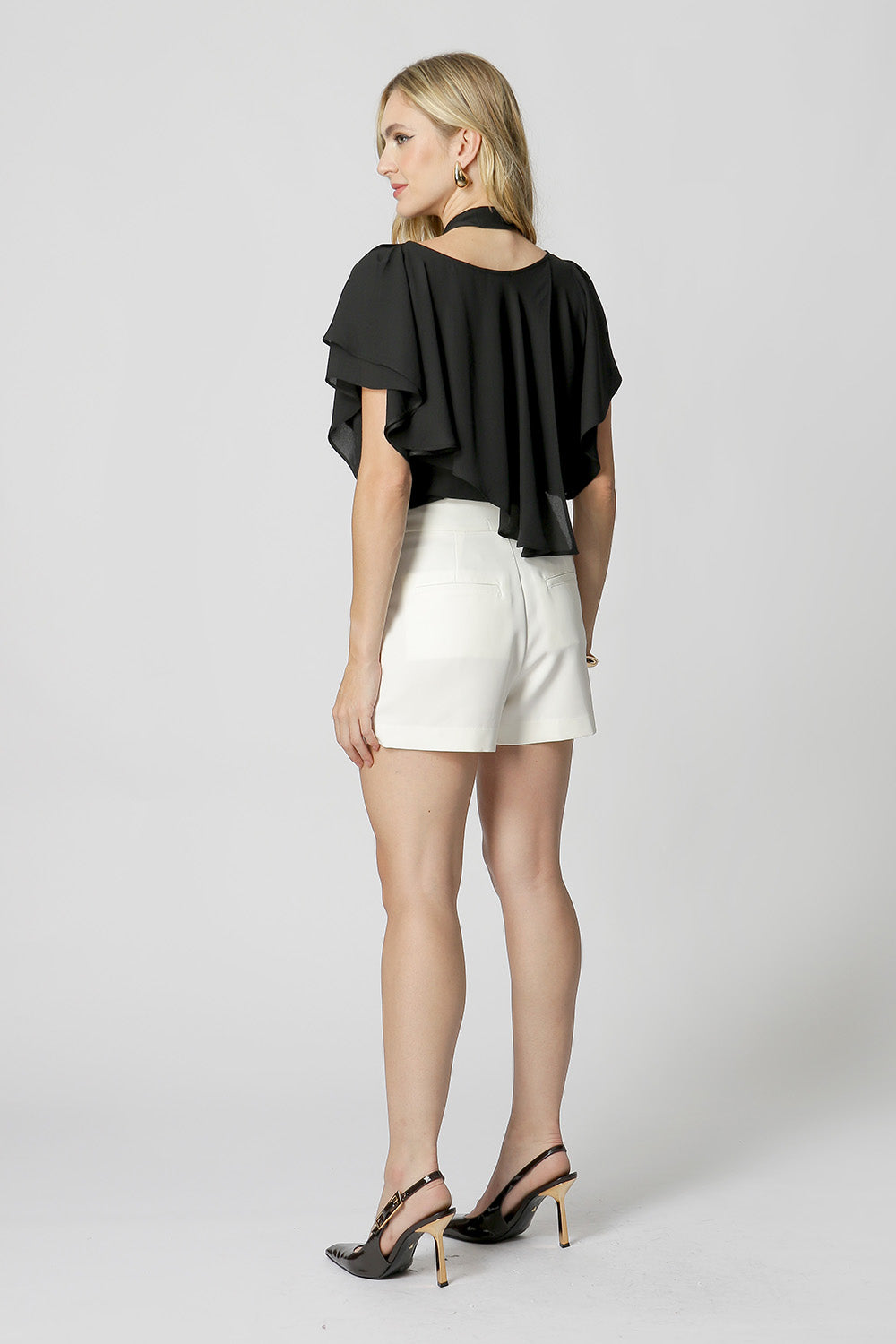 Blusa manga angel assimétrica, feita em crepe fluido. Peça elegante e confortável, acompanha faixa do próprio tecido, pode ser usada para dar um ajuste na cintura, criando um efeito mais estruturado ou um visual mais fluído.