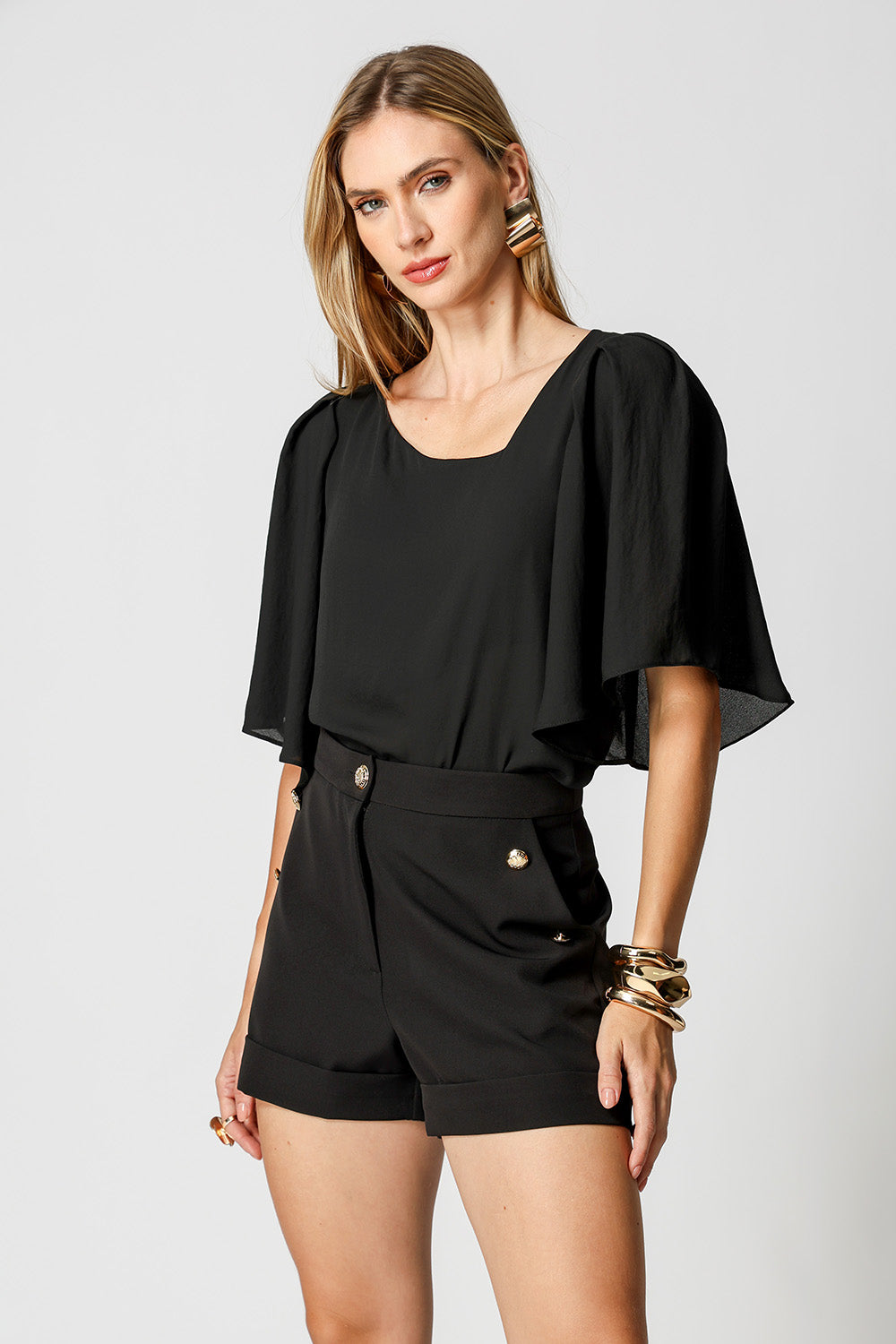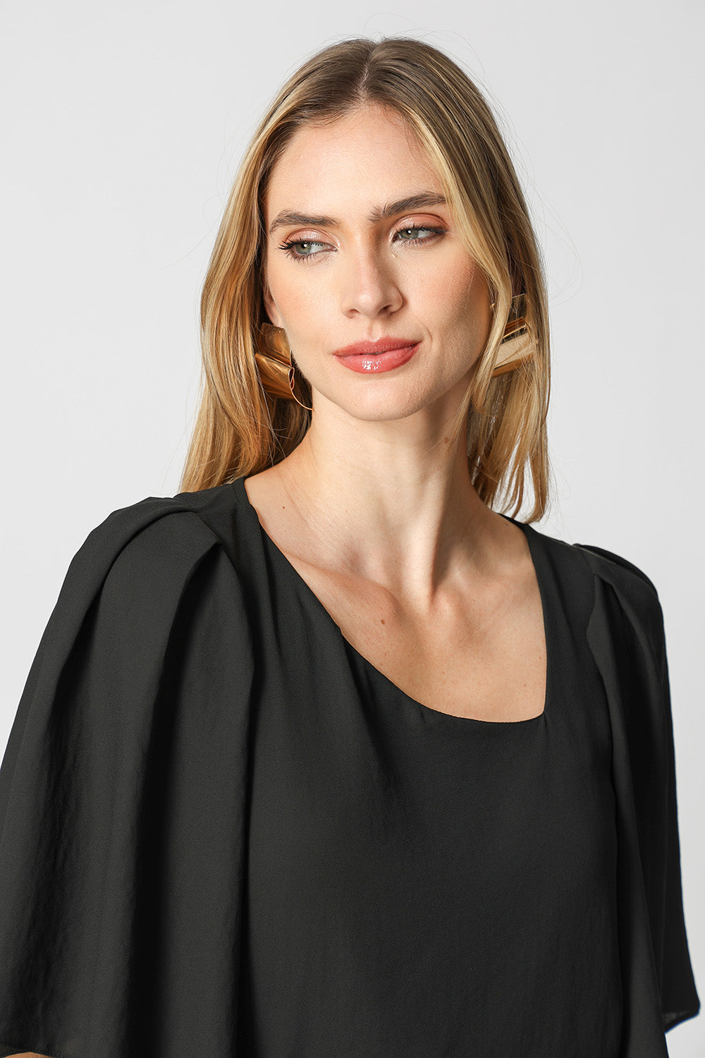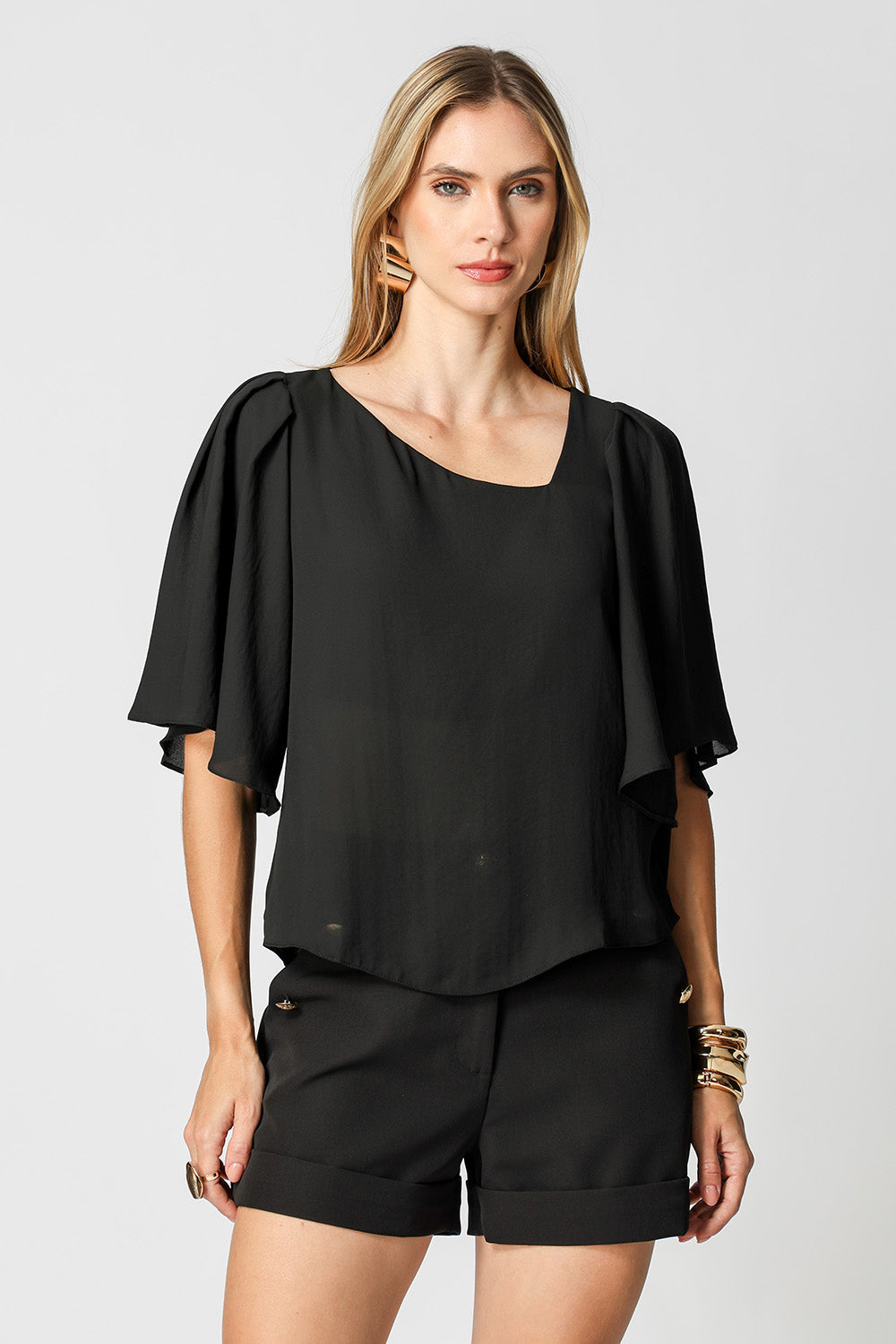 Blusa manga angel decote assimétrico oferece um caimento perfeito trazendo sofisticação e estilo único ao seu guarda-roupa. Perfeito para diferentes ocasiões, seja em eventos mais formais ou em encontros casuais, sempre mantendo a elegância.
