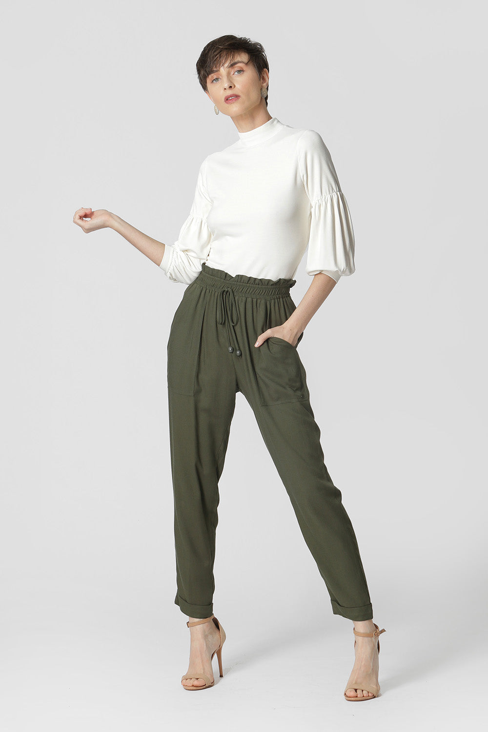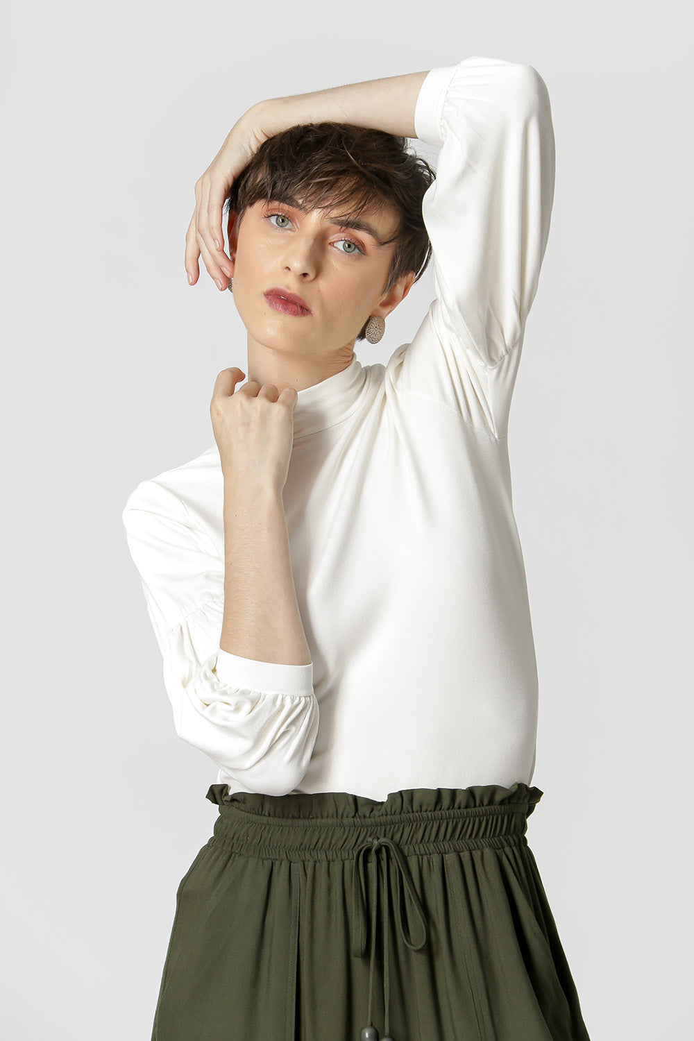 Blusa confeccionada em malha confortável. Possui shape solto ao corpo, com gola alta e manga em formato balloon. Peça ideal para compor looks casuais.