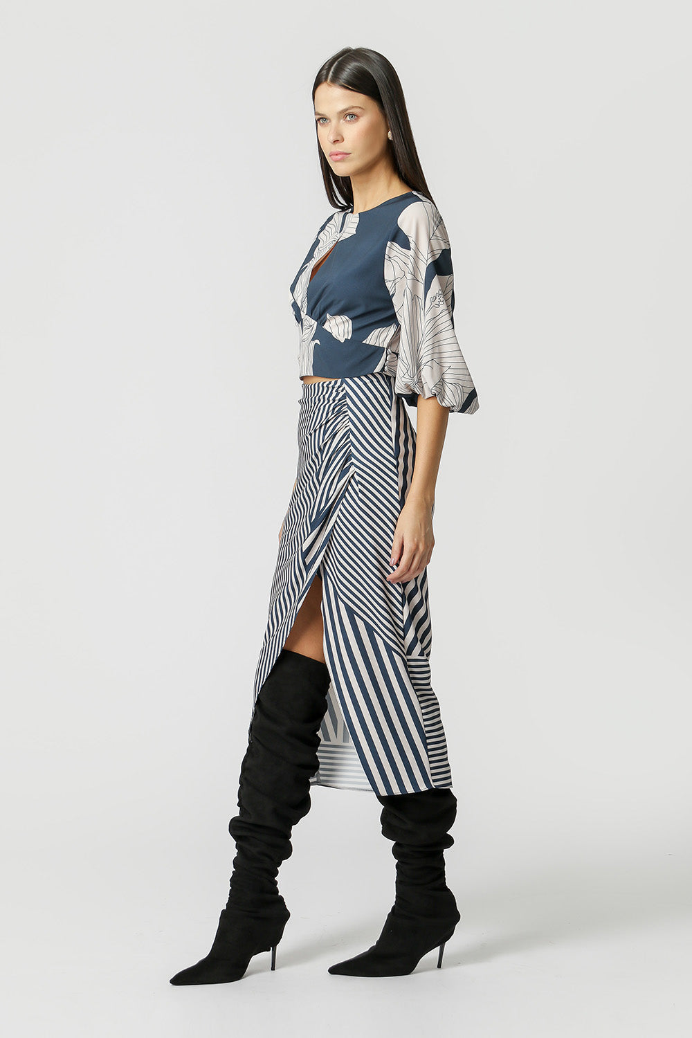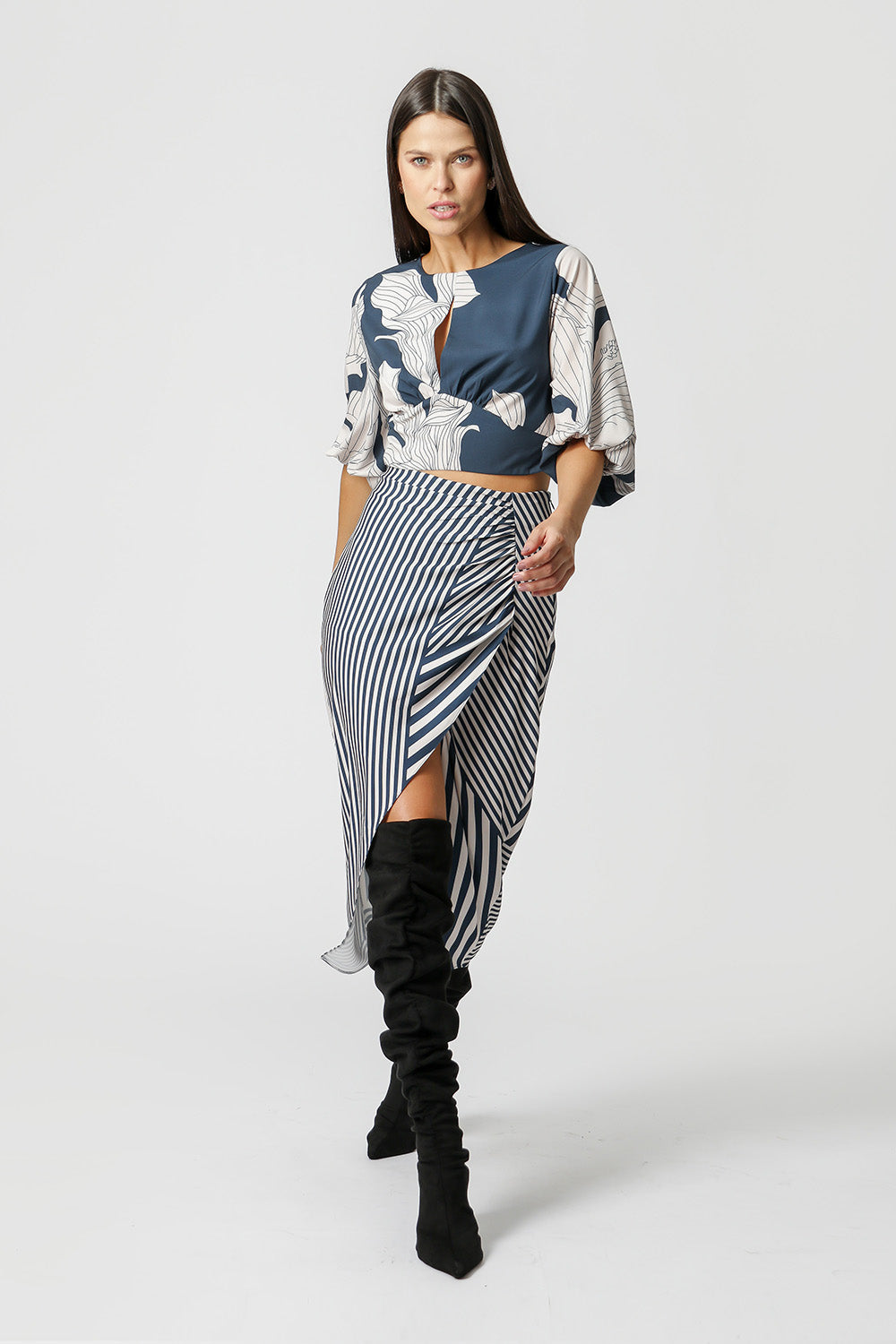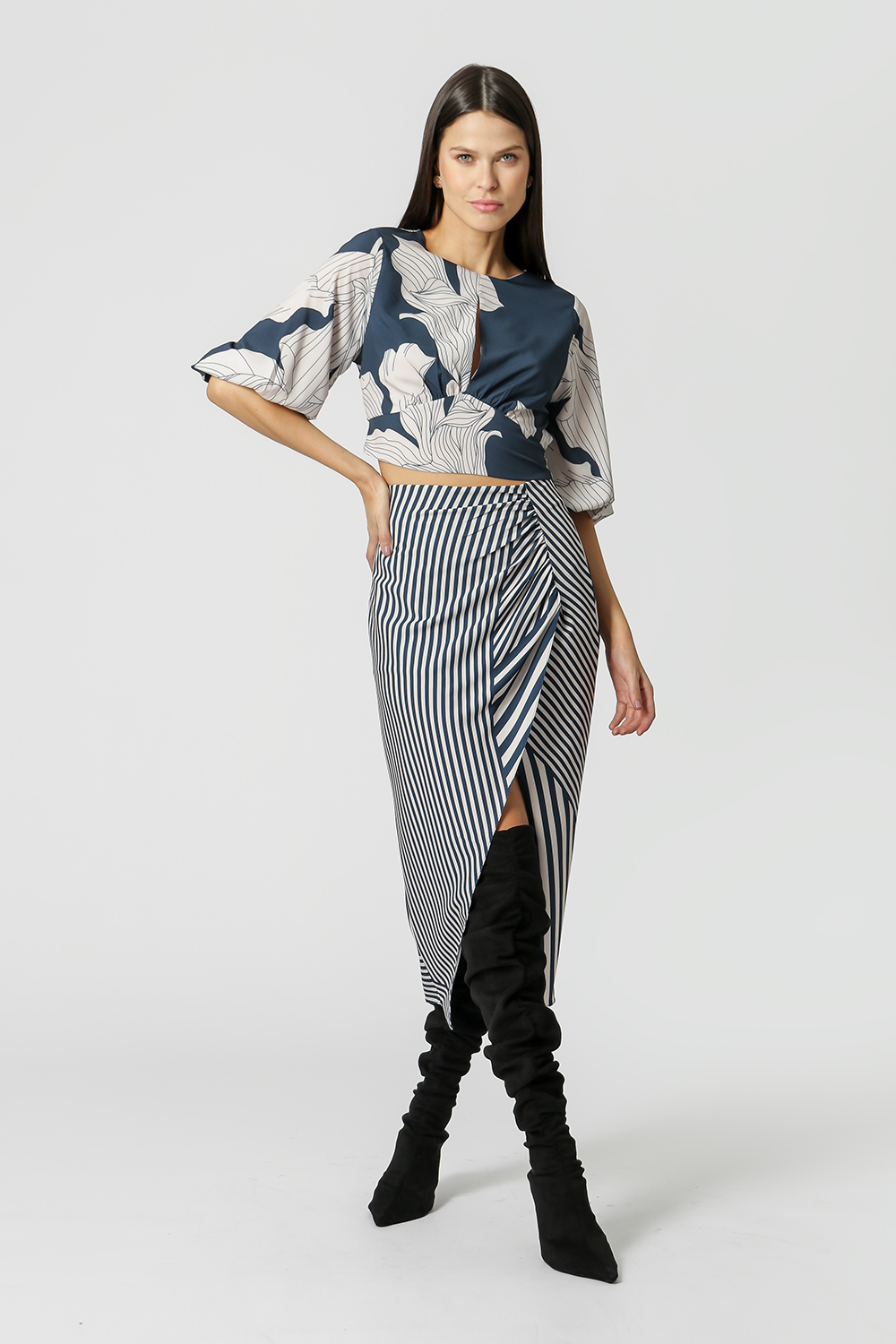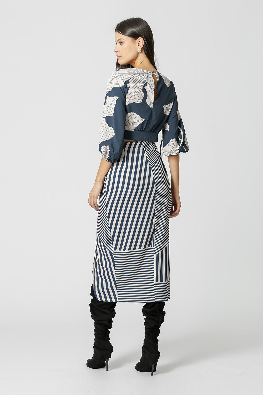 Blusa estampada feita em tecido leve e fluído. Possui detalhe de vazado no decote, manga 3/4 e fecho por botões. Peça com um toque de elegância, perfeita para looks poderosos.