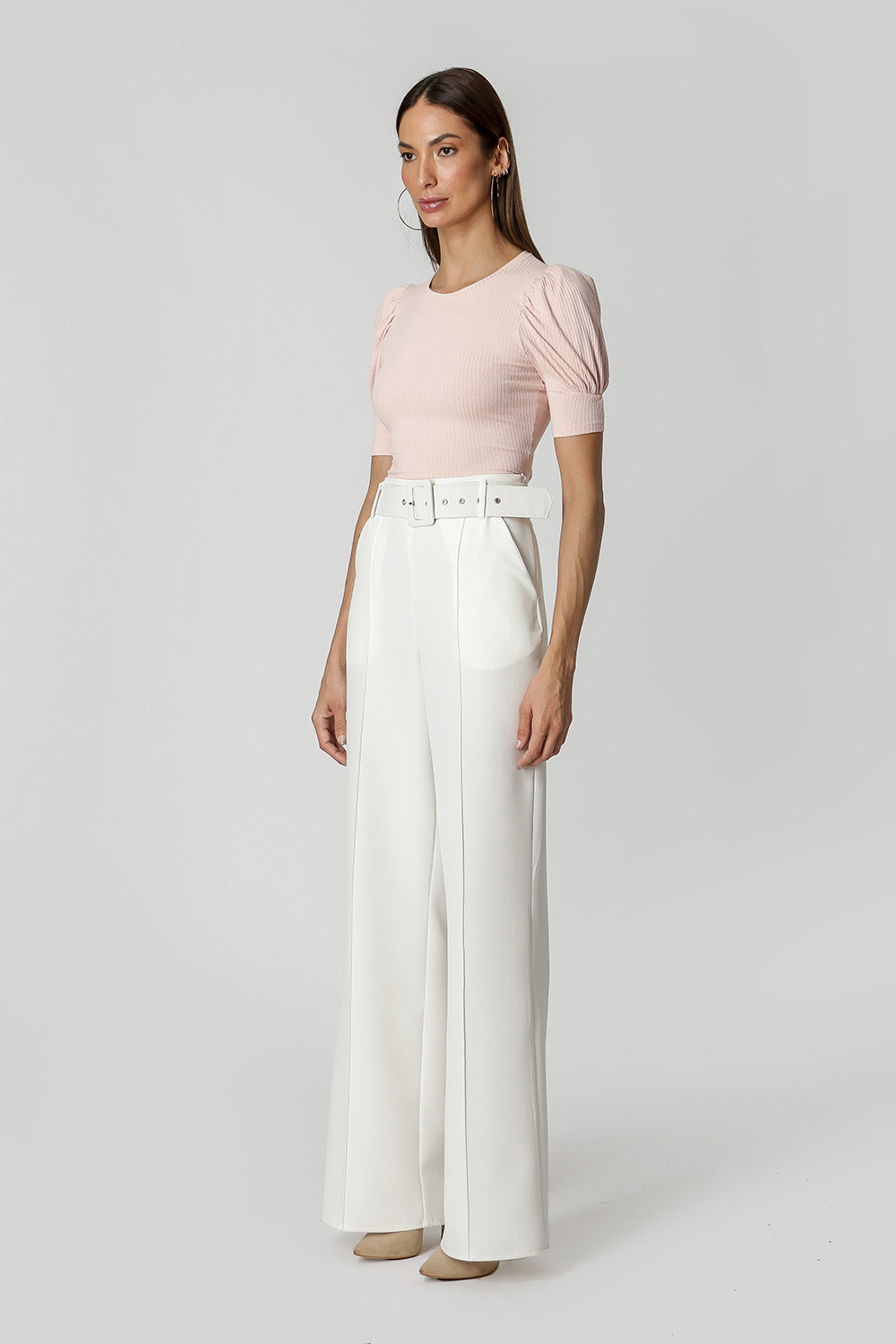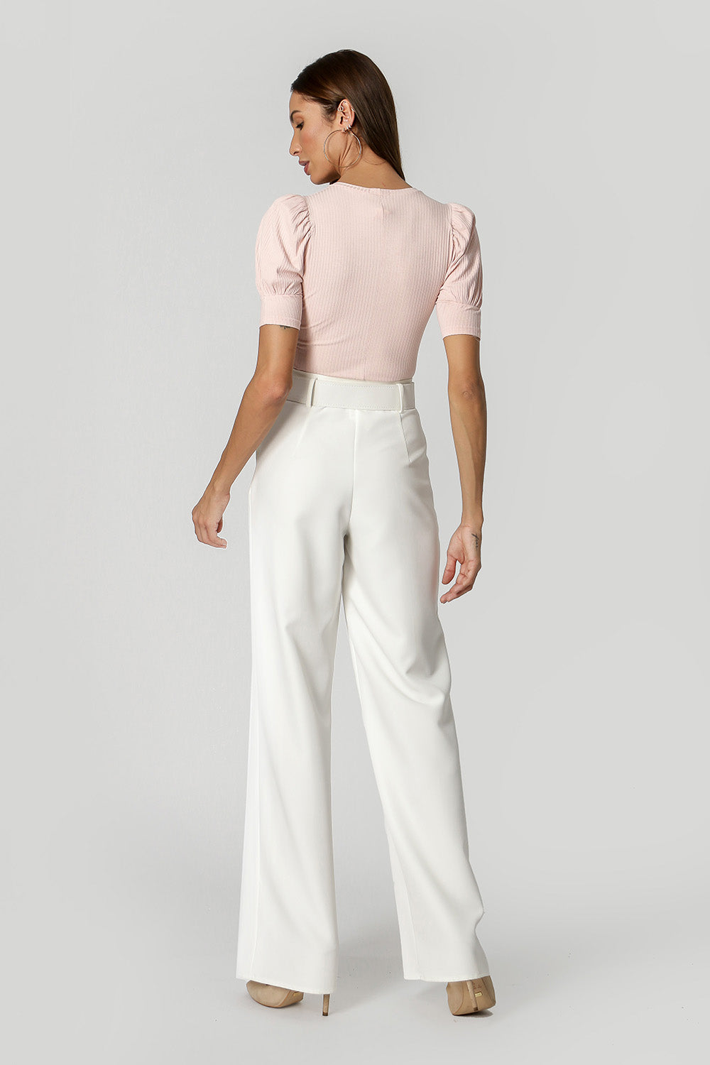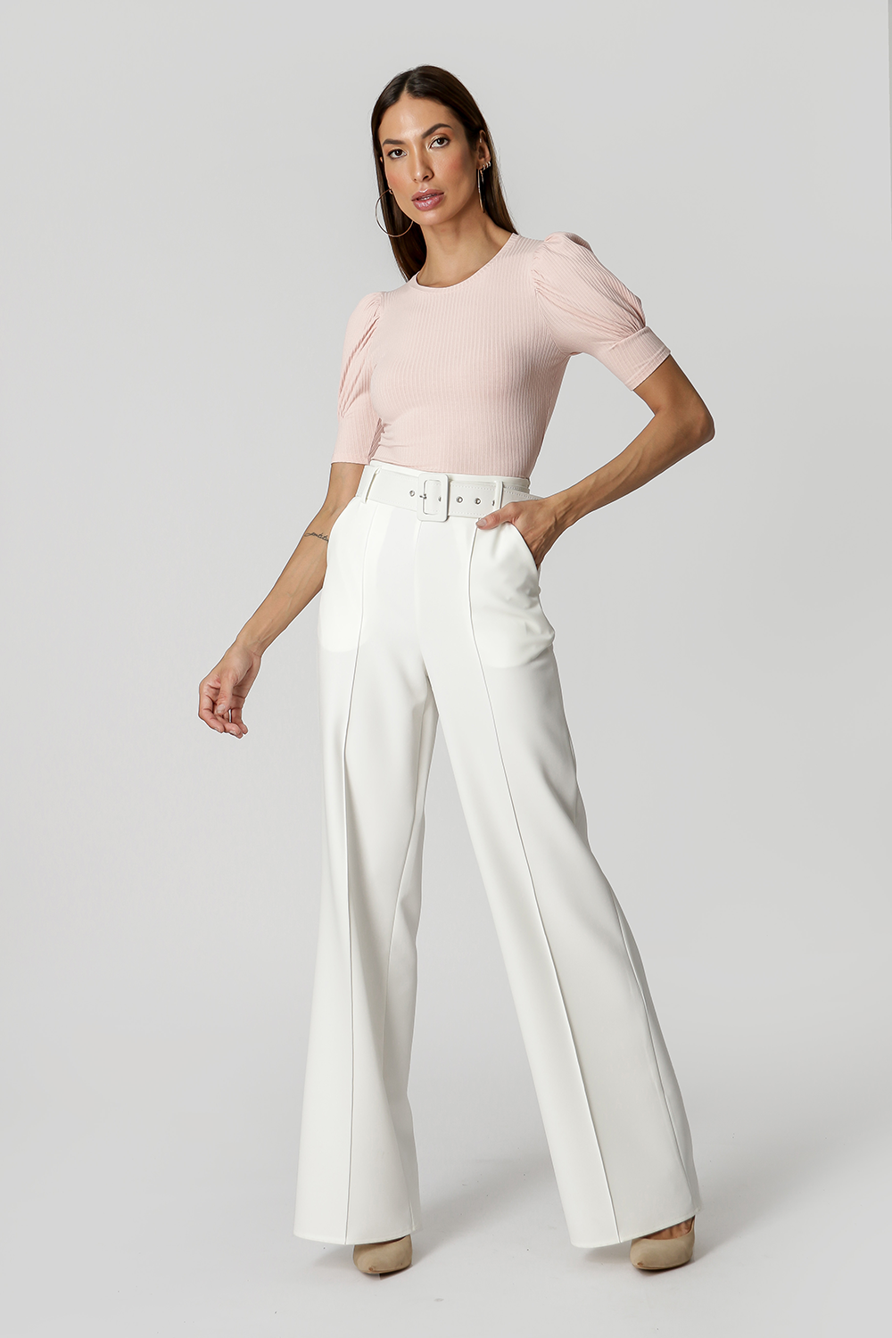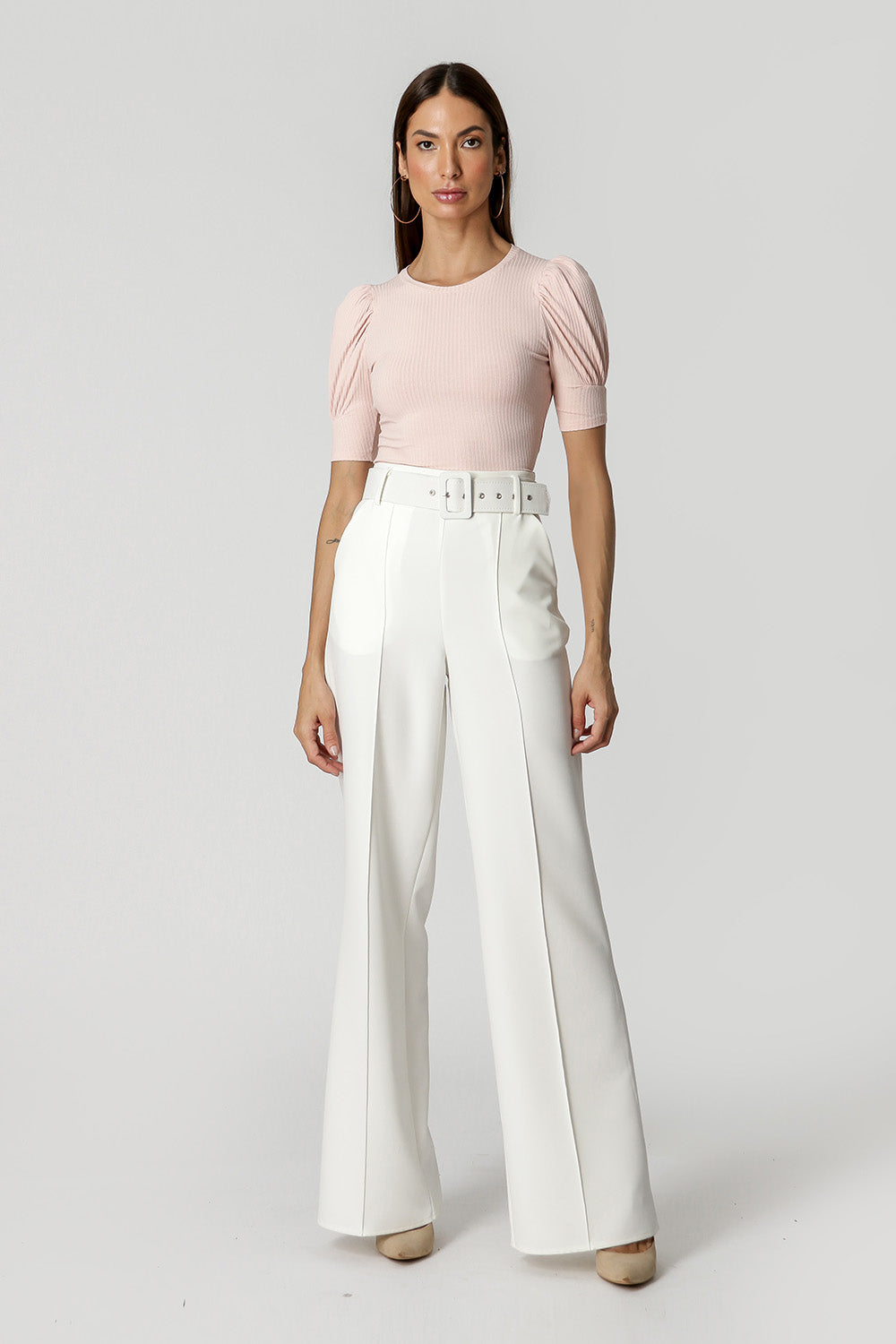 Blusa em malha canelada, com manga bufante. O básico que você precisa ter!
