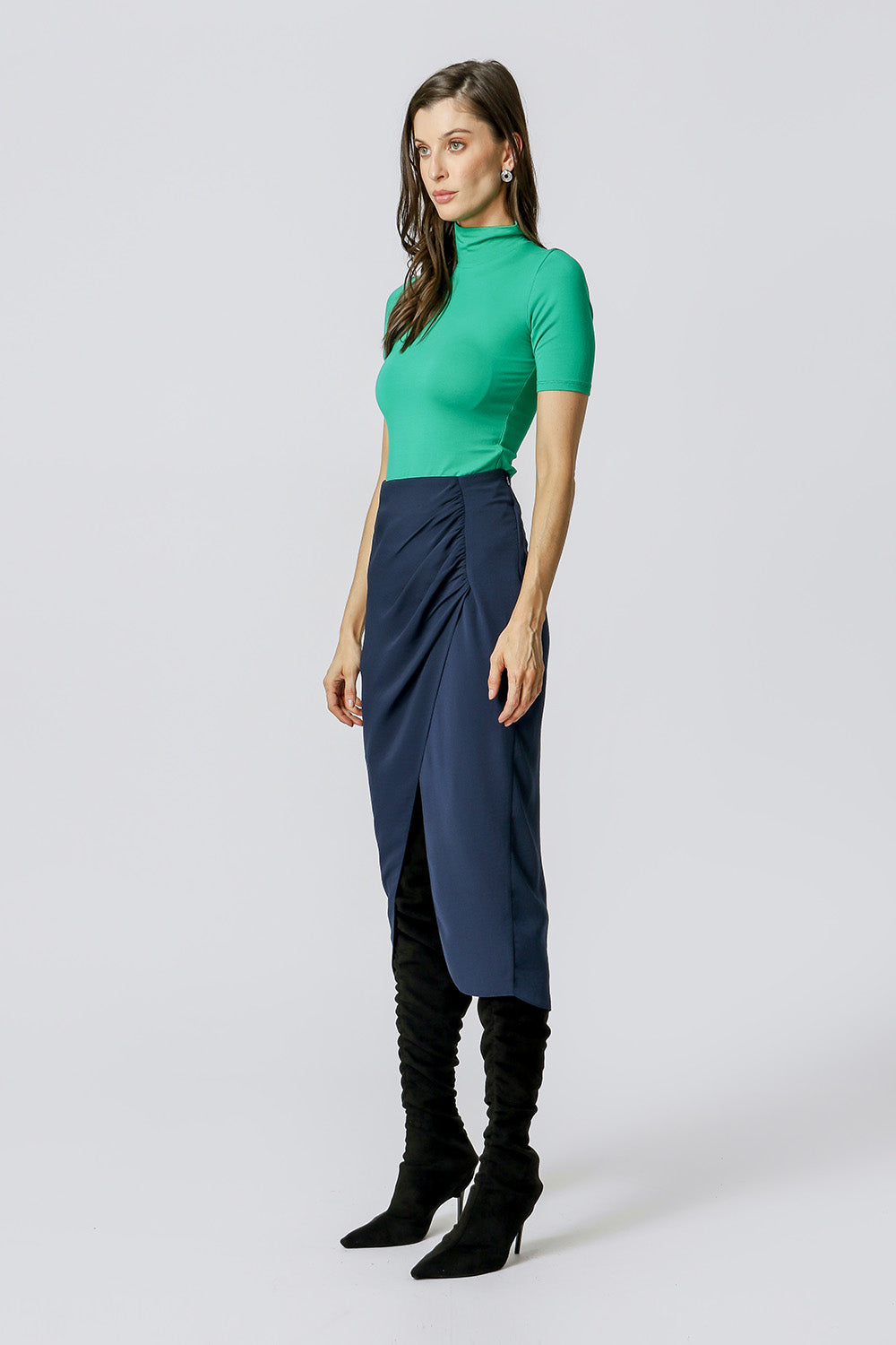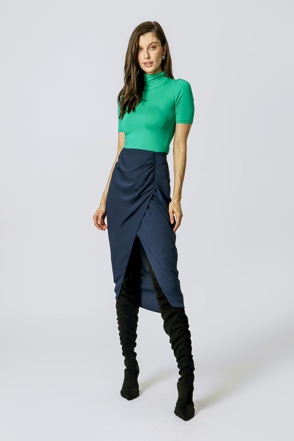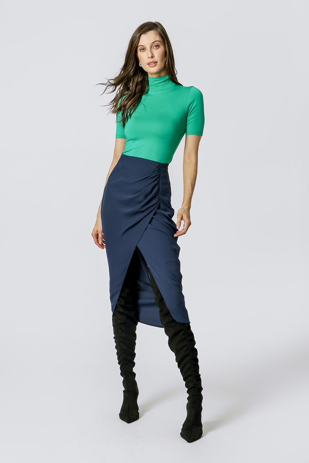 Blusa em malha viscopet, possui manga curta e gola alta. Peça básica, perfeita para trabalhar looks com sobreposições.