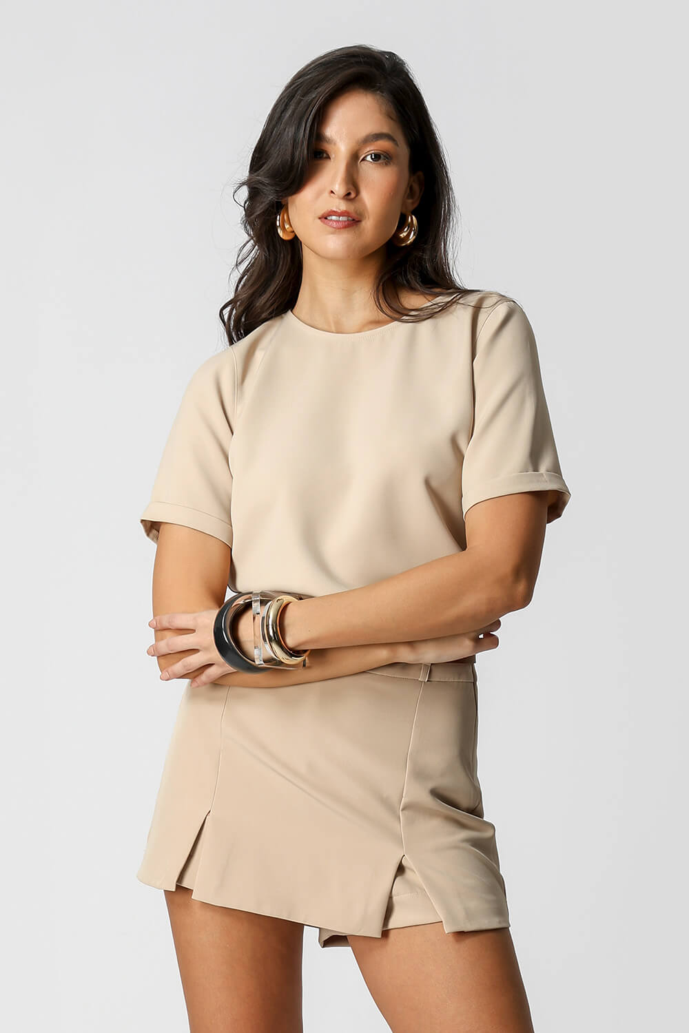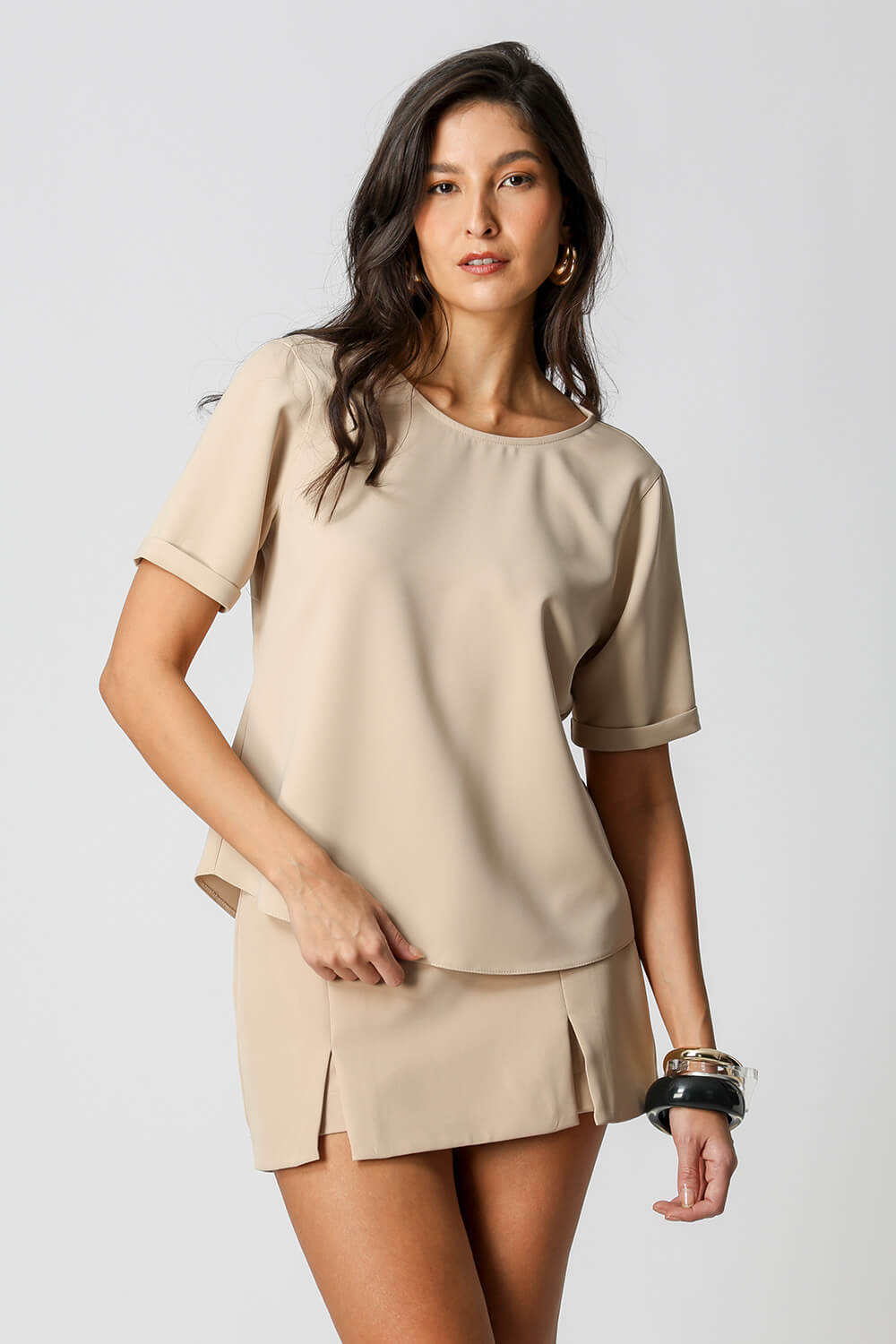• Blusa Manga Curta Com Botões Nas Costas - AREIA