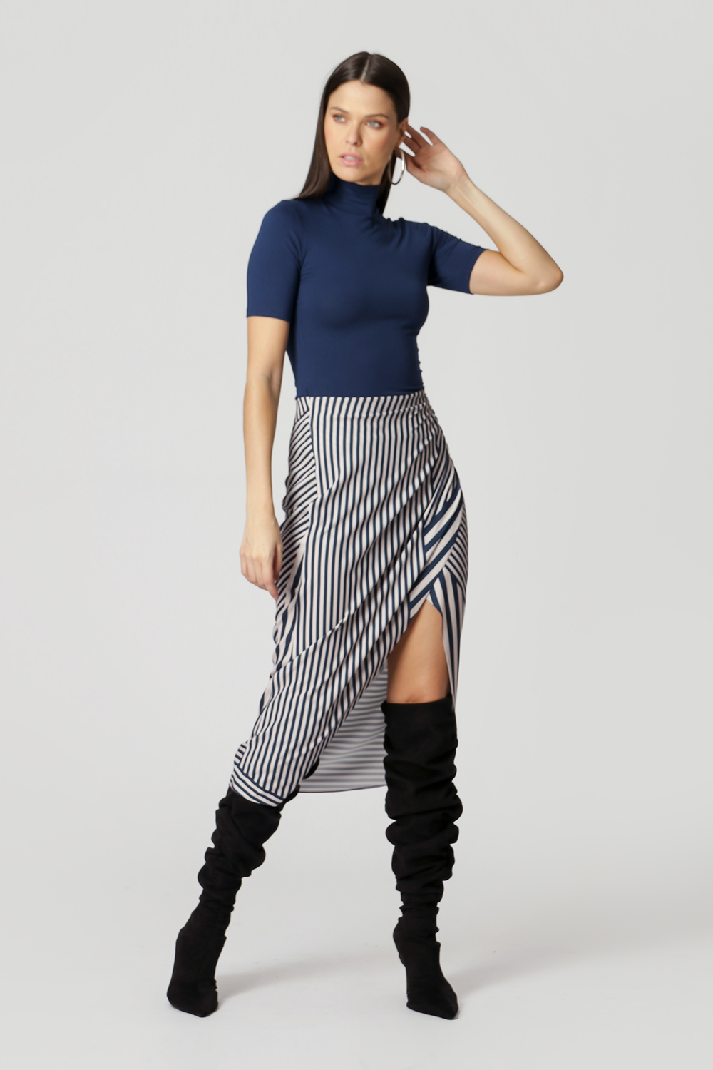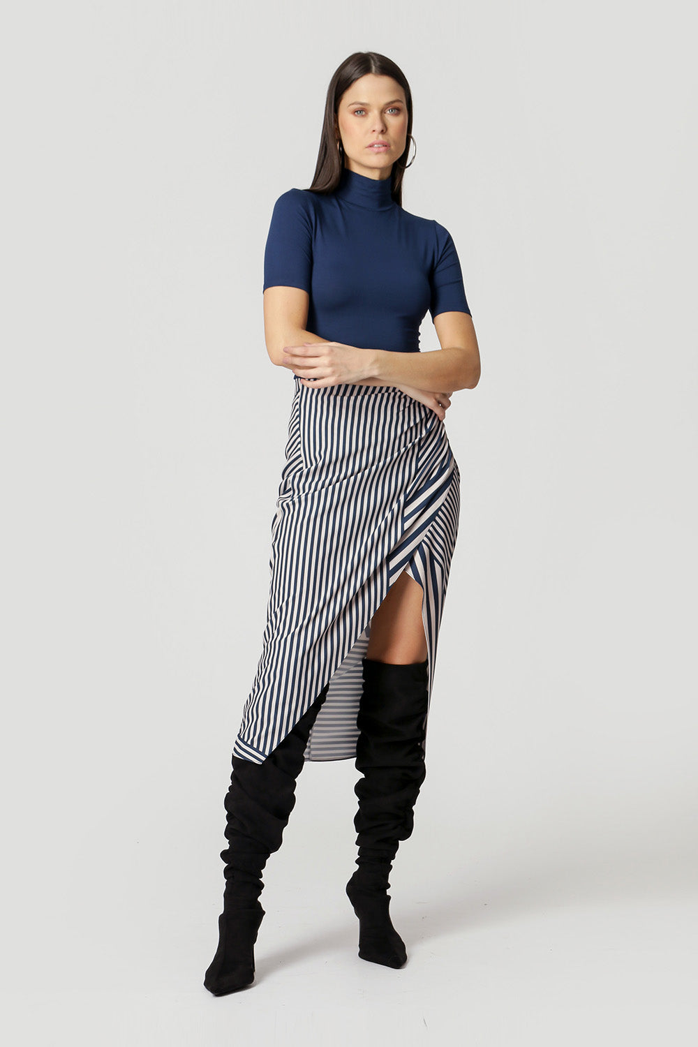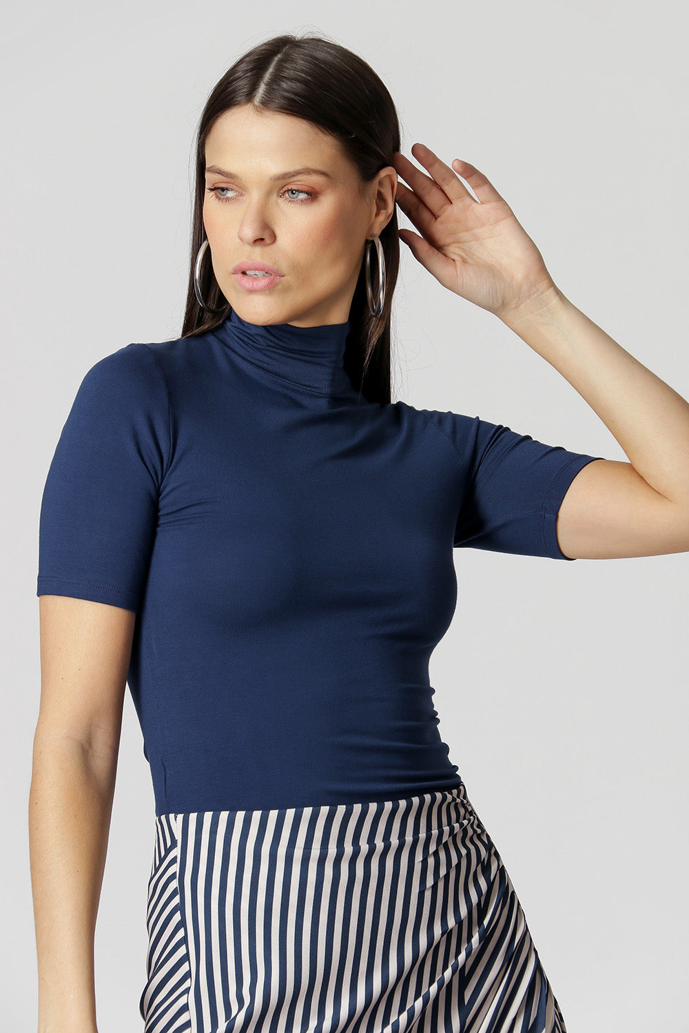 Blusa em malha viscopet, possui manga curta e gola alta. Peça básica, perfeita para trabalhar looks com sobreposições.