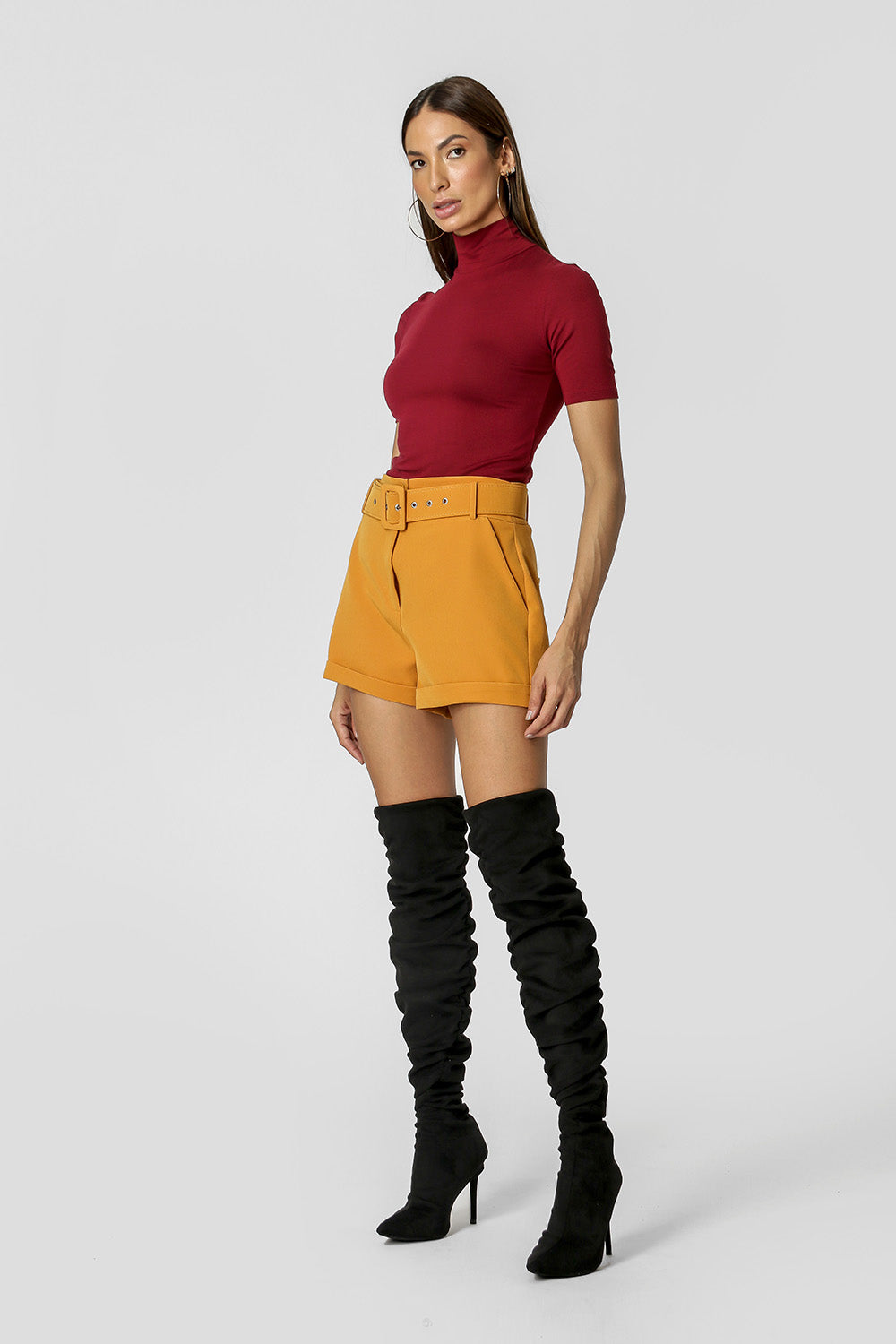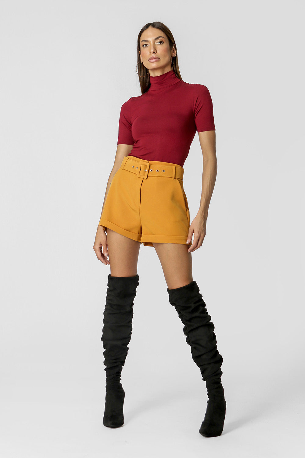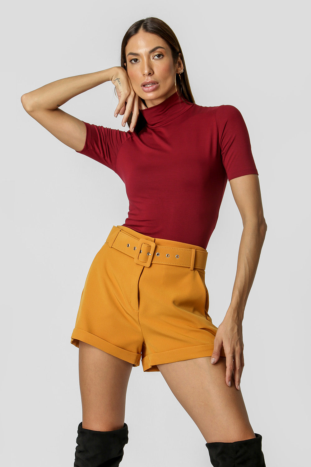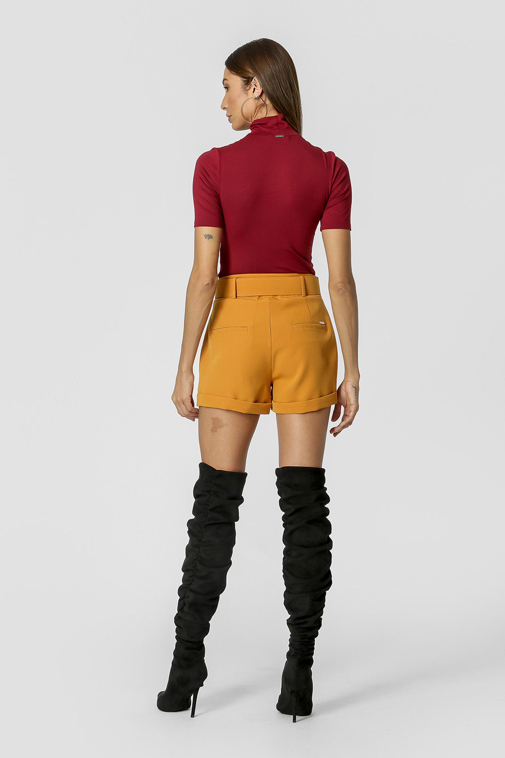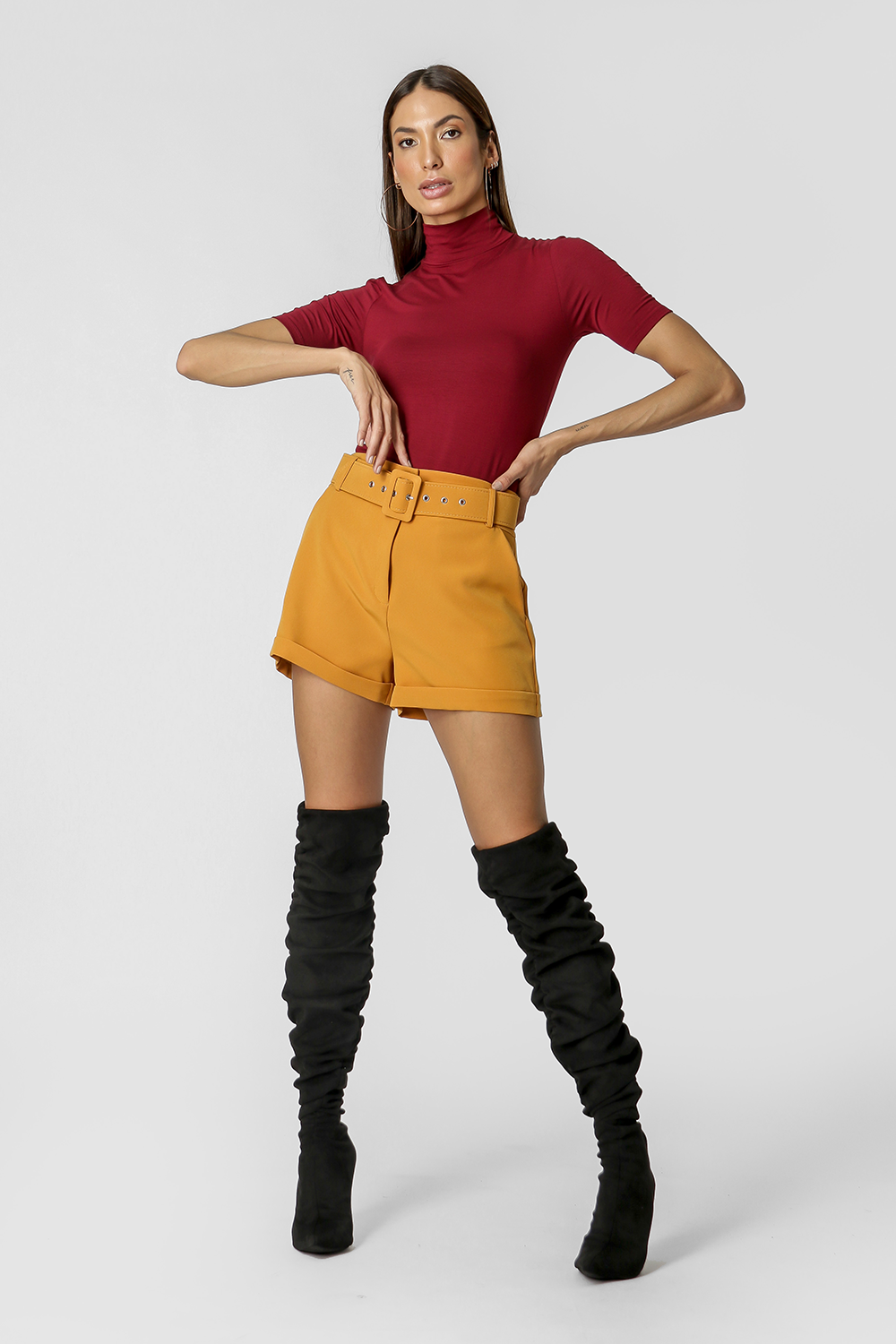Blusa em malha viscopet, possui manga curta e gola alta. Peça básica, perfeita para trabalhar looks com sobreposições.