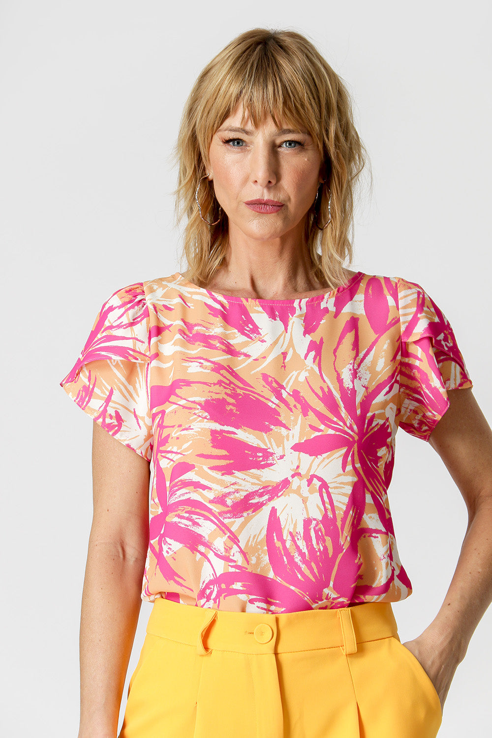 • Blusa Manga Diferenciada Estampada - LARANJA 1208
