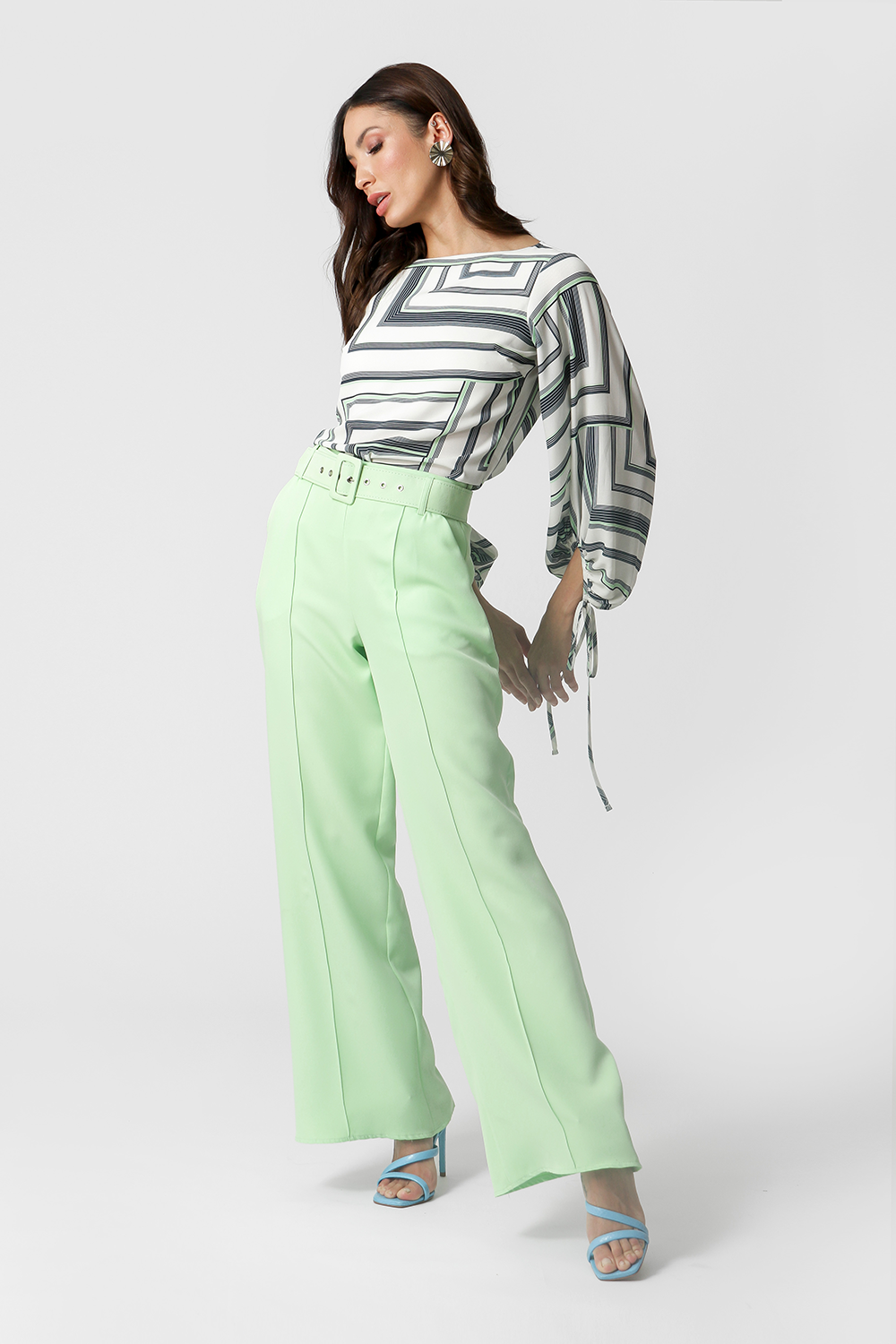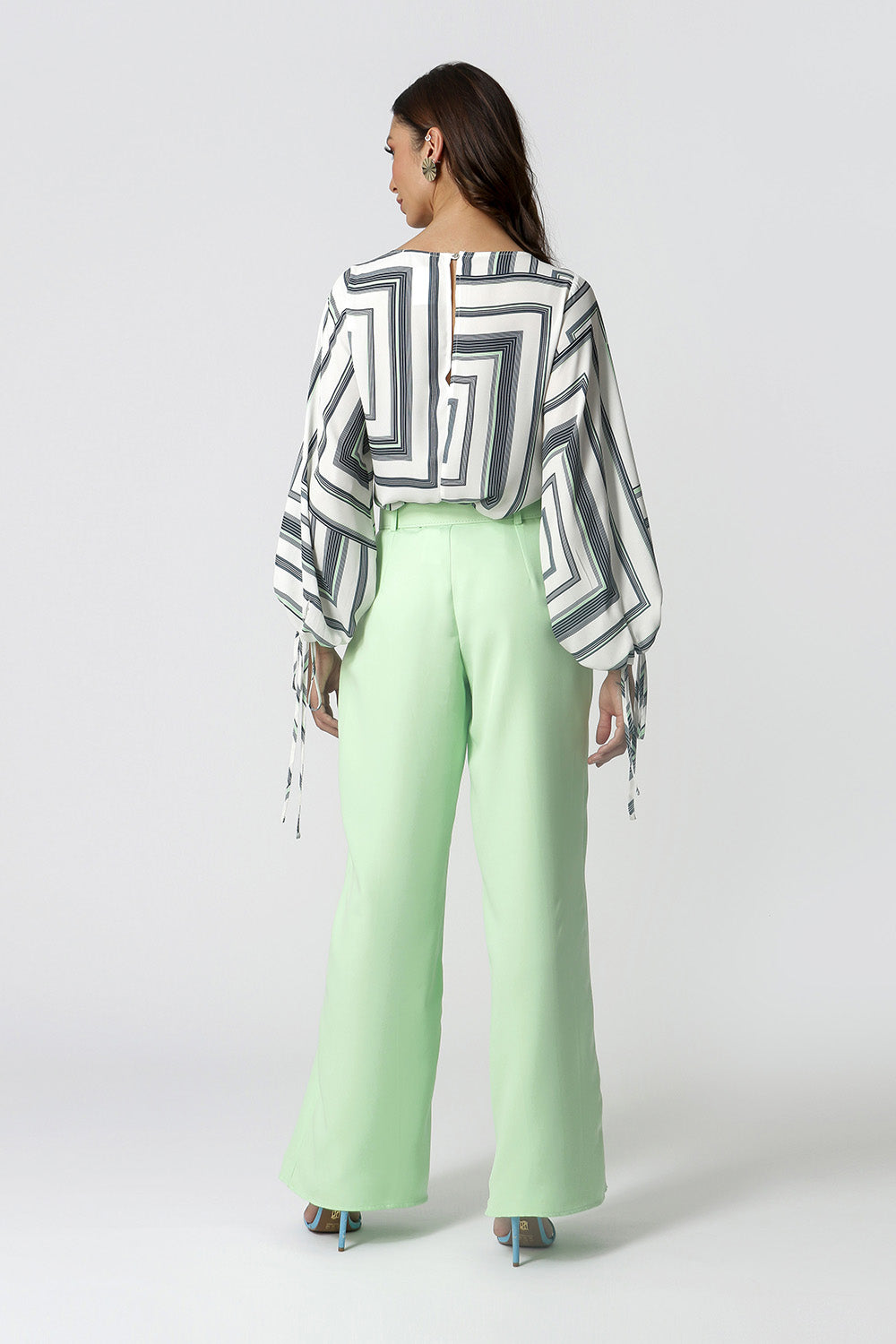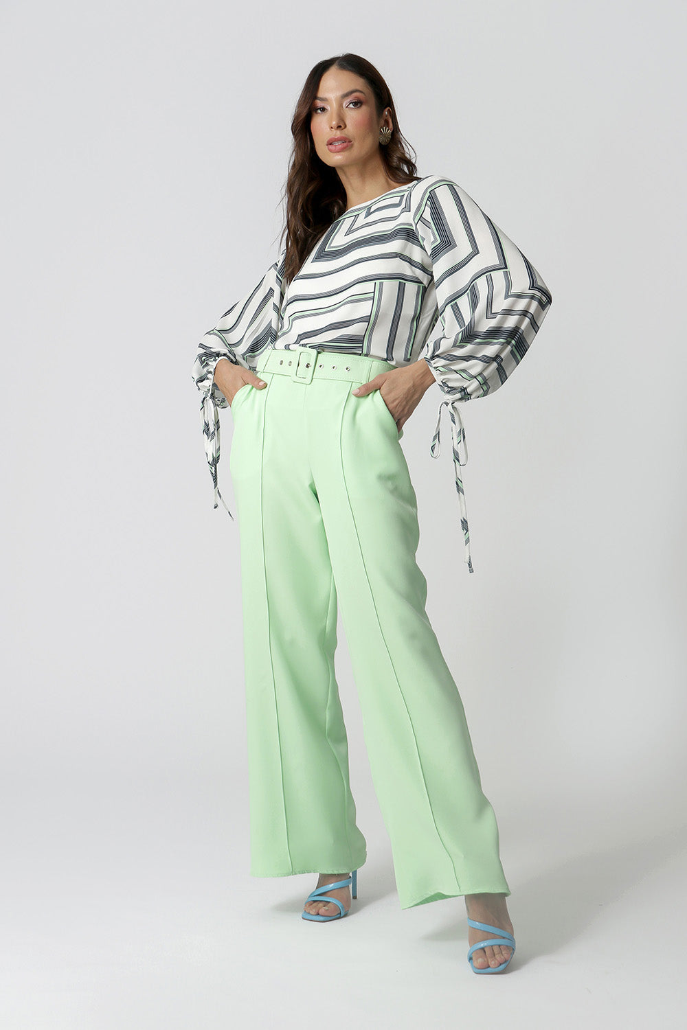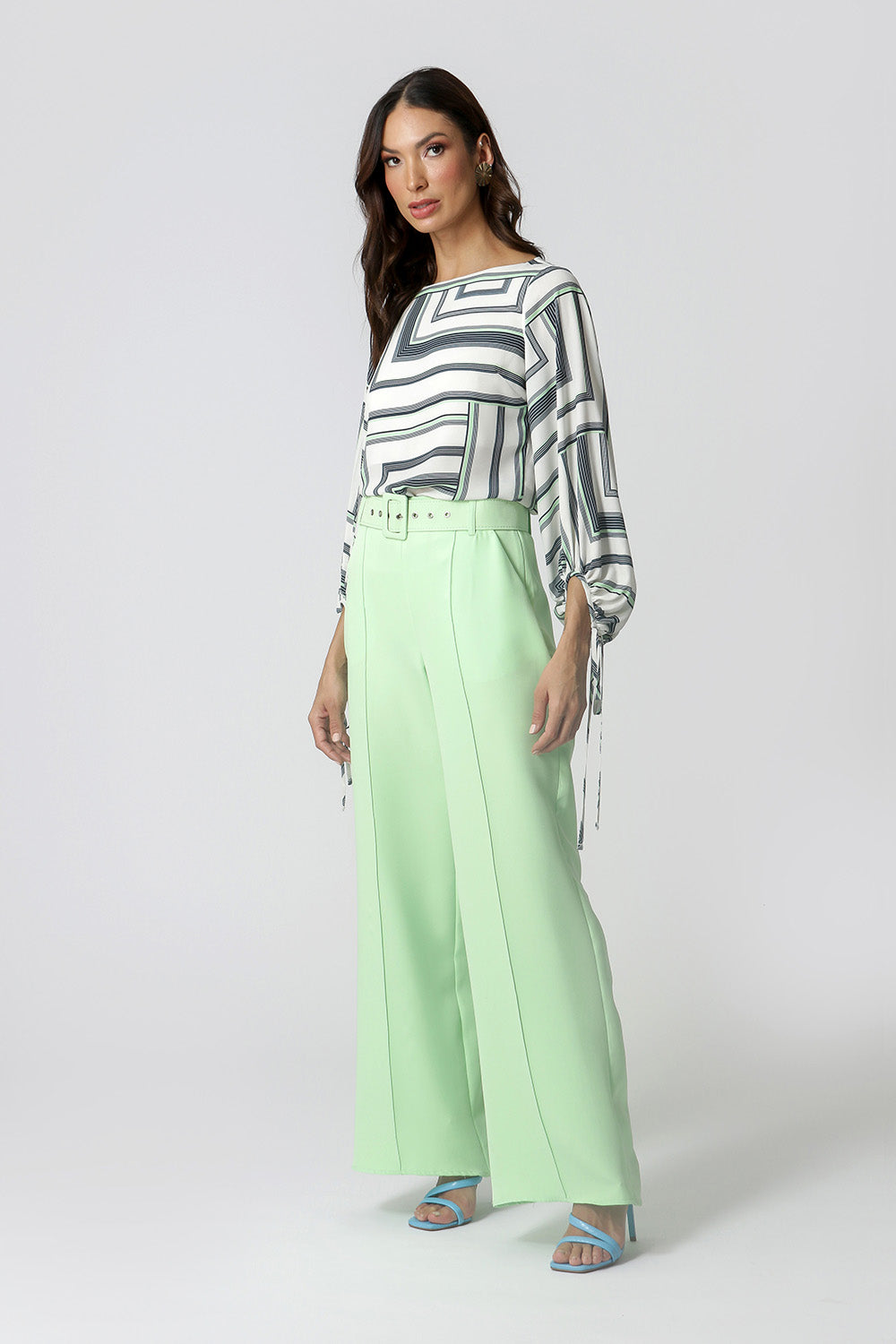 Blusa manga longa feita em tecido fluído estampado, com shape mais solto e detalhe de amarração nas mangas. Peça clássica que vai deixar seu look mais elegante.