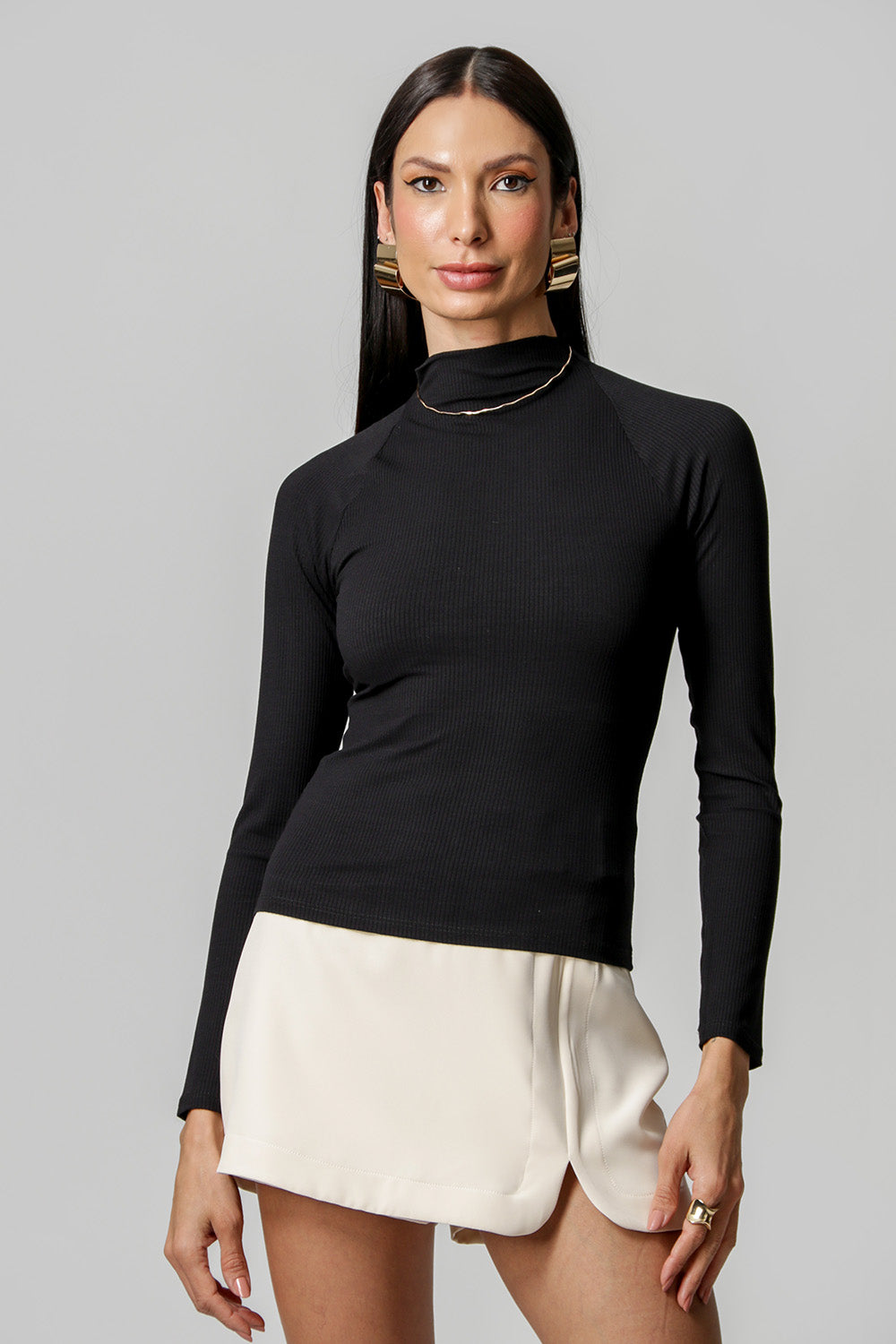 Blusa confeccionada em malha canelada , com gola sem costura e modelagem ajustada ao corpo. Peça básica e coringa para arrasar em qualquer combinação.