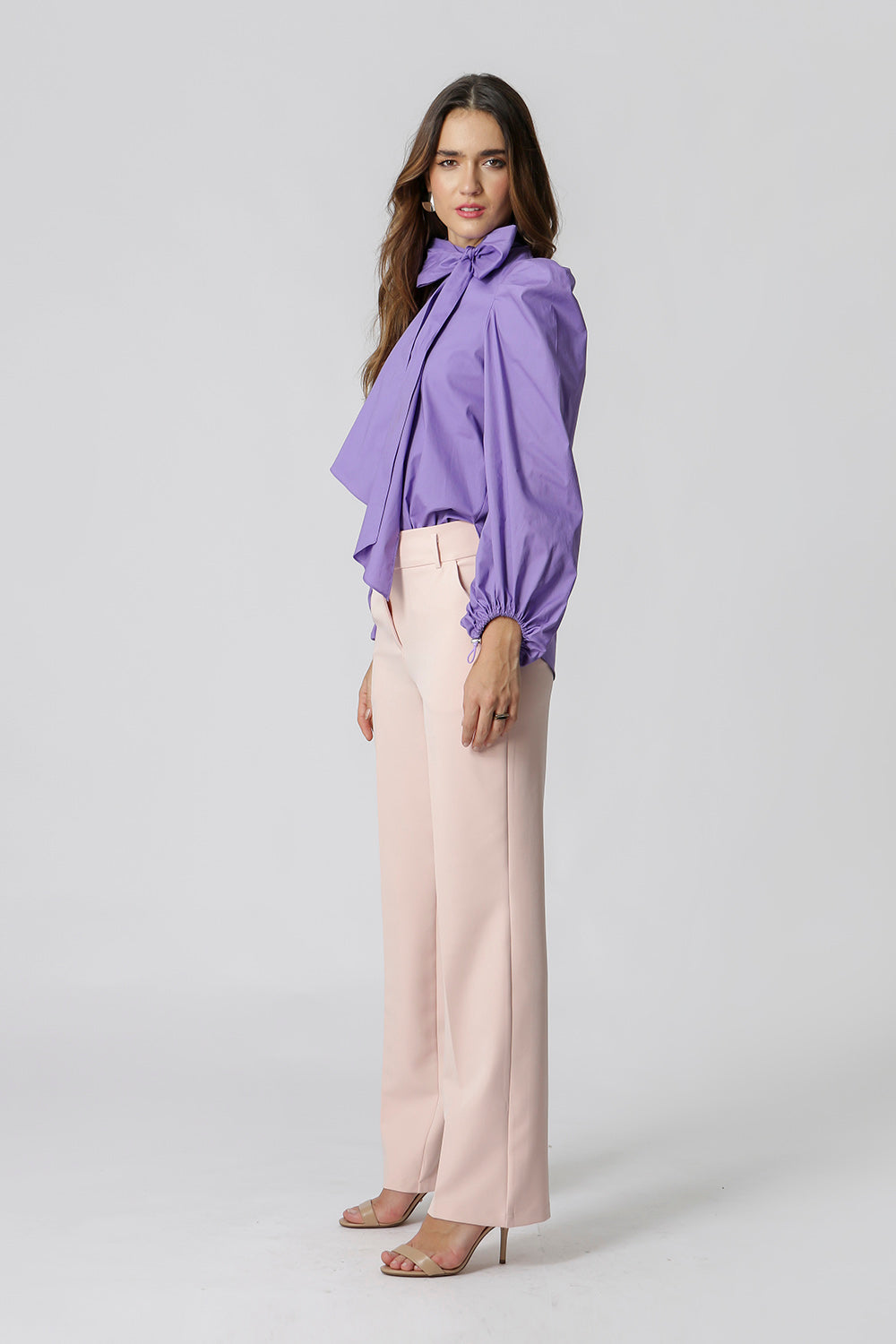 Blusa manga longa com pregas e regulador diferenciado na barra com detalhes de laço na gola. Peça confeccionada em tecido tricoline. Uma peça super charmosa e ao mesmo tempo diferenciada para criar looks lindos.