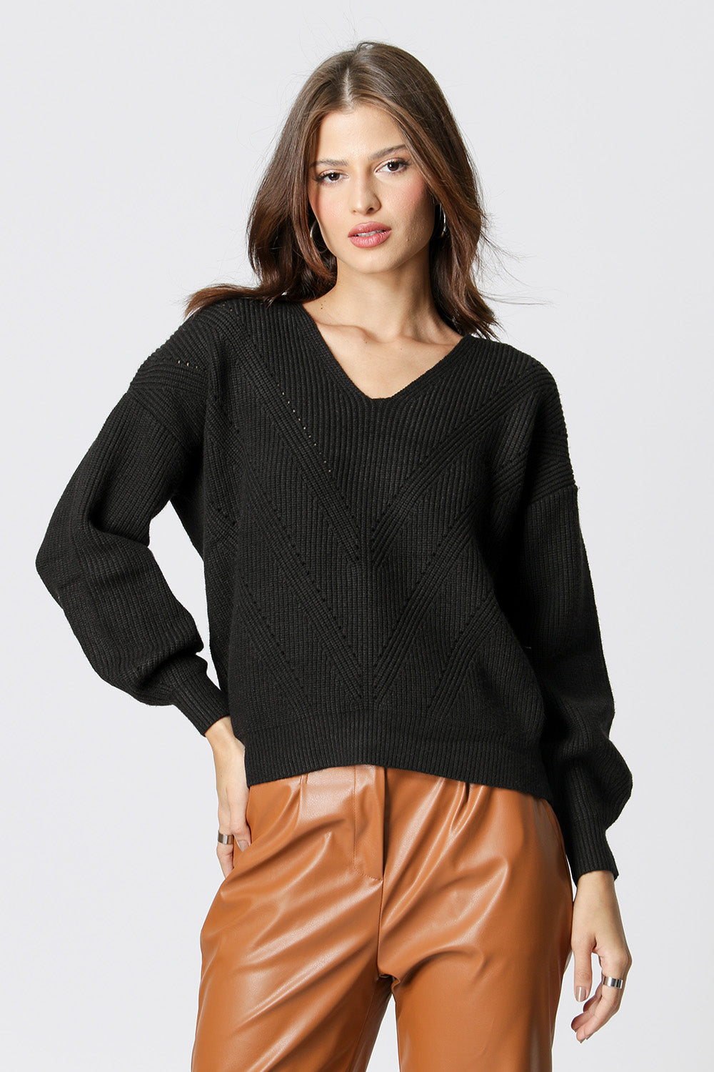 Blusa manga longa decote em V.  Peça em viscose, poliamida e poliéster. Uma peça básica e ideal para os dias que você quer algo confortável.