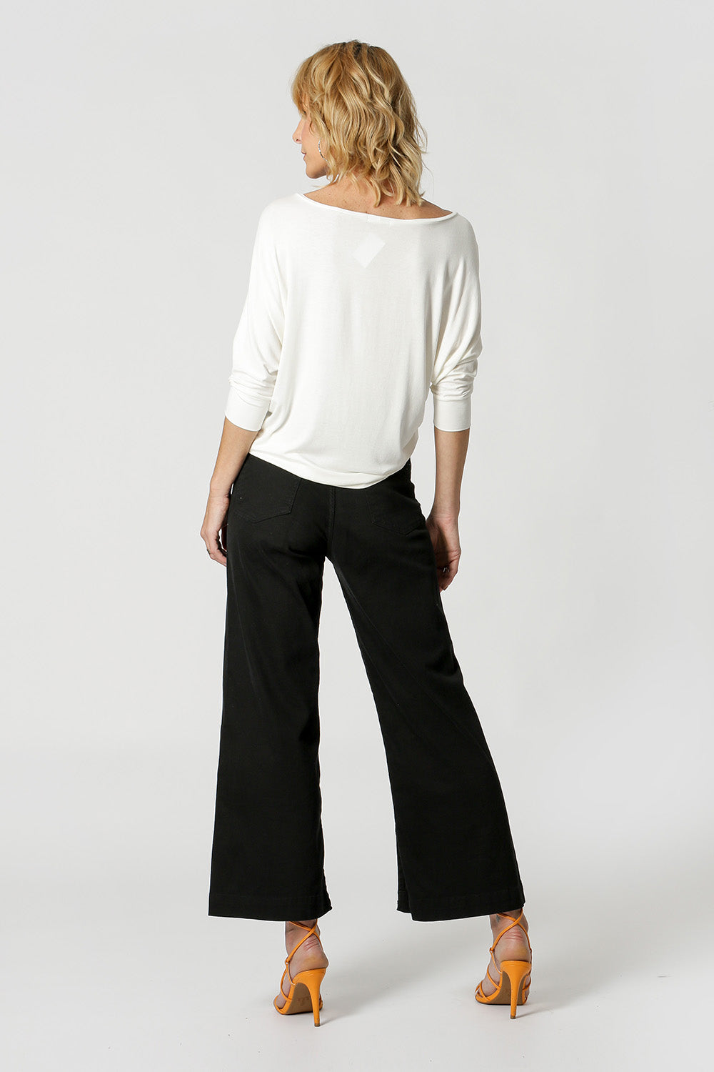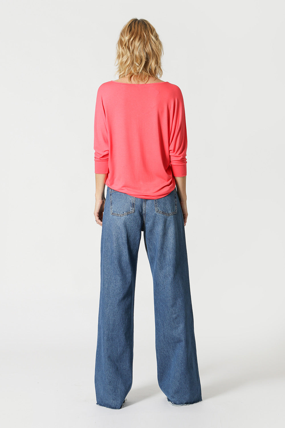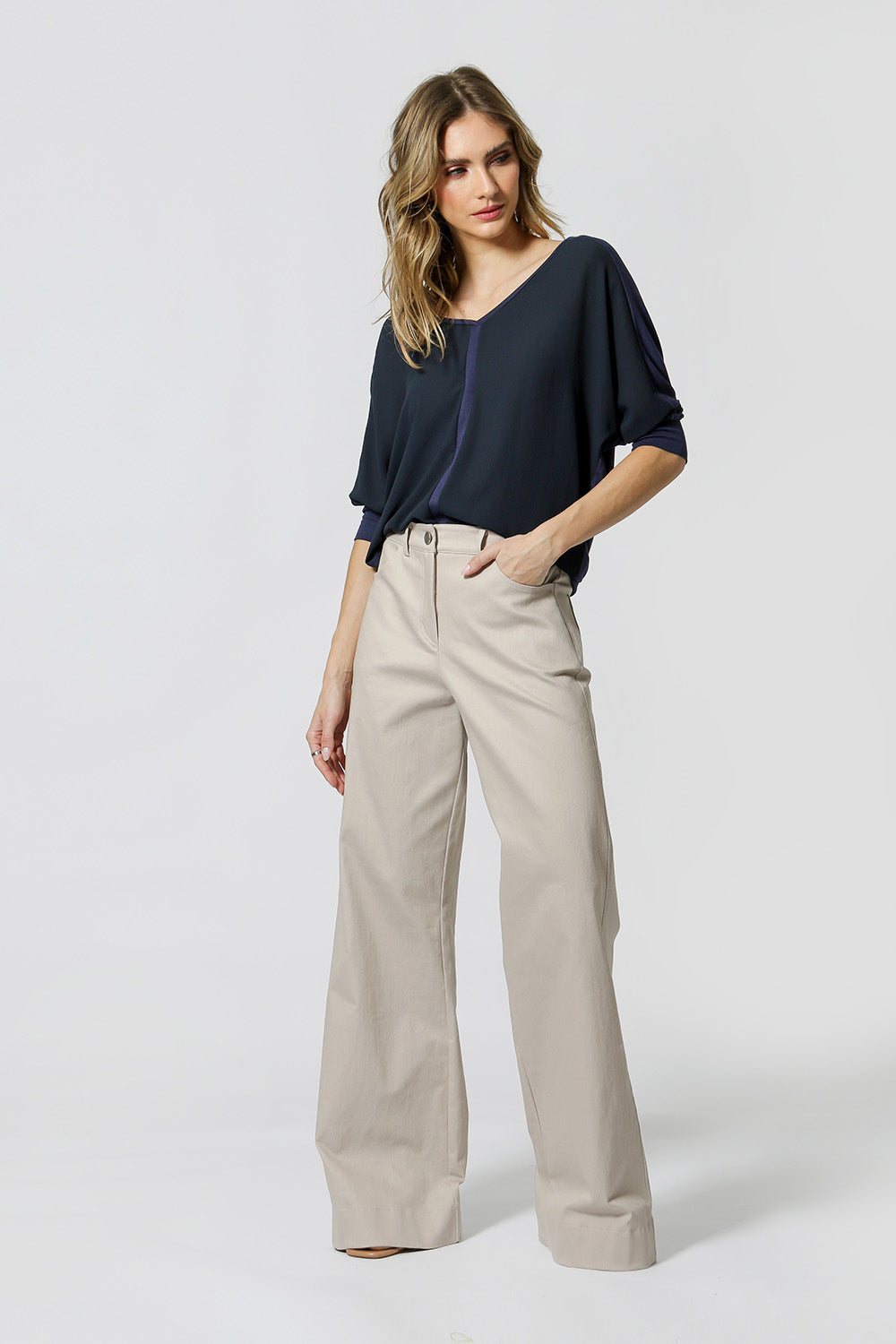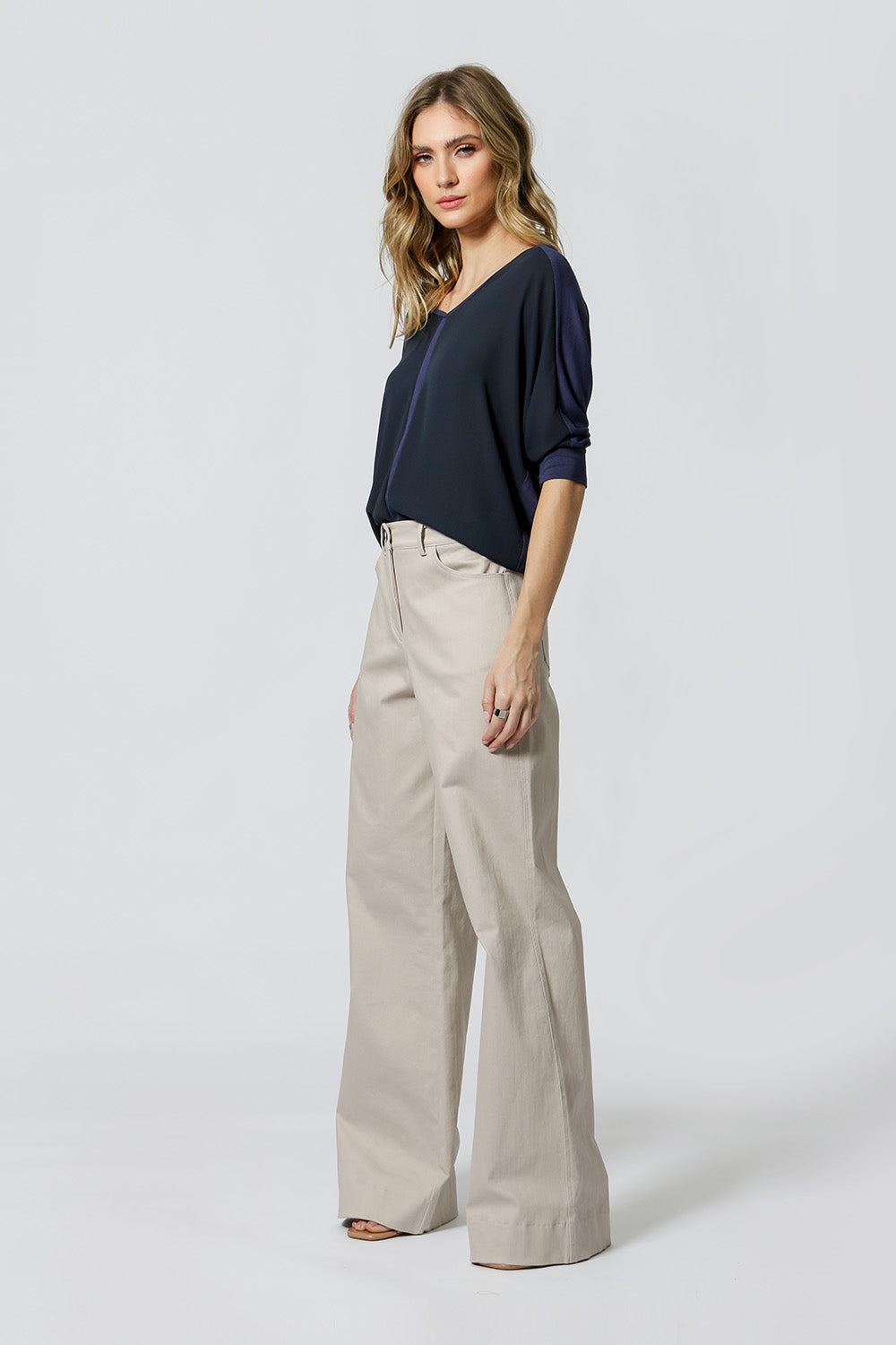 Blusa ampla, com manga morcego e recortes. Feita com mix de tecidos. A peça ideal para criar looks com estilo e com o conforto que você merece!