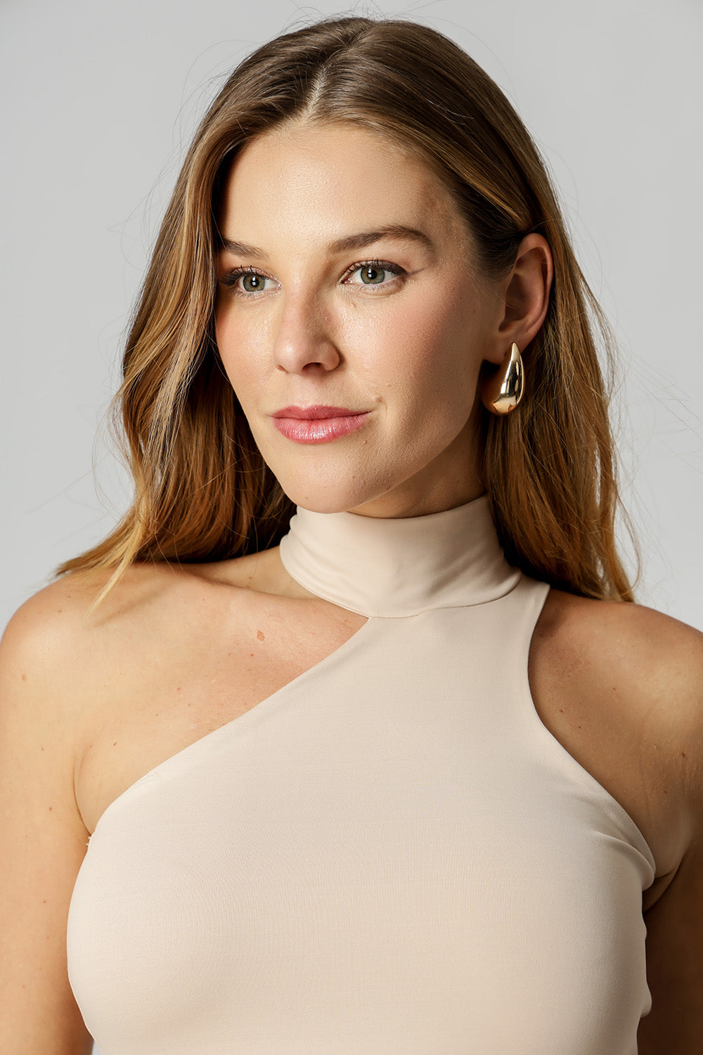 Blusa com gola média, e decote assimétrico, feito em malha Amni Soul Eco. Uma peça charmosa e prática para diversos looks casuais.