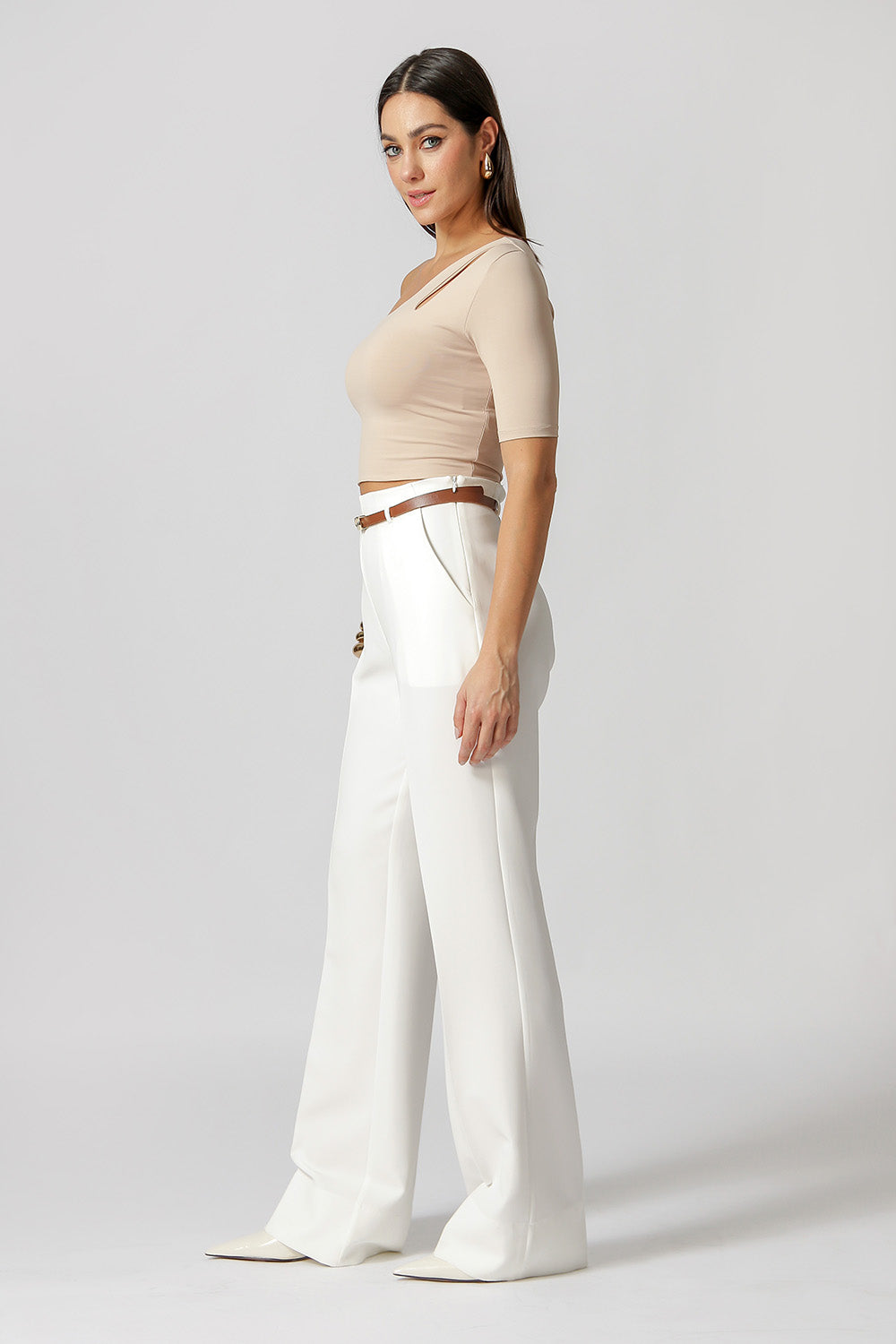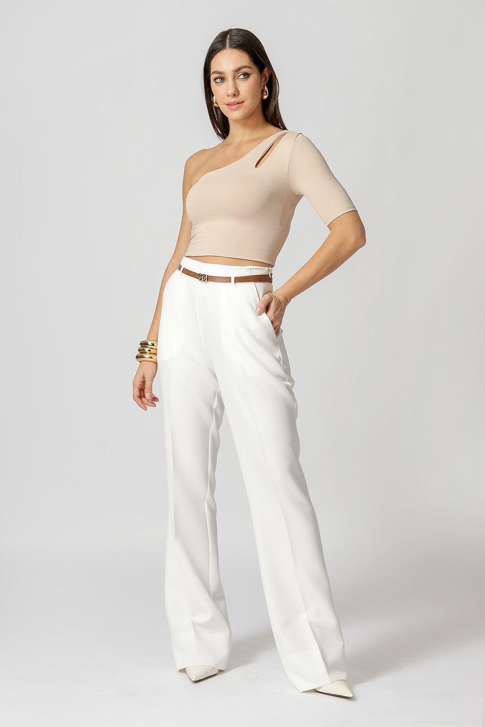 Blusa estilosa de ombro único com detalhe vazado no ombro, confeccionada em malha Amni, que oferece conforto e ótimo caimento. Ideal para compor looks modernos em saídas à noite ou eventos casuais.