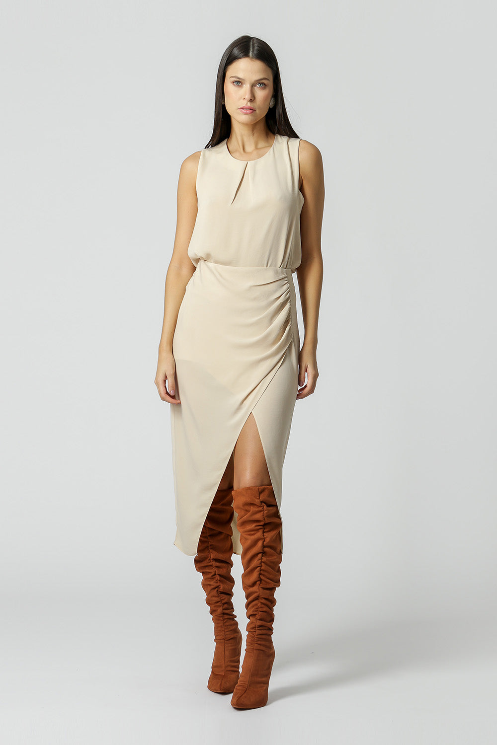 Blusa feita em crepe twill, com shape reto e detalhe de prega. Peça elegante, ideal para diversos looks.