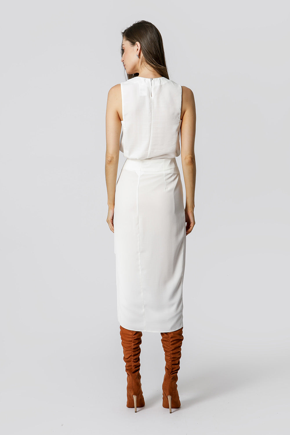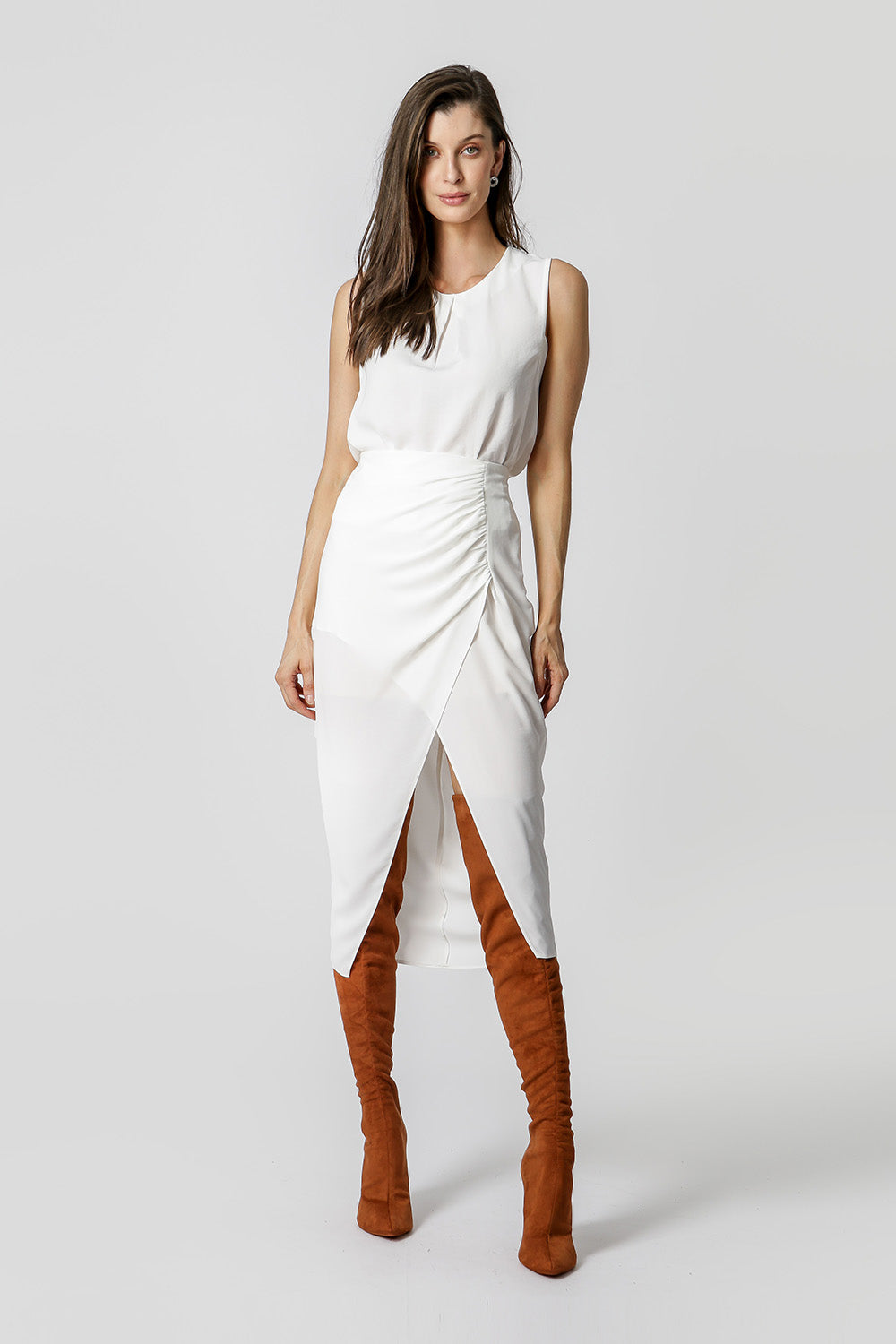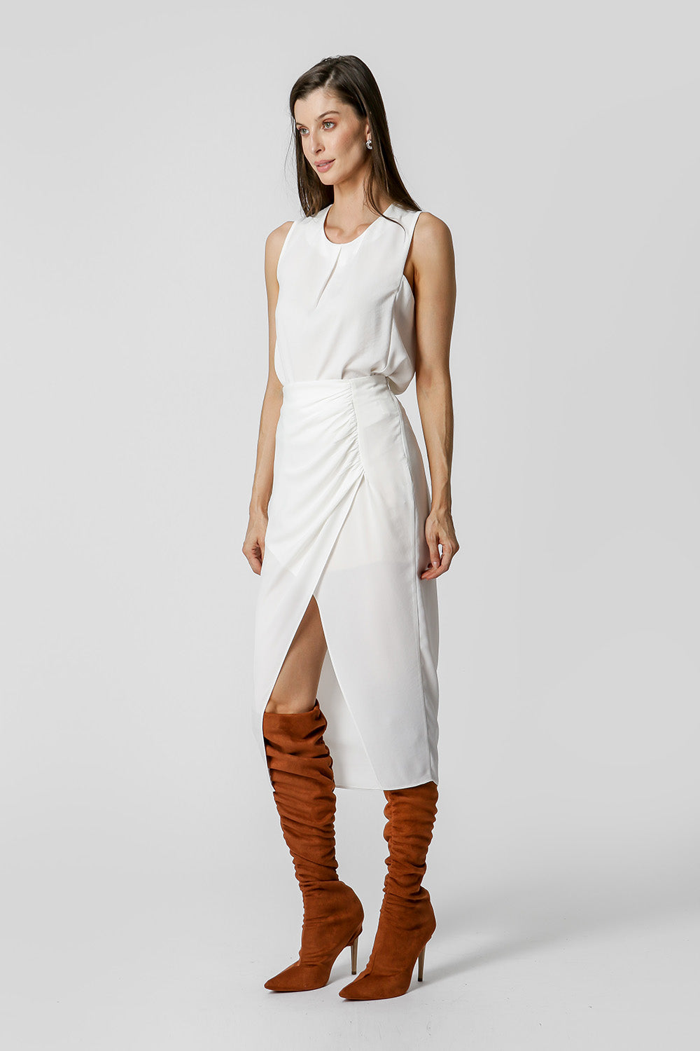 Blusa feita em crepe twill, com shape reto e detalhe de prega. Peça elegante, ideal para diversos looks.