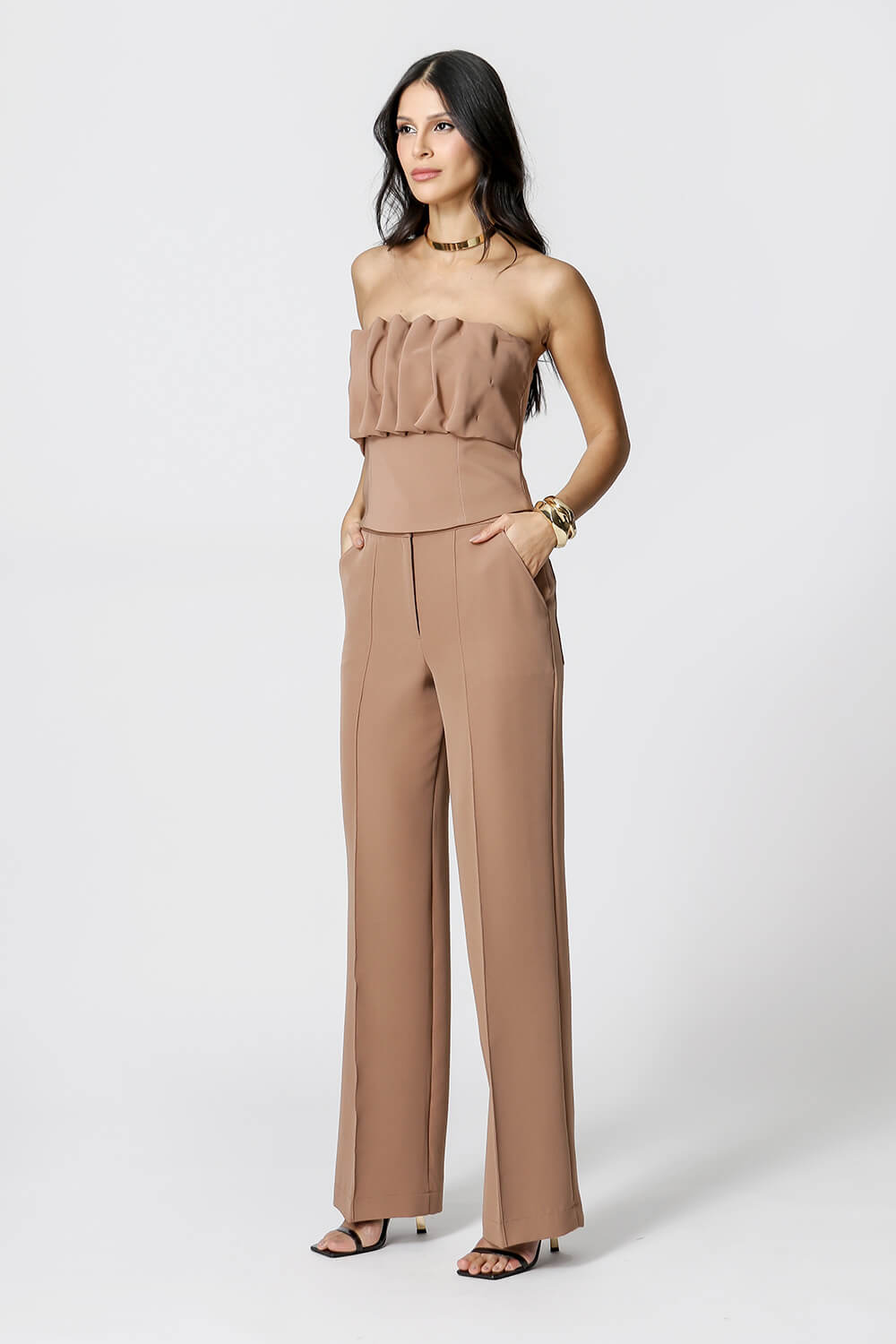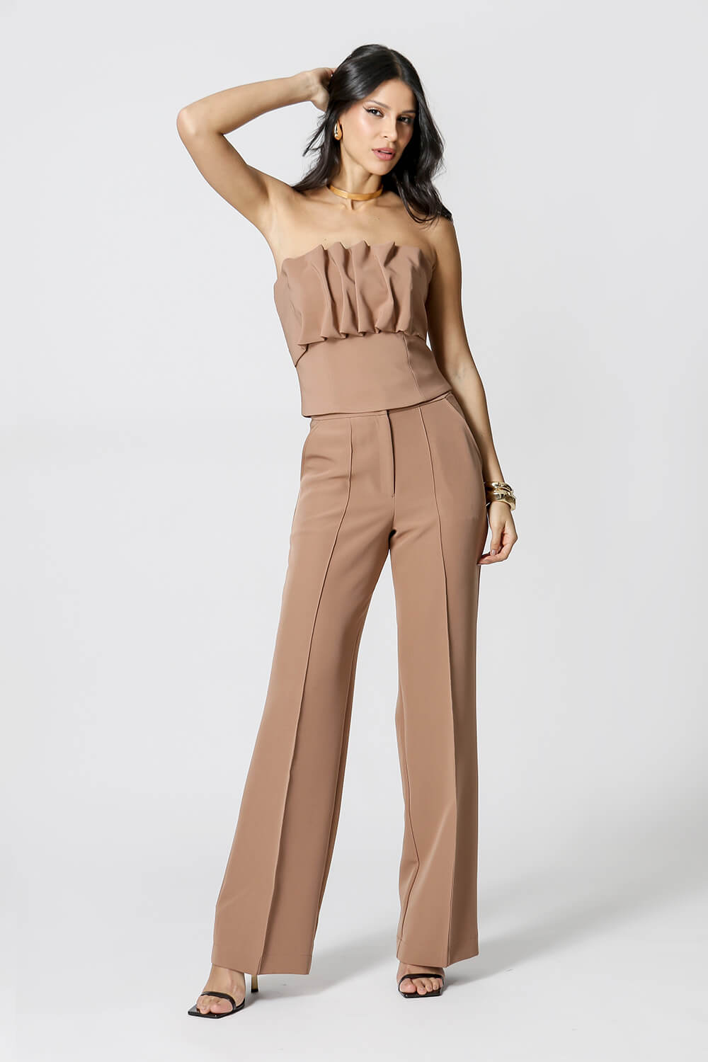 Blusa sem alças 3D com zíper nas costas. Peça confeccionada em alfaiataria. Um modelo super atualizado e perfeito para compor vários looks night.