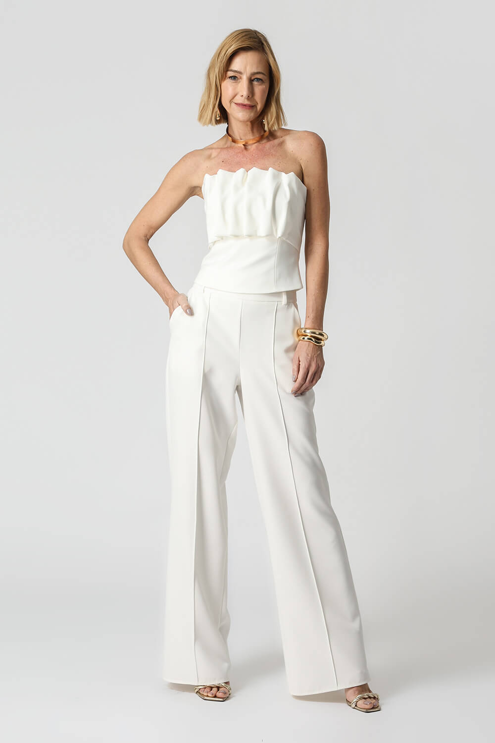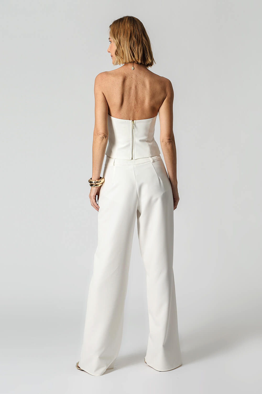 Blusa sem alças 3D com zíper nas costas. Peça confeccionada em alfaiataria. Um modelo super atualizado e perfeito para compor vários looks night.