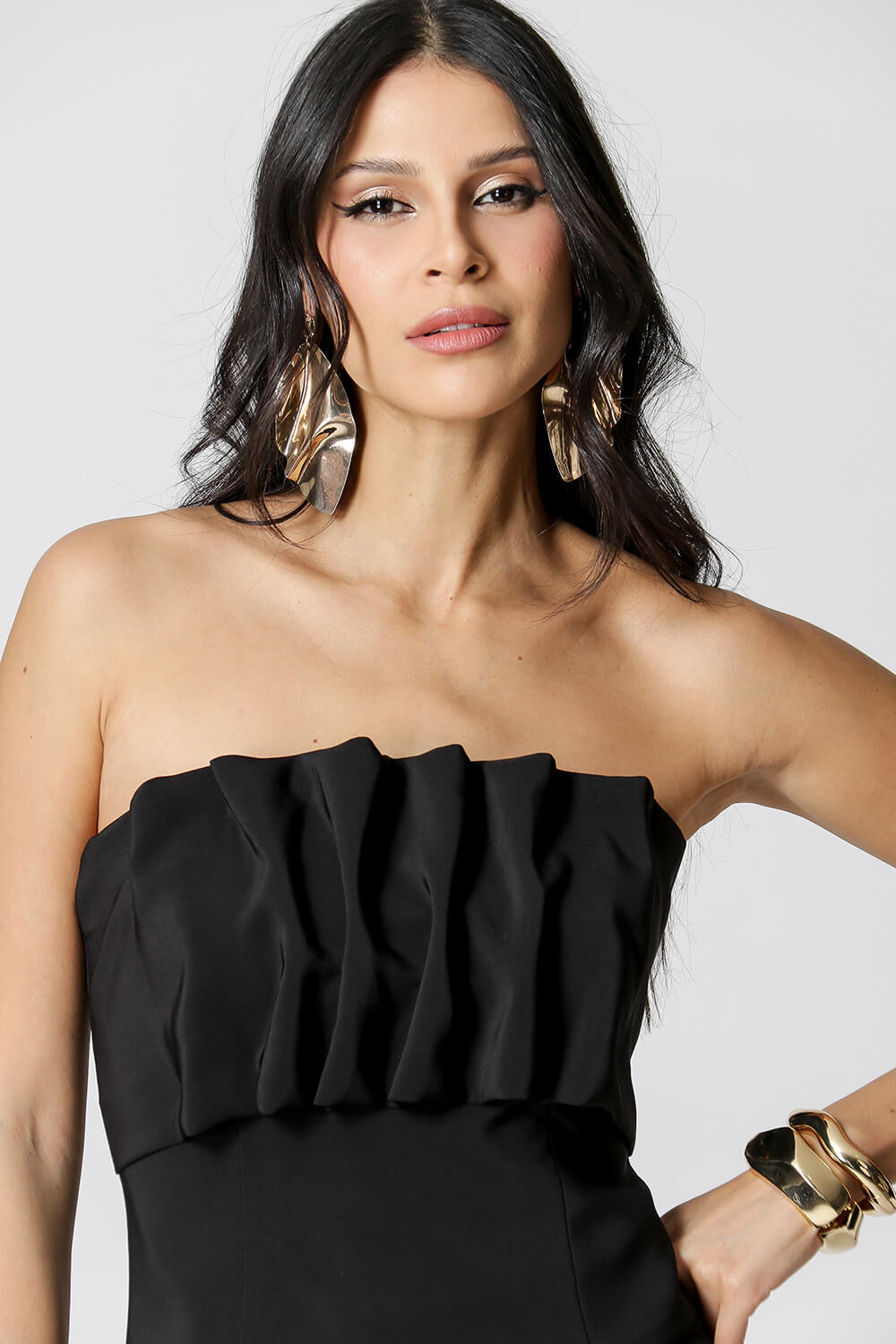 Blusa sem alças 3D com zíper nas costas. Peça confeccionada em alfaiataria. Um modelo super atualizado e perfeito para compor vários looks night.