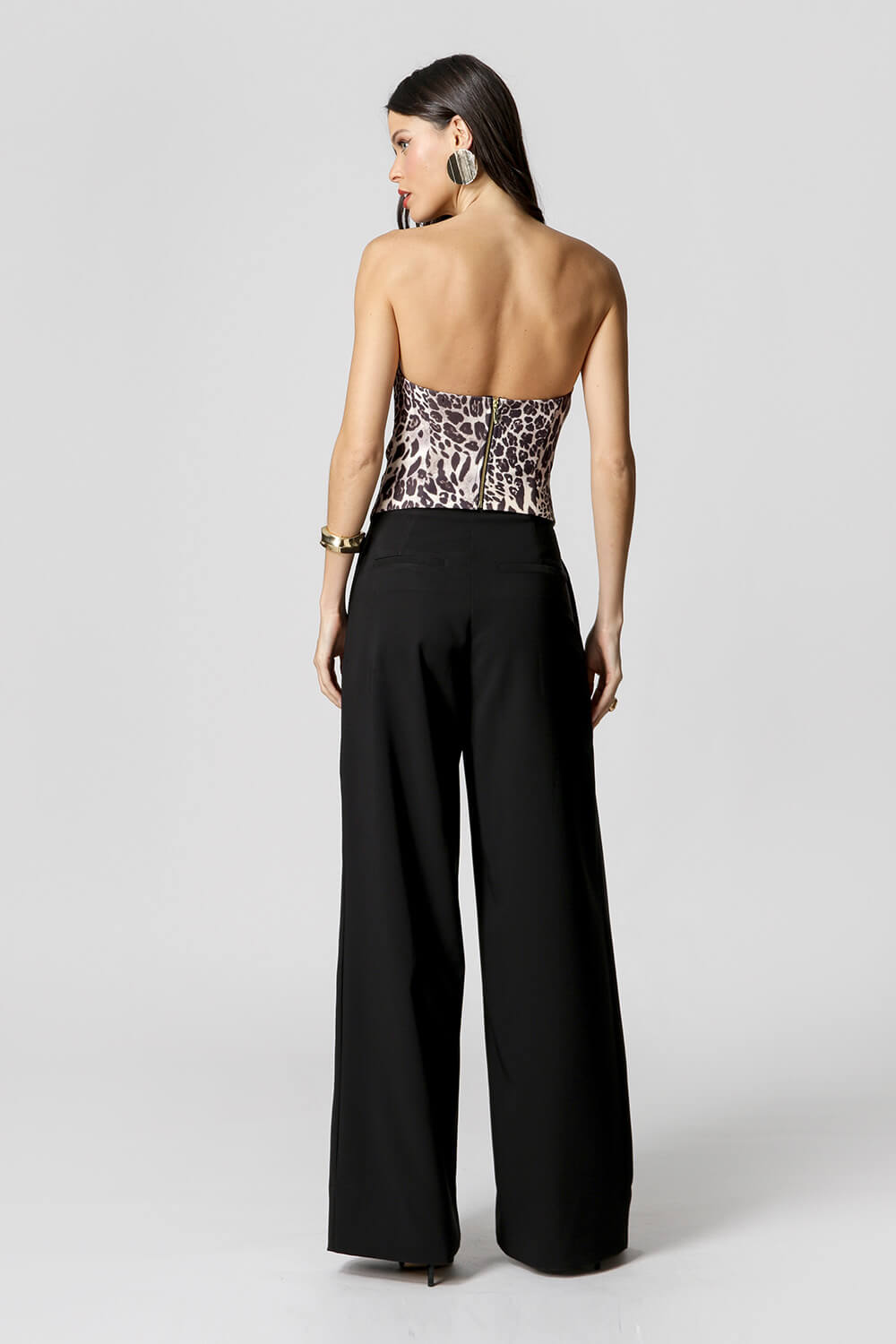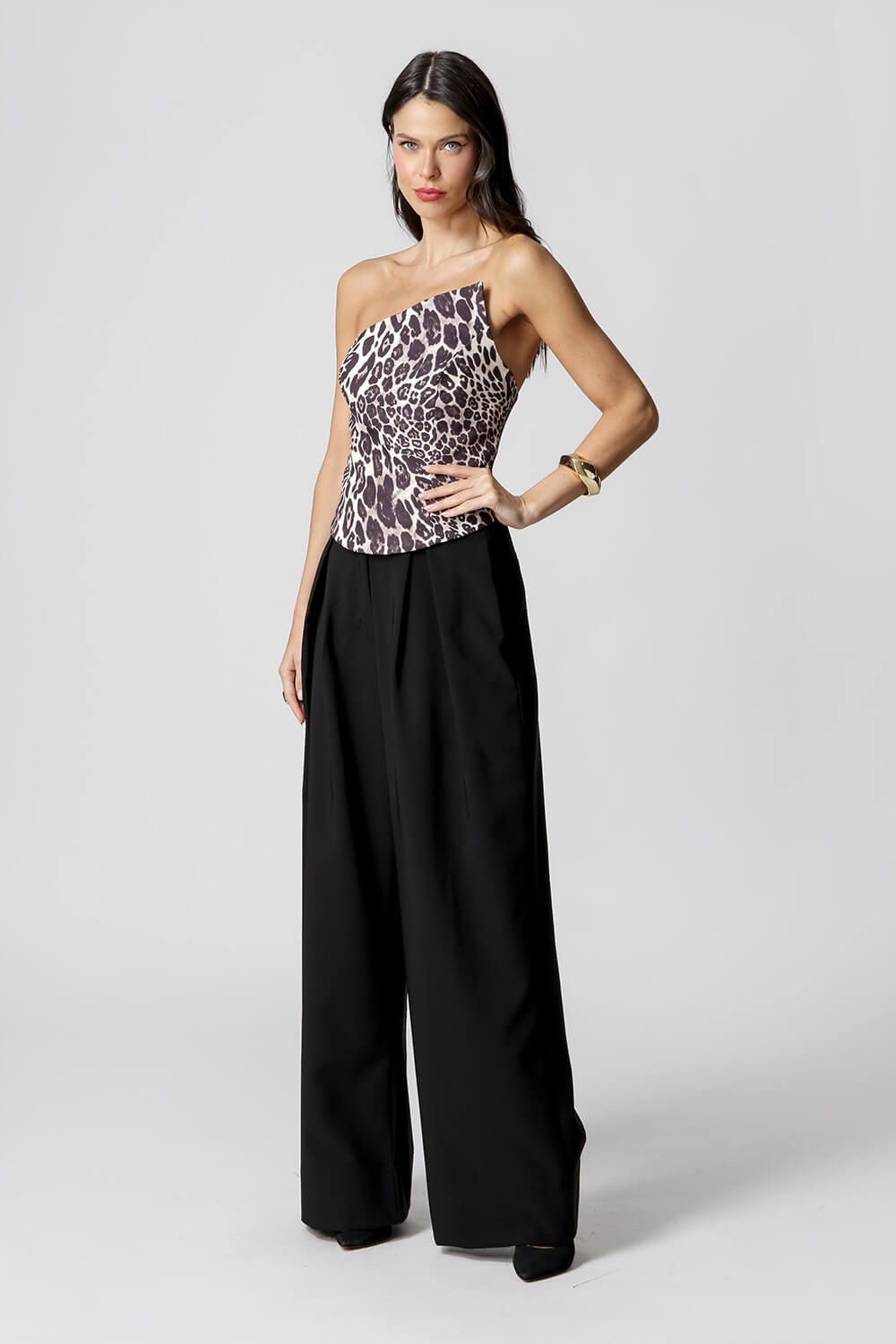 Blusa assimétrica animal print com recortes. Peça fashionista, para você arrasar nas produções.