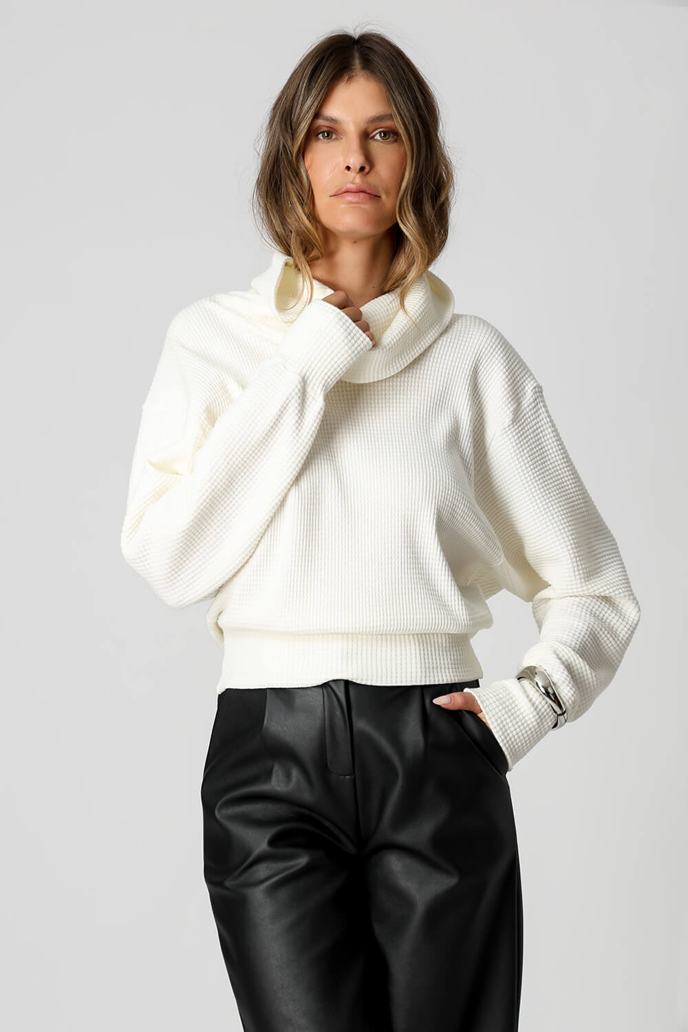 Conforto e estilo para o inverno, perfeita para proteger do frio com charme. Possui mangas morcego que garantem um visual moderno e caimento soltinho. Feita em malha waffle, oferece textura única e toque aconchegante. Ideal para compor looks estilosos nos dias frios.