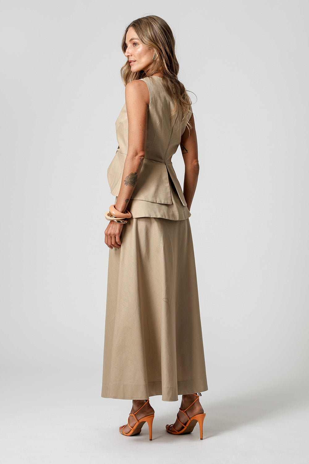 Fechamento com zíper dourado na parte de trás