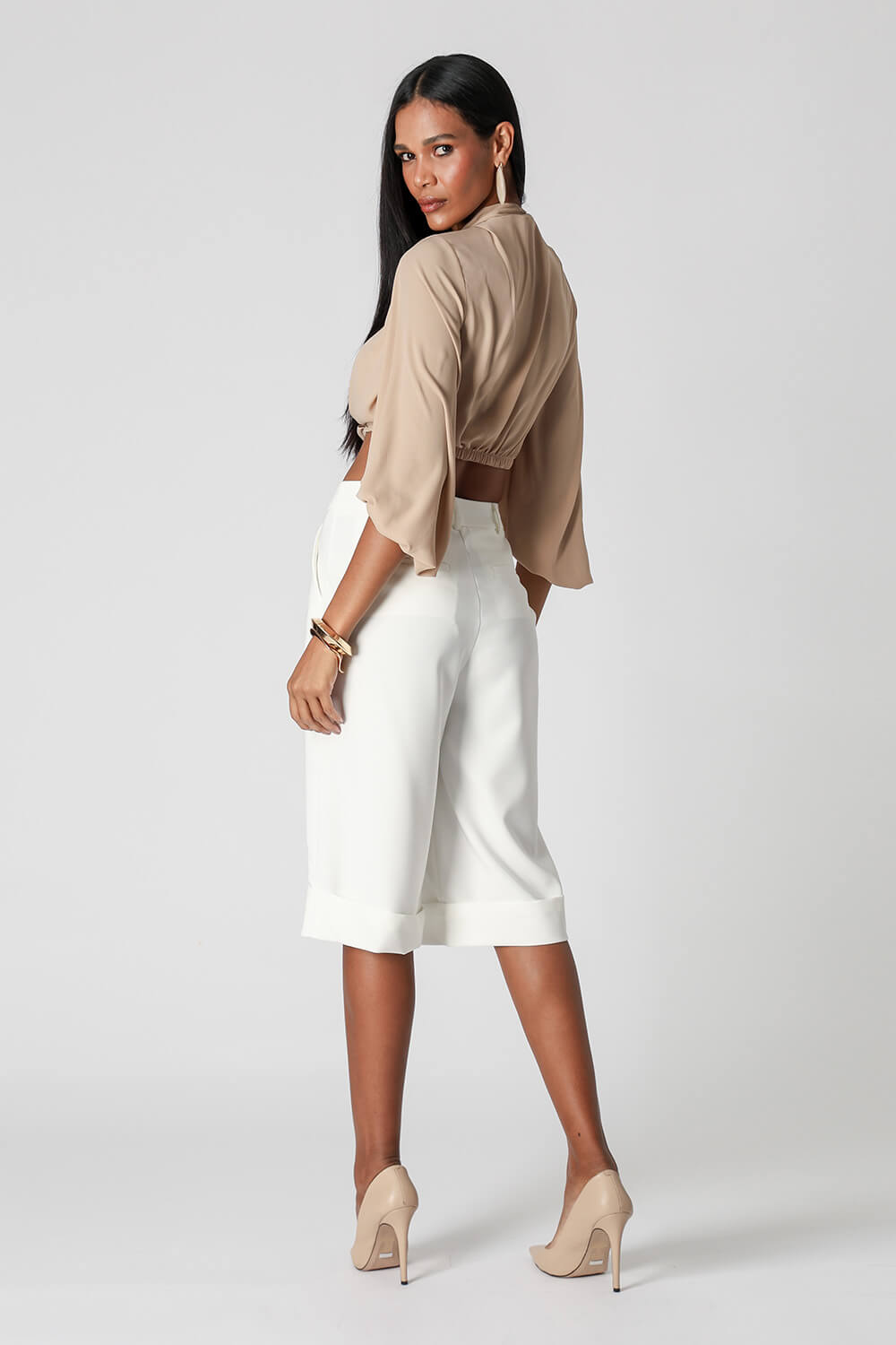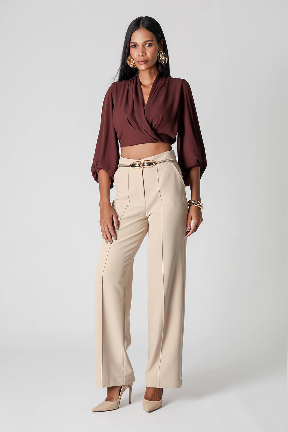 Blusa transpassada manga longa bufante com detalhe de pregas e franzido. Modelo confeccionado em tecido crepe fluído. Uma peça com caimento leve, bonito e elegante que não pode faltar em seu guarda-roupa para compor diversos looks.
