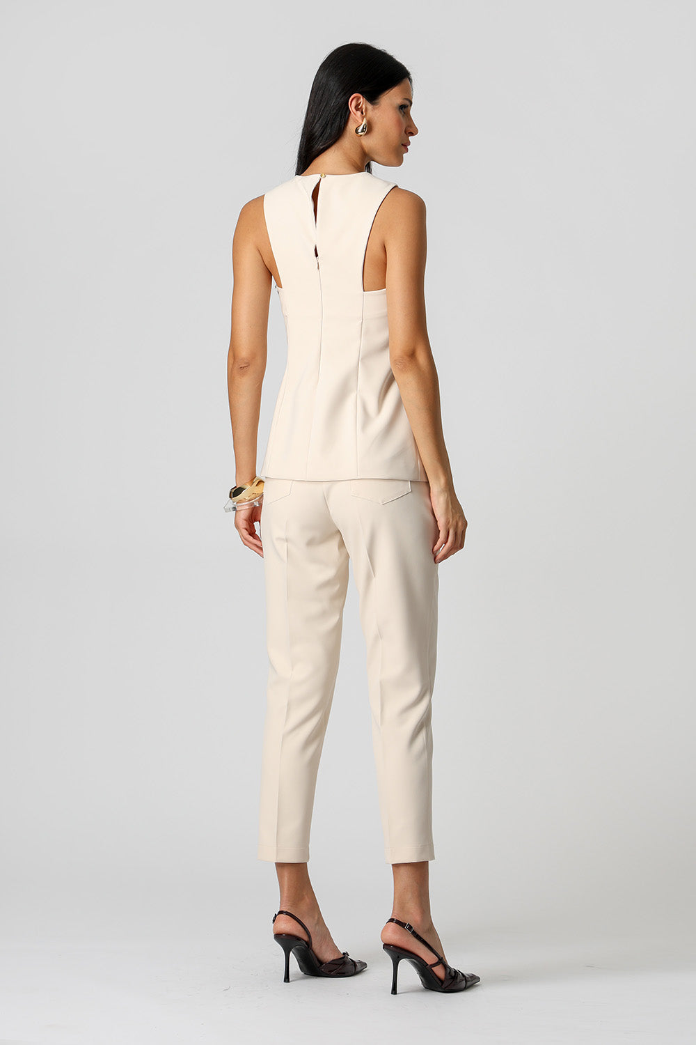 Blusa estilo túnica confeccionada em tecido de alfaiataria leve, com recortes estratégicos que valorizam a silhueta. Elegante e versátil, ideal para compor looks sofisticados com conforto.