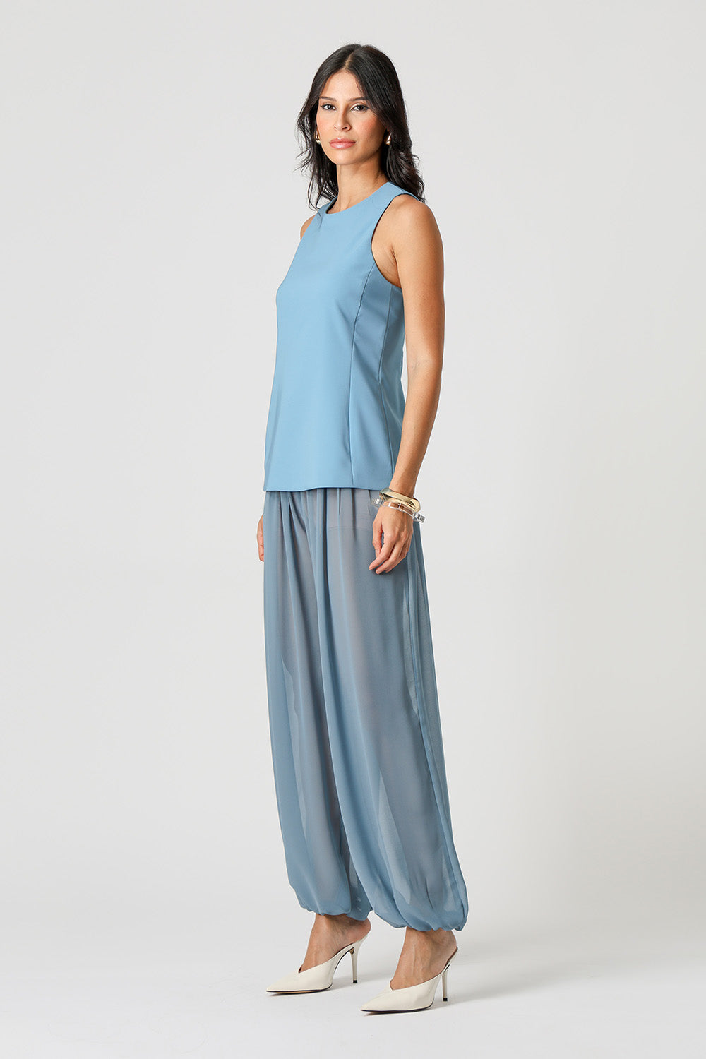 Blusa estilo túnica confeccionada em tecido de alfaiataria leve, com recortes estratégicos que valorizam a silhueta. Elegante e versátil, ideal para compor looks sofisticados com conforto.