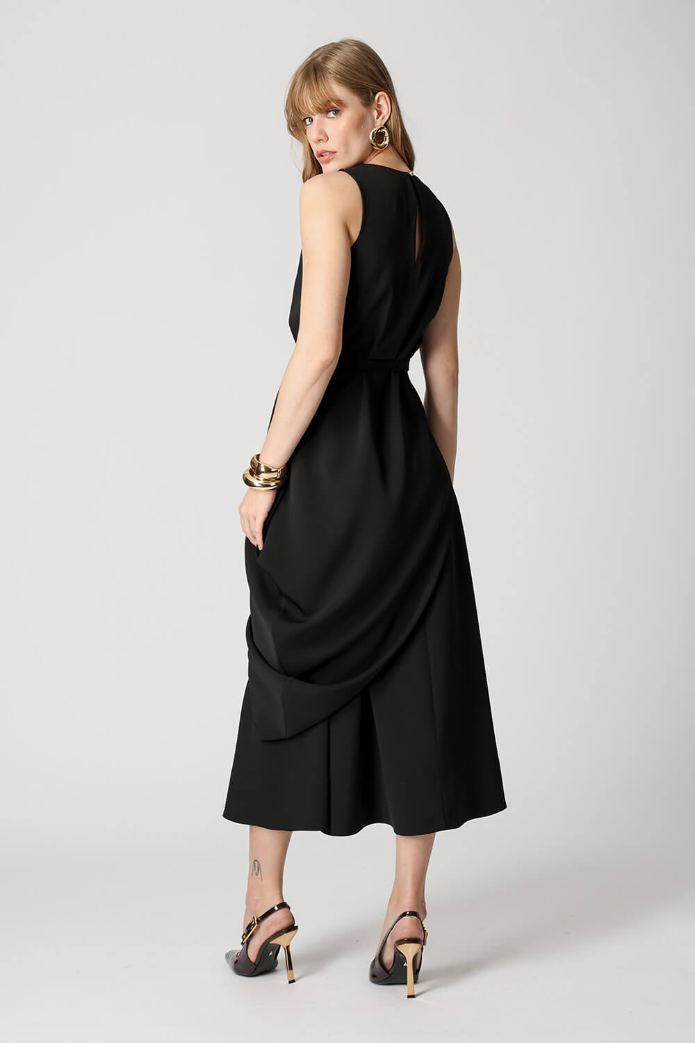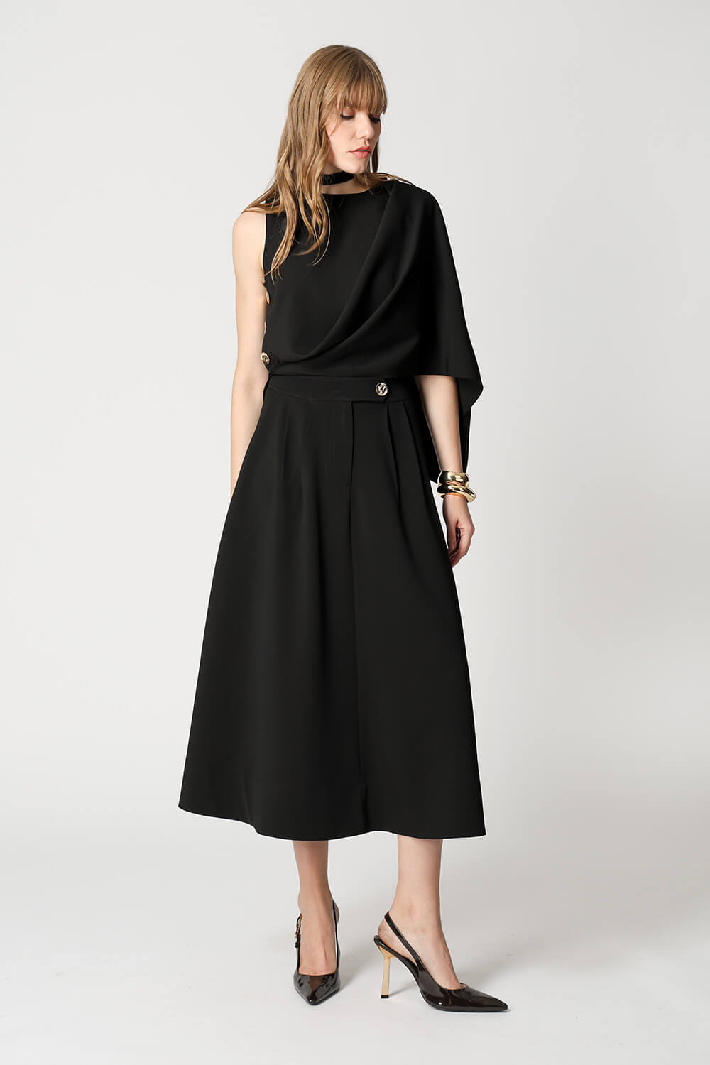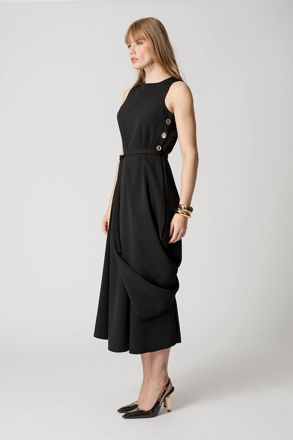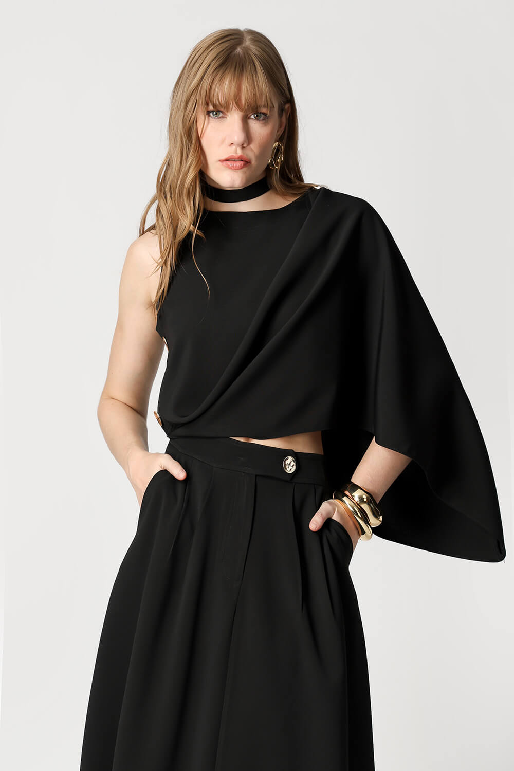 Blusa sem mangas e com modelagem longa. Possui abertura lateral, deixando o braço à mostra de forma elegante. Conta com fechamento lateral por botões e detalhe de broche que adiciona um toque sofisticado à peça. Ideal para compor sobreposições modernas e estilosas.