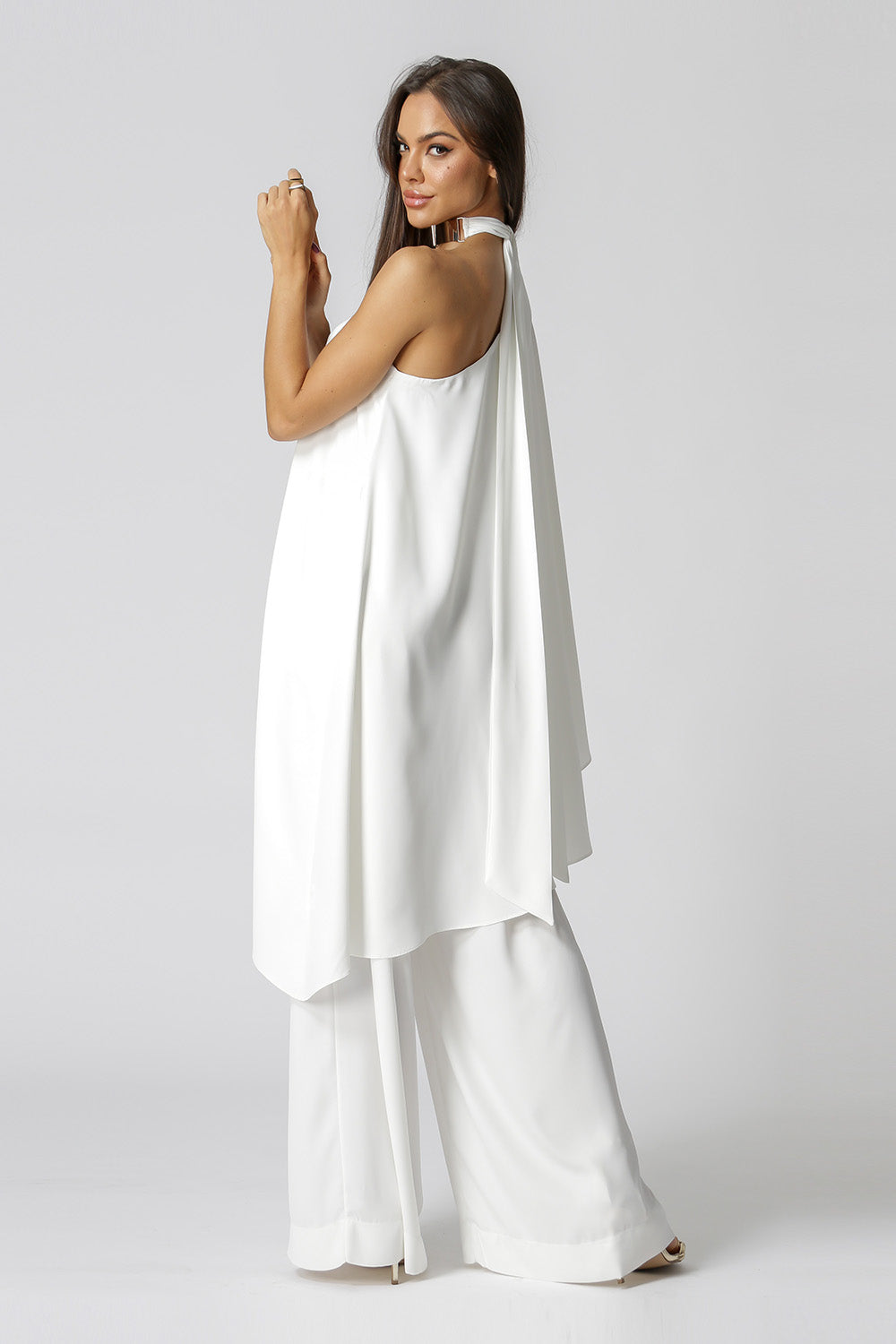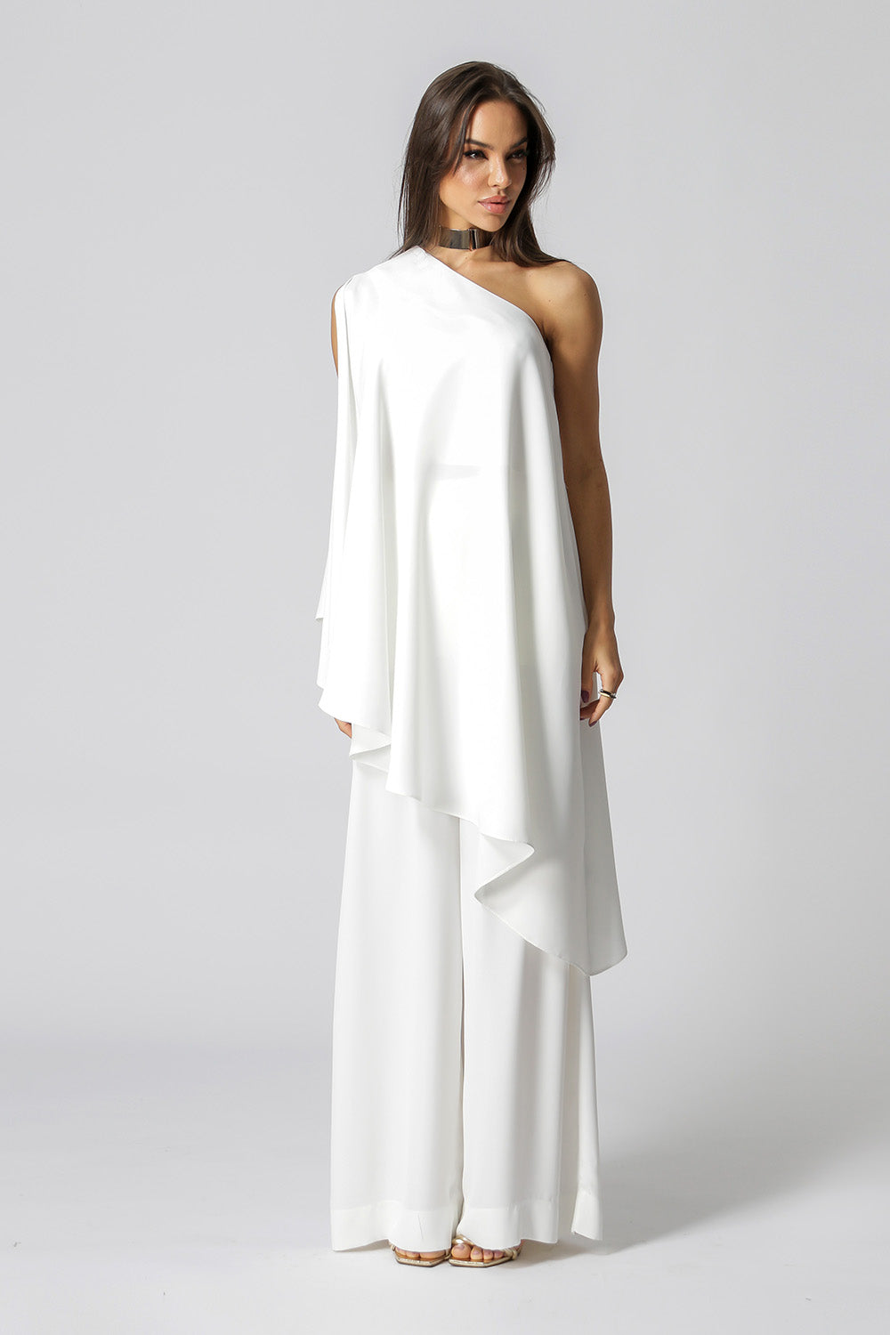 Blusa Túnica de ombro único. Peça confeccionada em tecido crepe fluído. Um modelo elegante, moderno com shape soltinho trazendo conforto, ótima prosposta para mood casual.