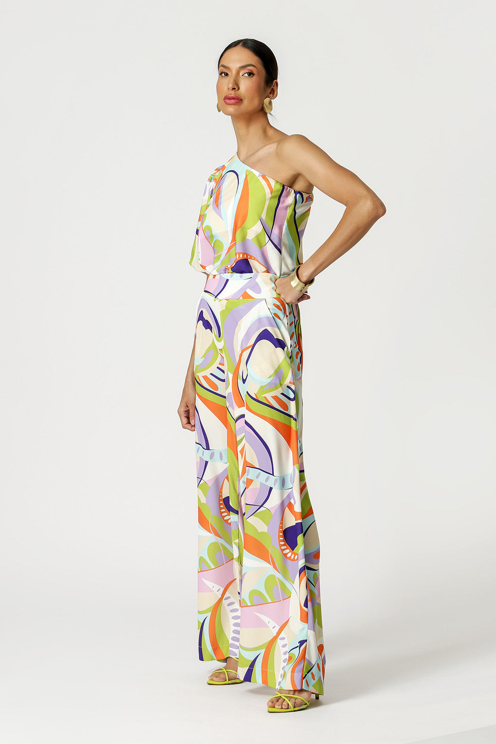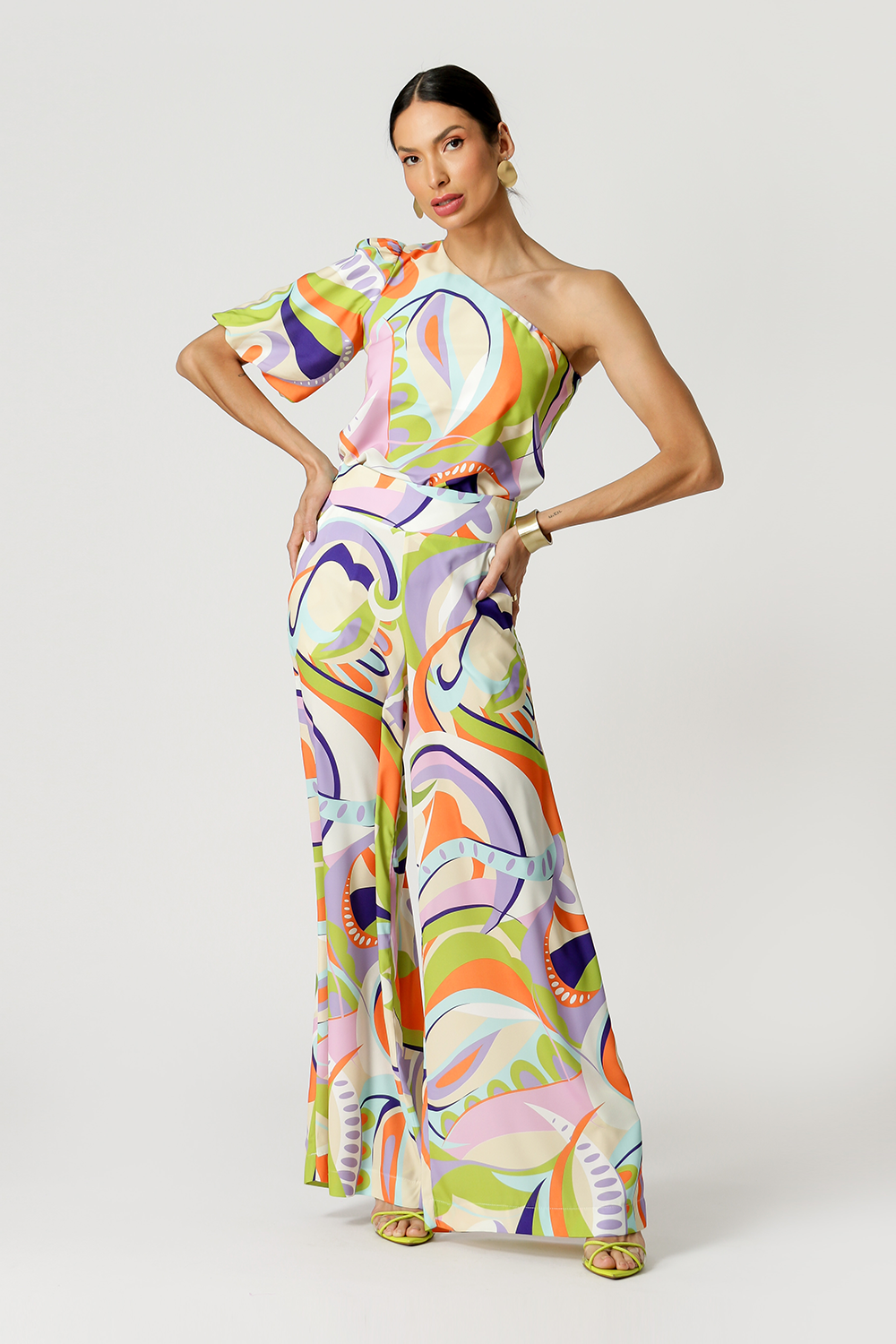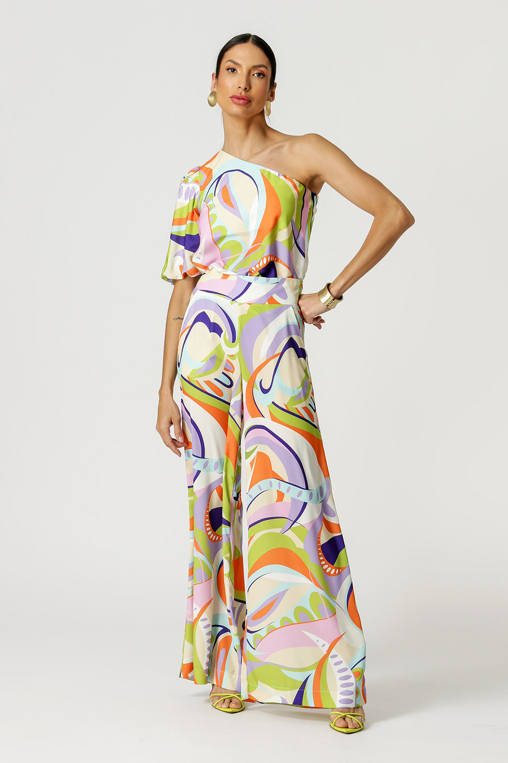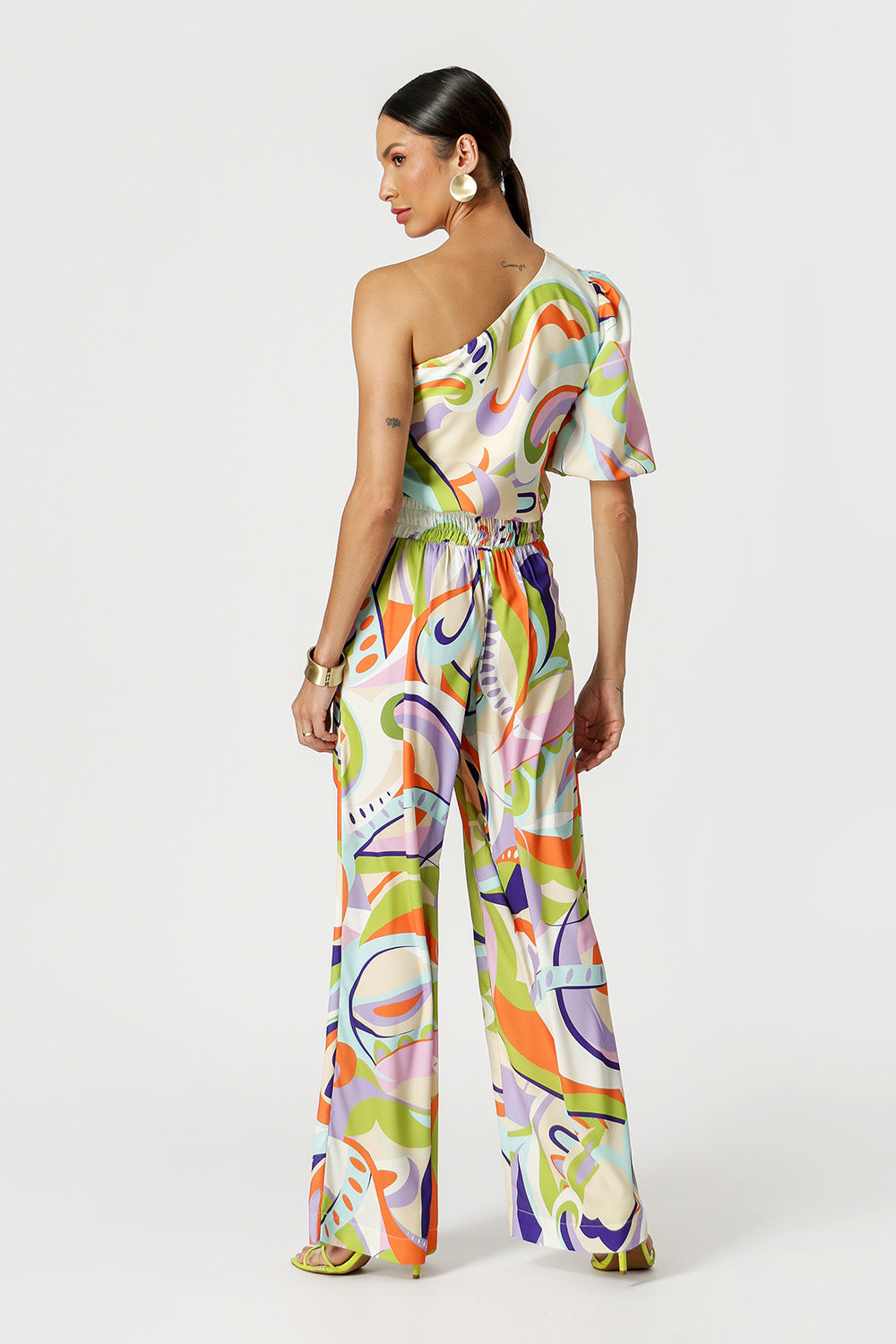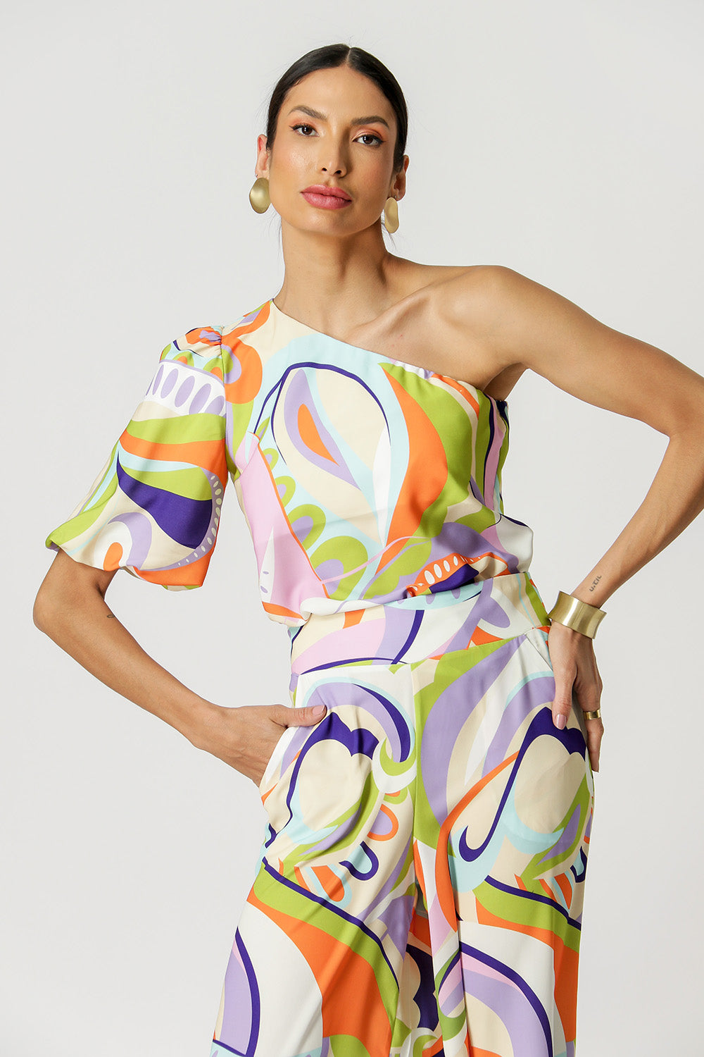 Blusa um ombro só com manga bufante.Peça feita no tecido leve. Ideal para compor seu look casual.