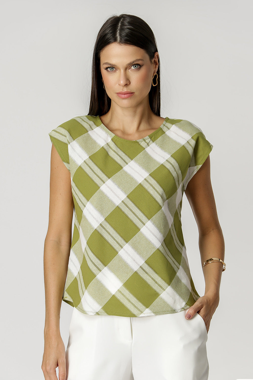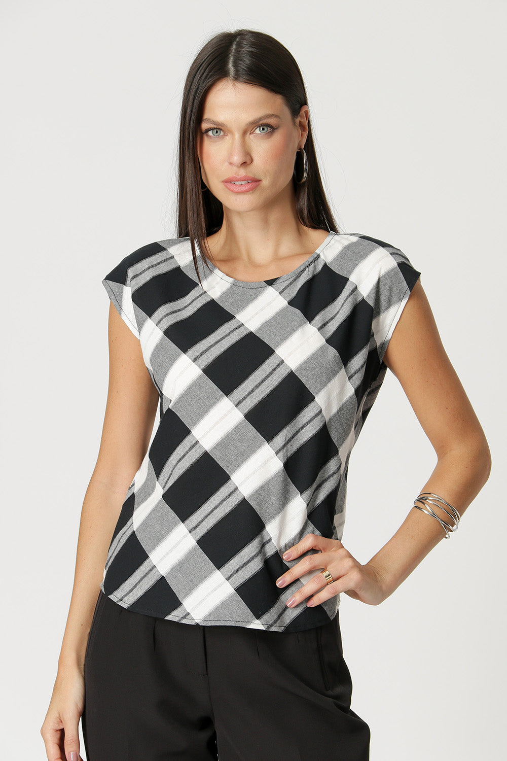 Blusa xadrez básica com detalhe de botão. Confeccionada em tecido xadrez. Uma peça básica que pode ser usada em qualquer ocasião casual e arrasar neste inverno.