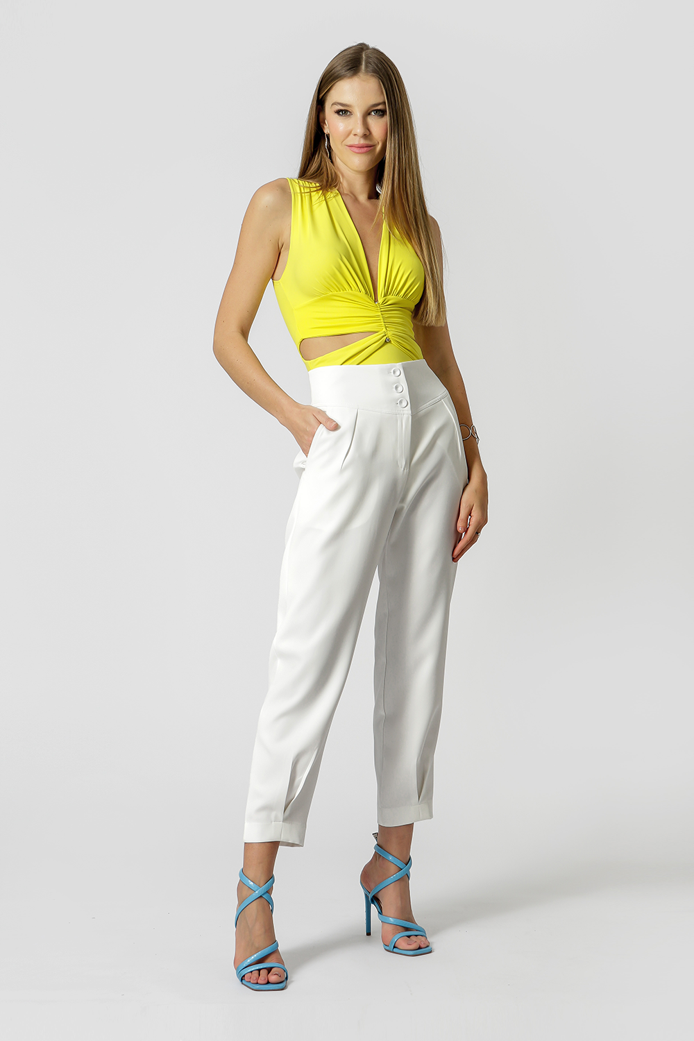 • Body Decote V Franzido - CANARIO