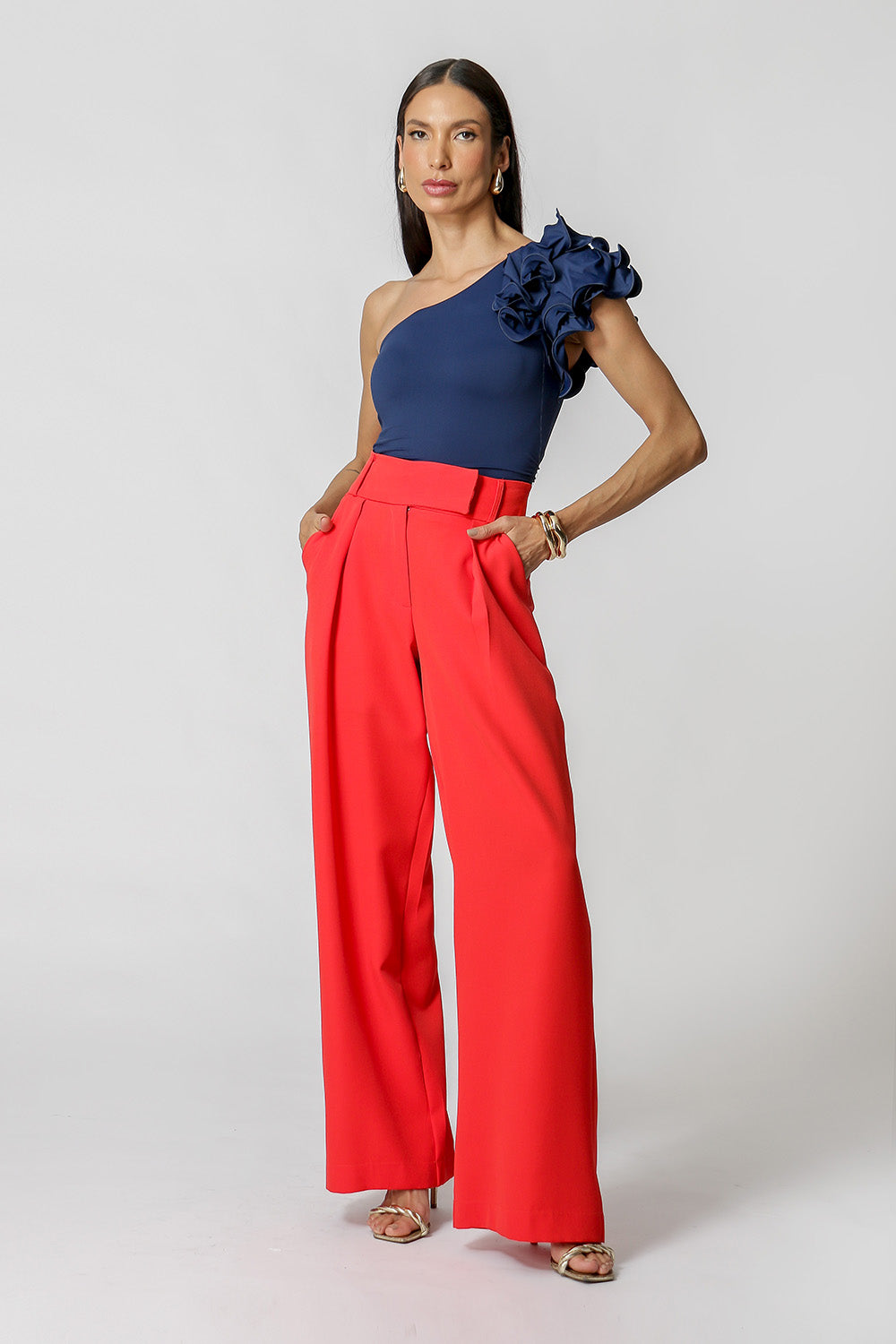 Body com um ombro só e detalhe de flor do próprio tecido. Confeccionada em tecido malha amni. Uma peça cheia de charme com modelagem justa que valoriza a silhueta feminina.