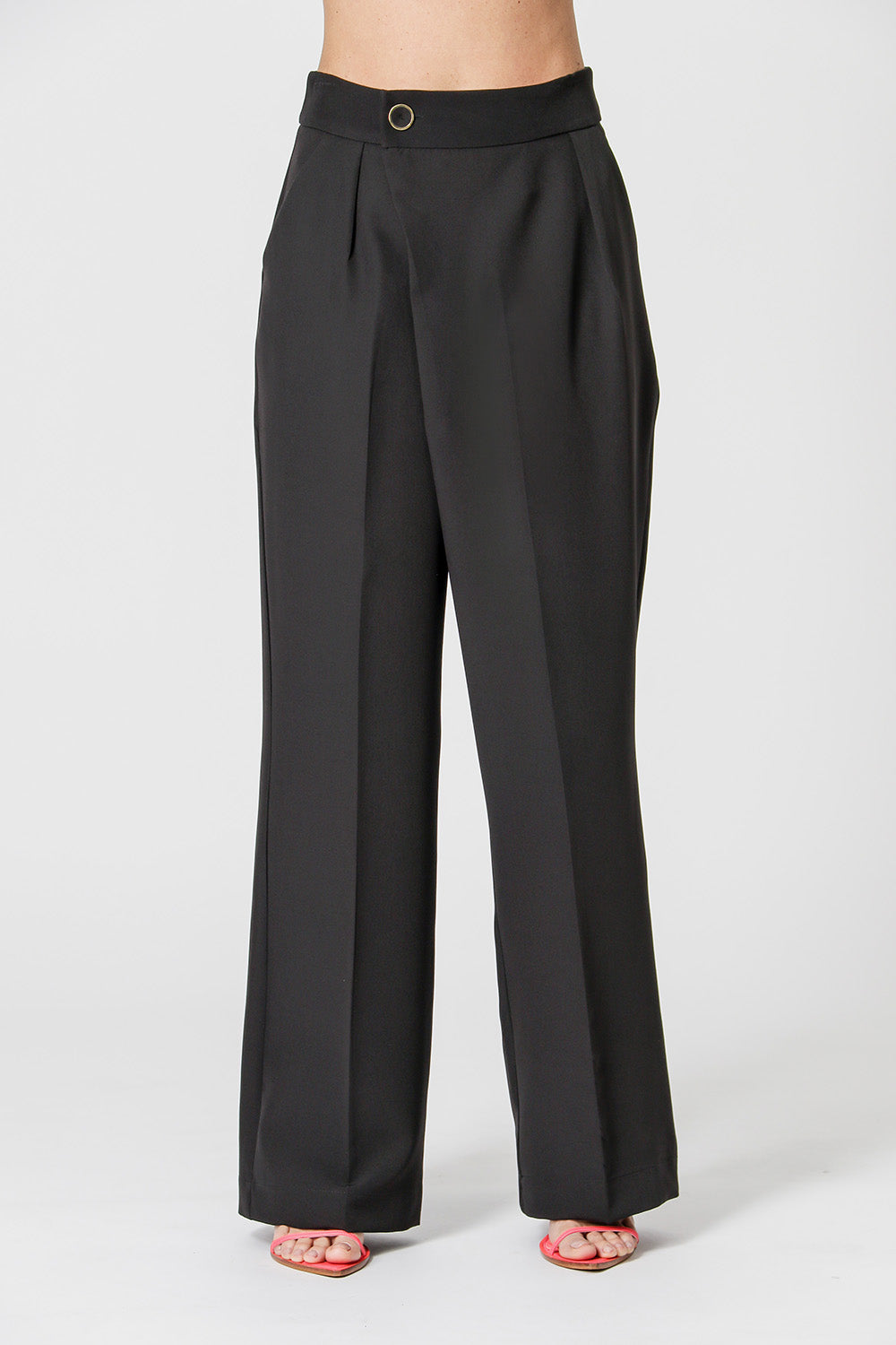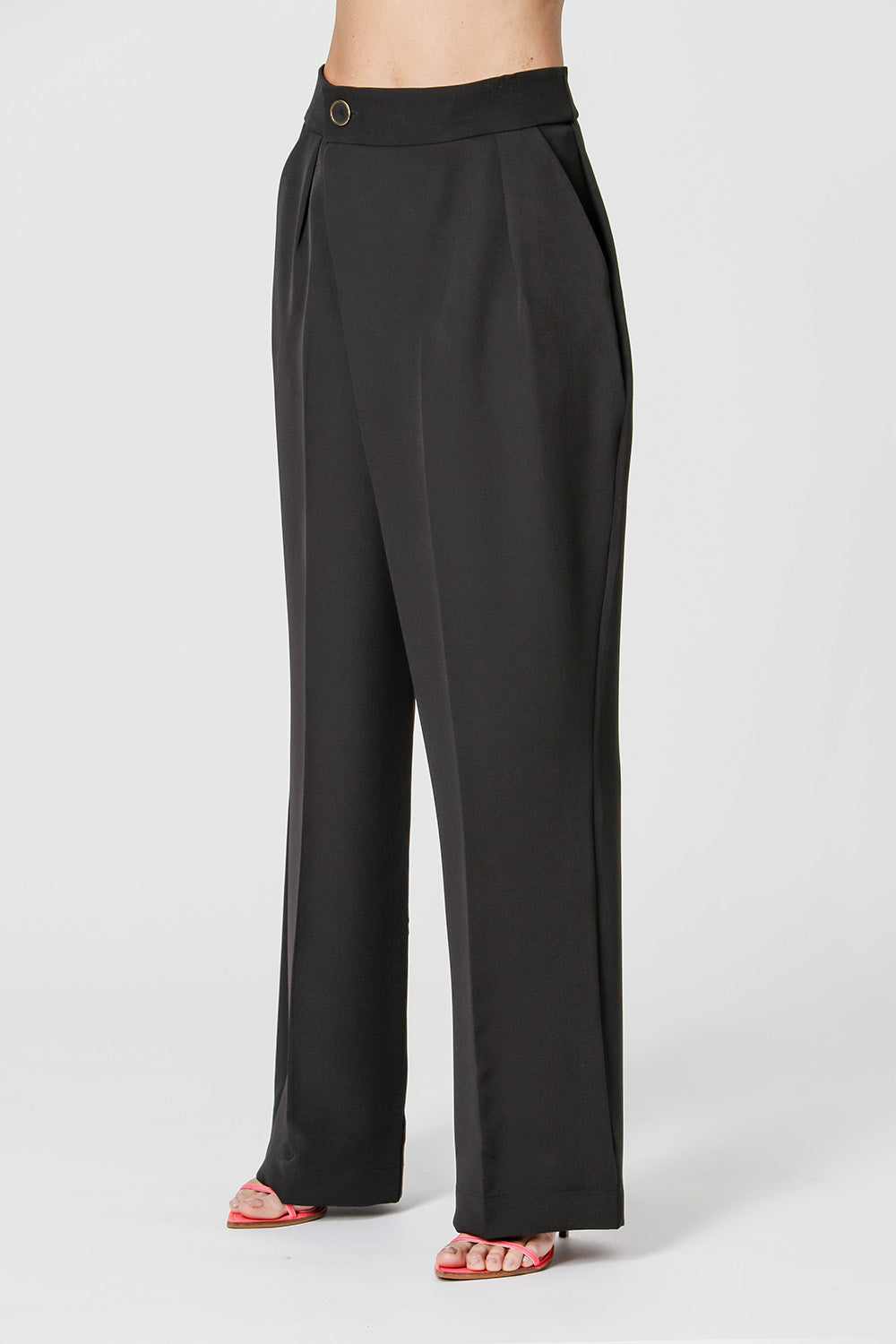 Calça com transpasse na frente. Confeccionada em tecido Alfaiataria. Uma peça com shape solto e elegante ideal para compor look work.