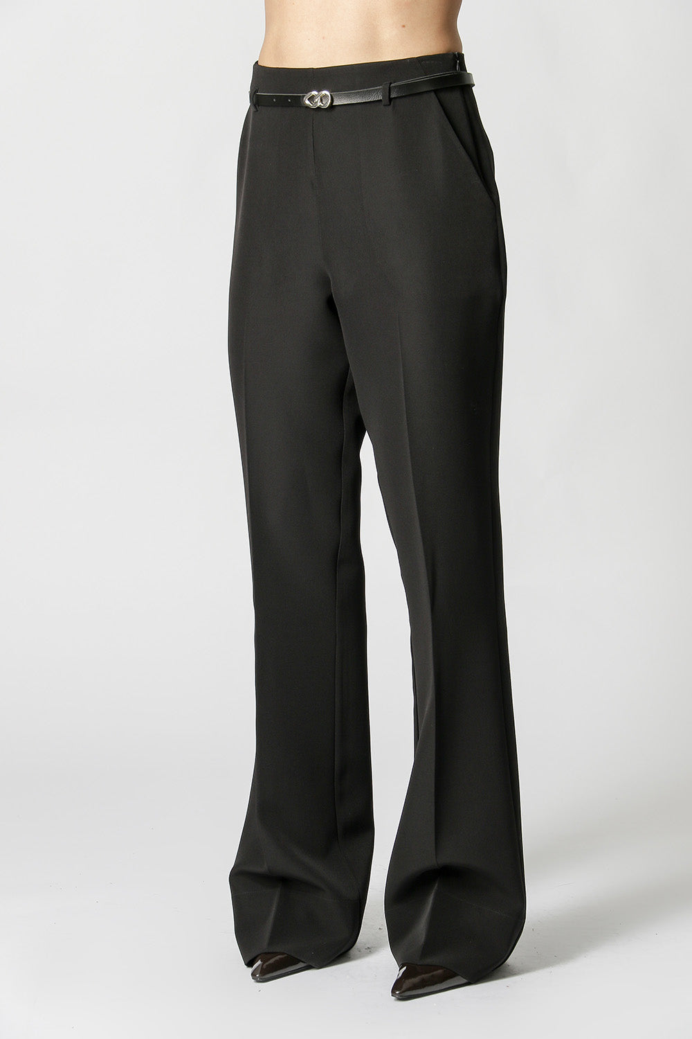 Calça de alfaiataria reta com cinto fino em courino e fivela dourada. A calça ideal para seu office look!