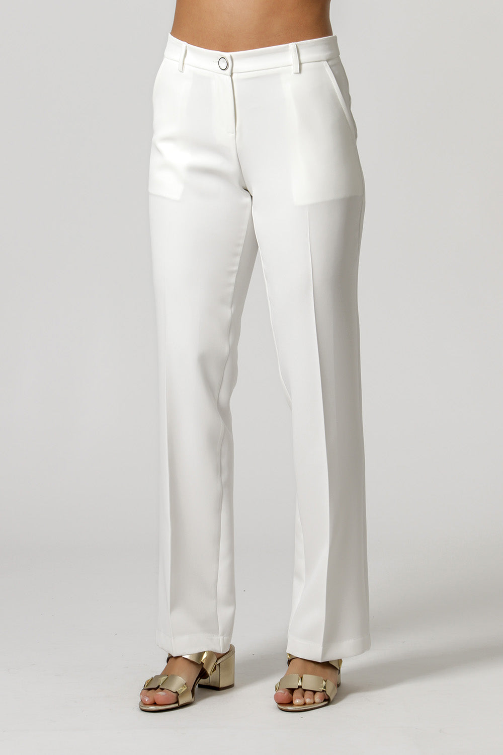 Calça básica de alfaiataria reta. Possui comprimento um pouco mais curto para não sobrar na barra e ter o caimento reto. Ideal para looks work.