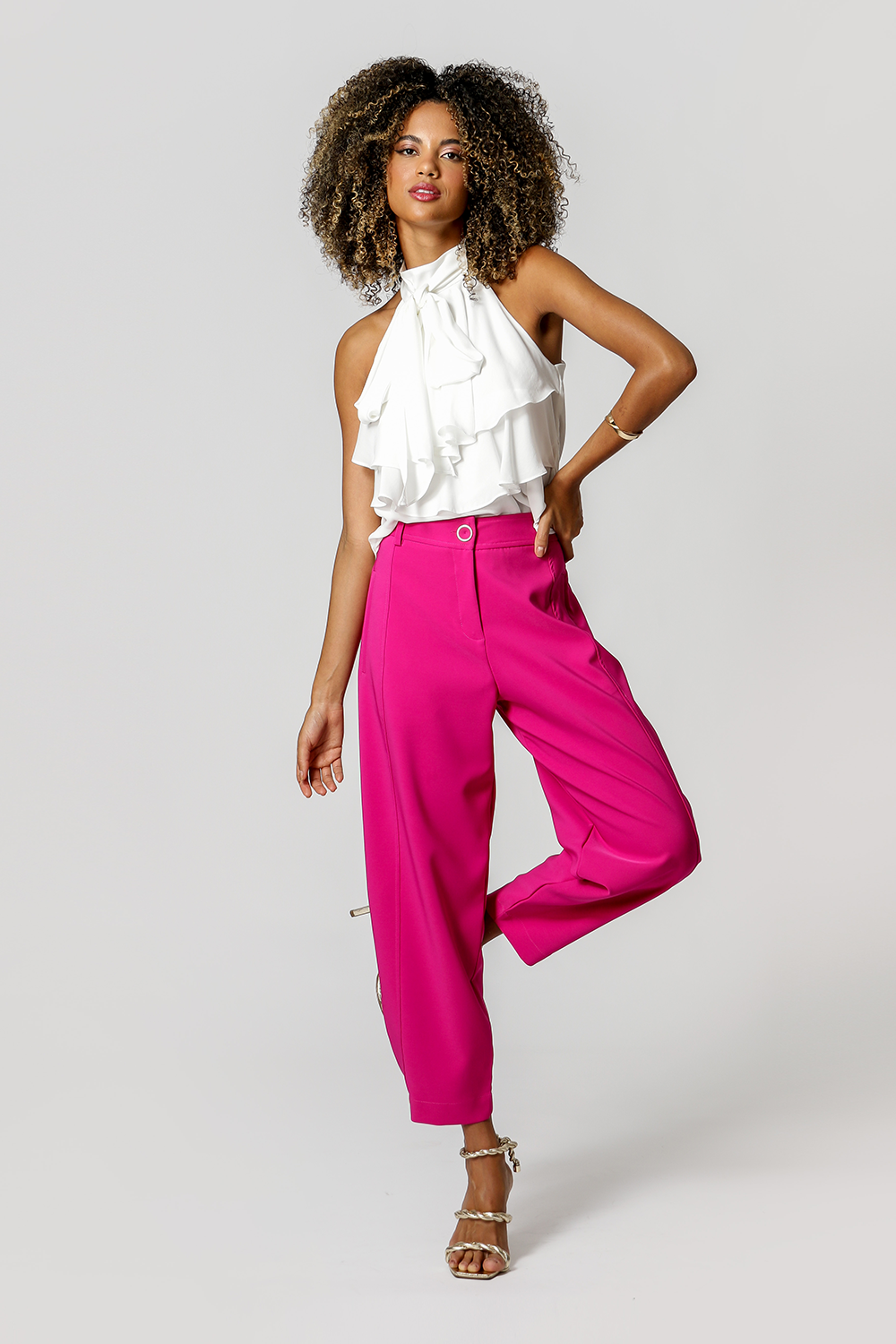 Calça Baloon com botões forrado do proprio tecido. Peça Confeccionada e tecido alfaiataria. Um modelo elegante diferenciado super confortavel para mood work.