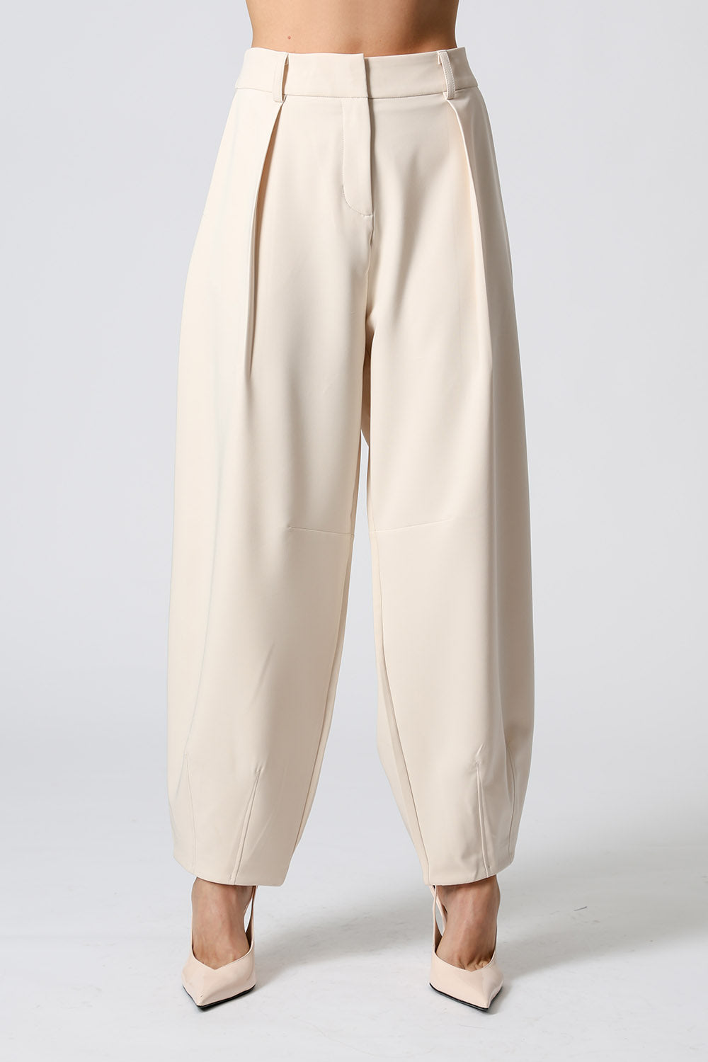 A calça barrel traz pregas na cintura, nas pernas e na barra, conferindo um caimento sofisticado e moderno. Com pregas nas costas, ela garante um ajuste perfeito. O bolso faca funcional na frente oferece praticidade, enquanto o tecido alfaiataria proporciona conforto e elegância.