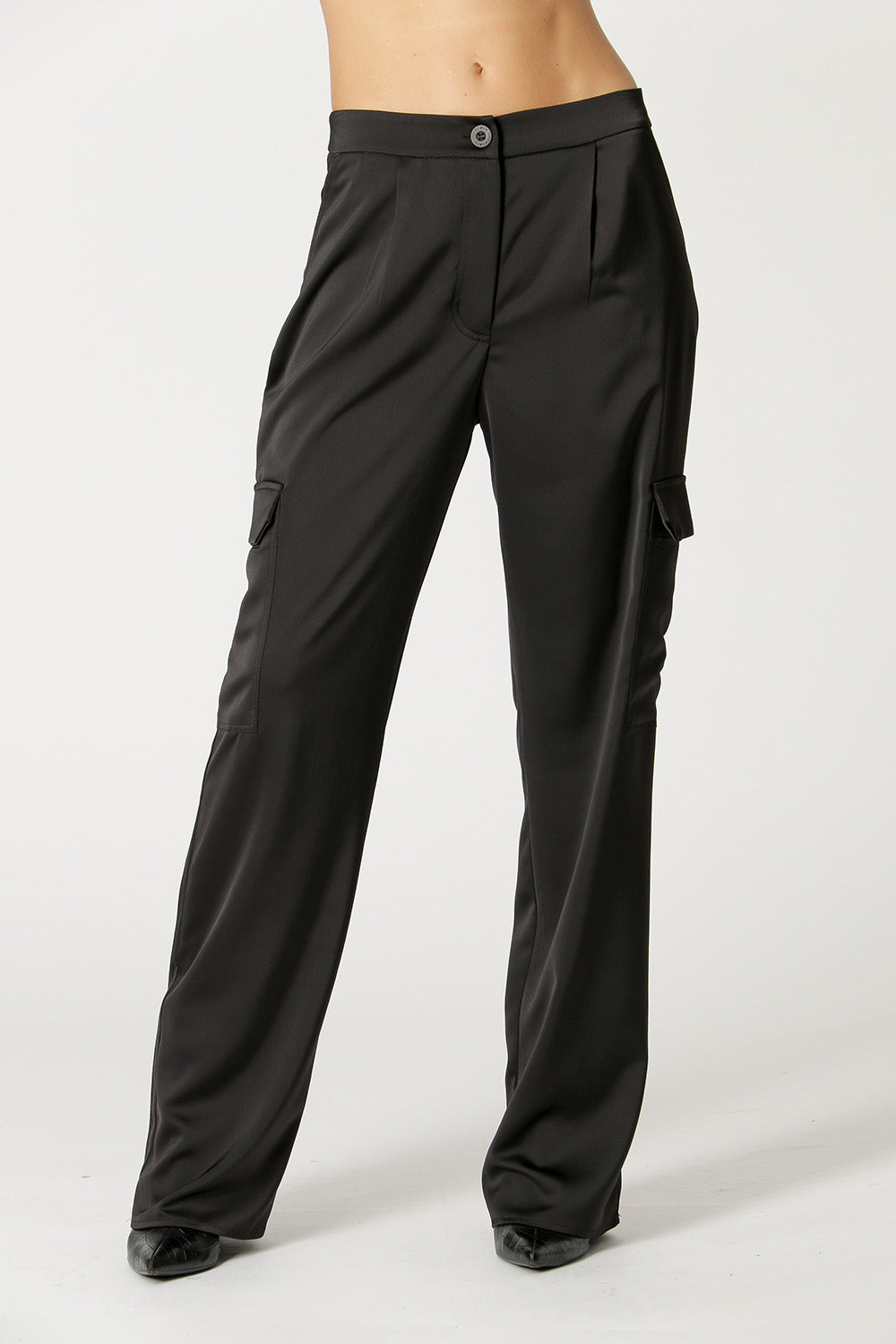 Calça bolso lateral utilitário, com lapela e pregas. Aposte nessa peça para montar um look cheio de estilo.