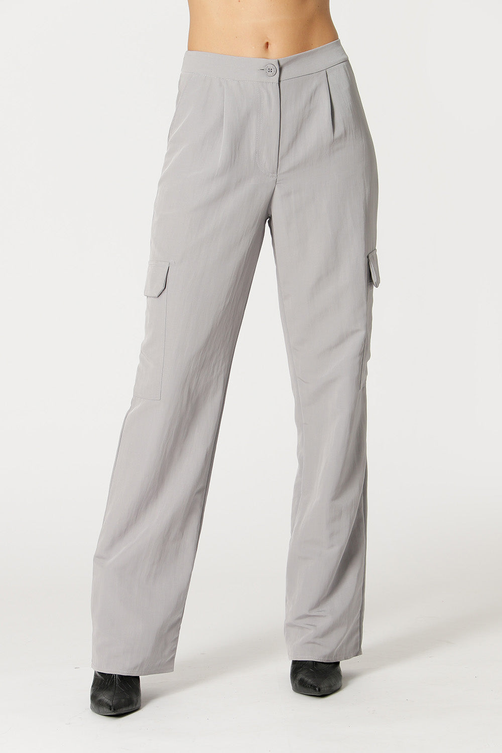 Calça bolso lateral utilitário, com lapela e pregas. Aposte nessa peça para montar um look cheio de estilo.