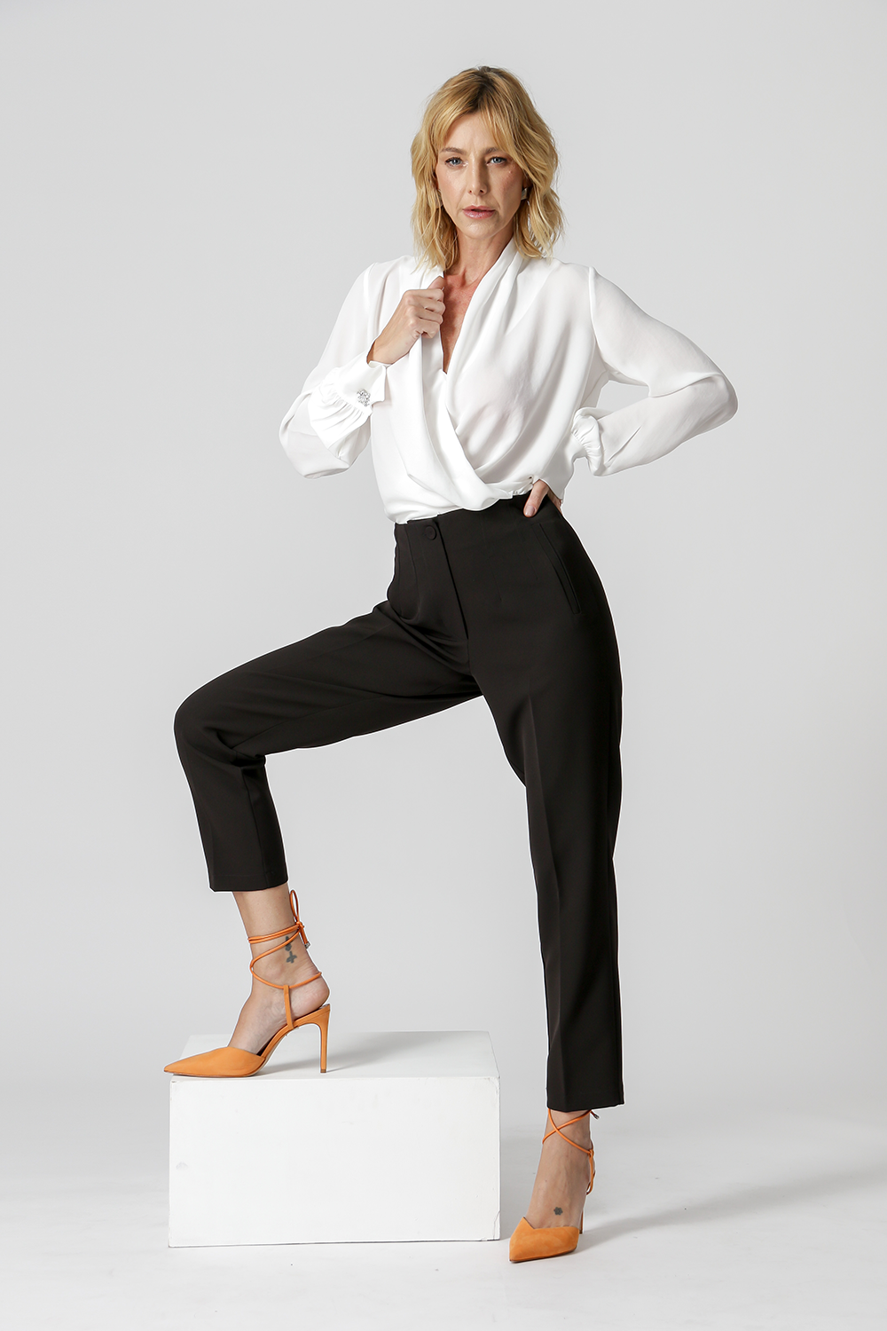 Calça cenoura alfaiataria com detalhes de pence na frente. Confeccionada em tecido alfaiataria. Uma peça perfeita para mood moderno, versátil e que não pode faltar em seu closet.