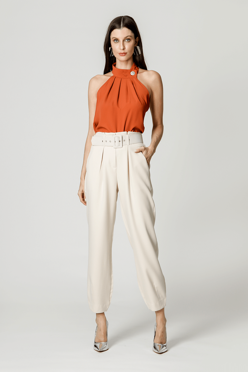 Calça com cintura clochard alta, confeccionado em alfaiataria, com cinto e detalhes de pregas. É o clássico que você precisa ter no armário. Perfeito para usar no dia a dia.