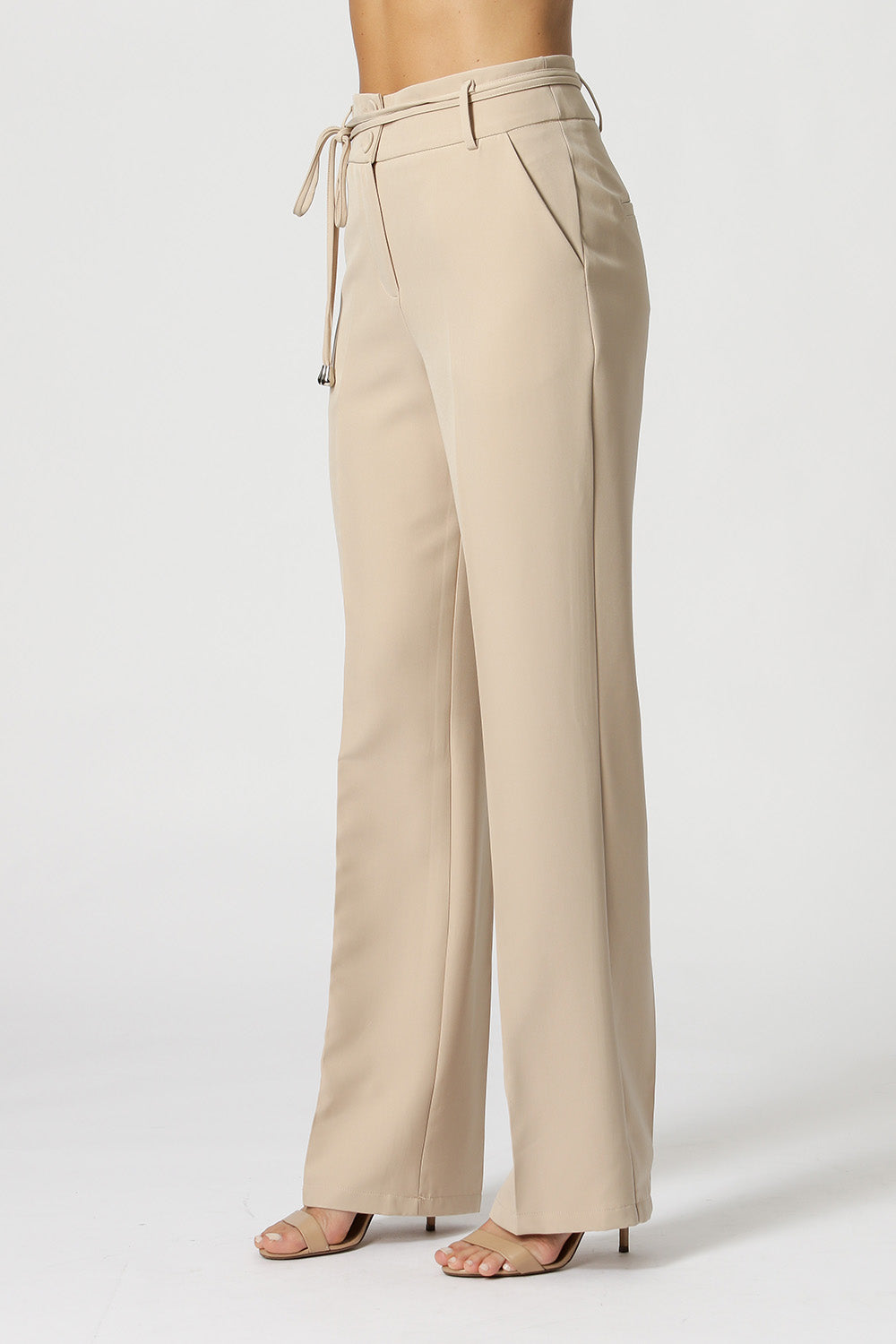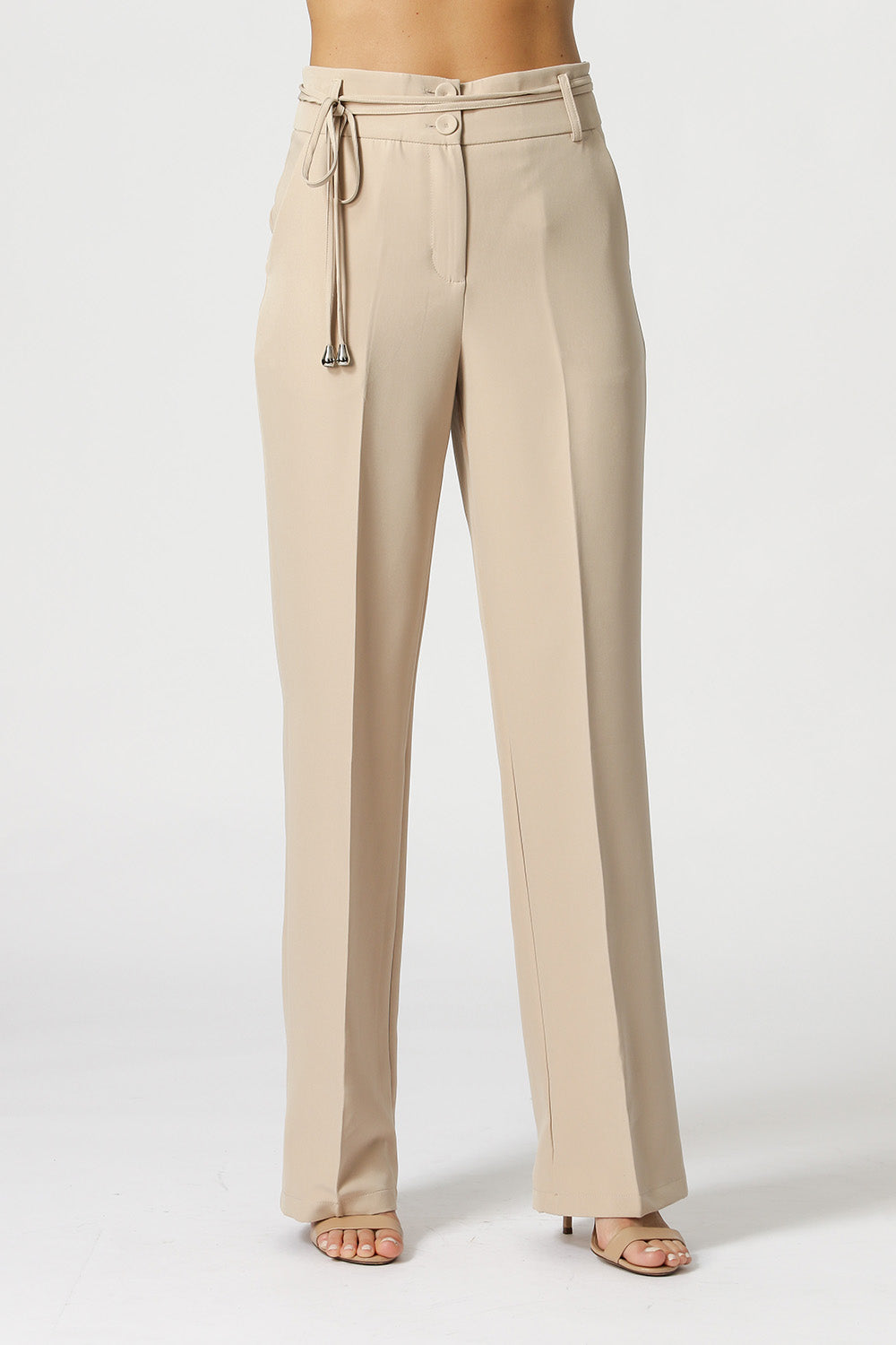 Calça com cinto em tiras do próprio tecido. Confeccionada em alfaiataria. Uma peça com shape reto,versátil e essencial para ter em seu guarda roupa e montar vários looks work.