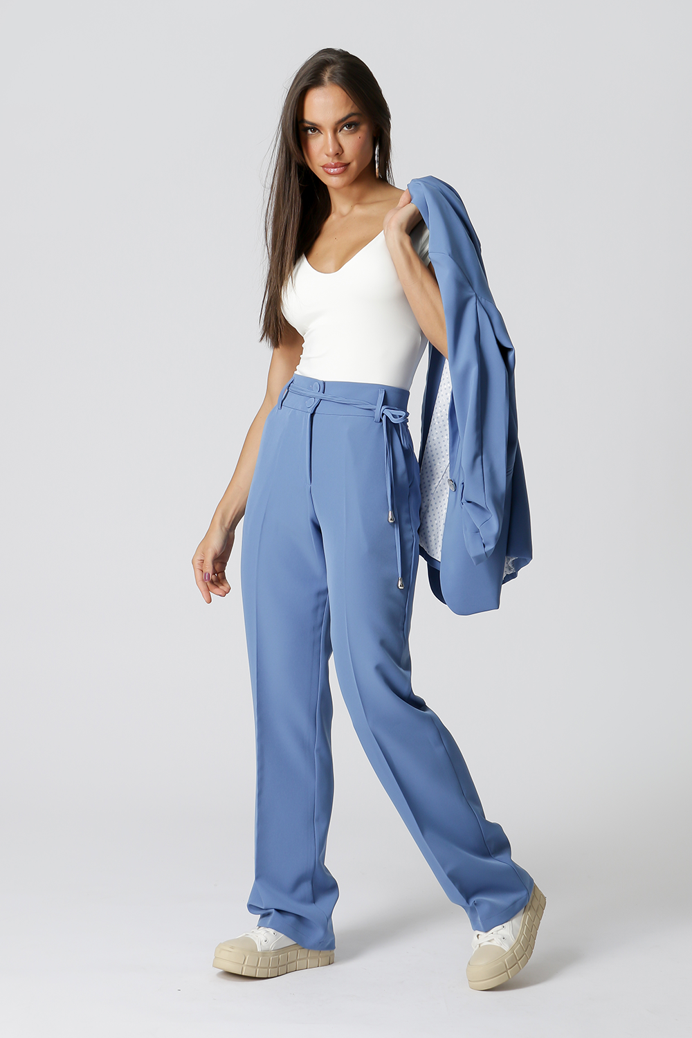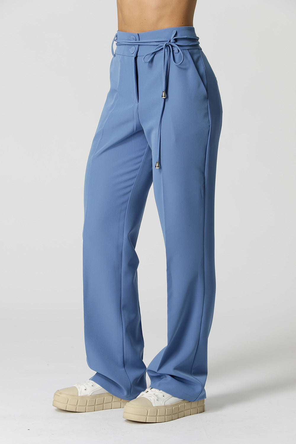 Calça com cinto em tiras do próprio tecido. Confeccionada em alfaiataria. Uma peça com shape reto,versátil e essencial para ter em seu guarda roupa e montar vários looks work.