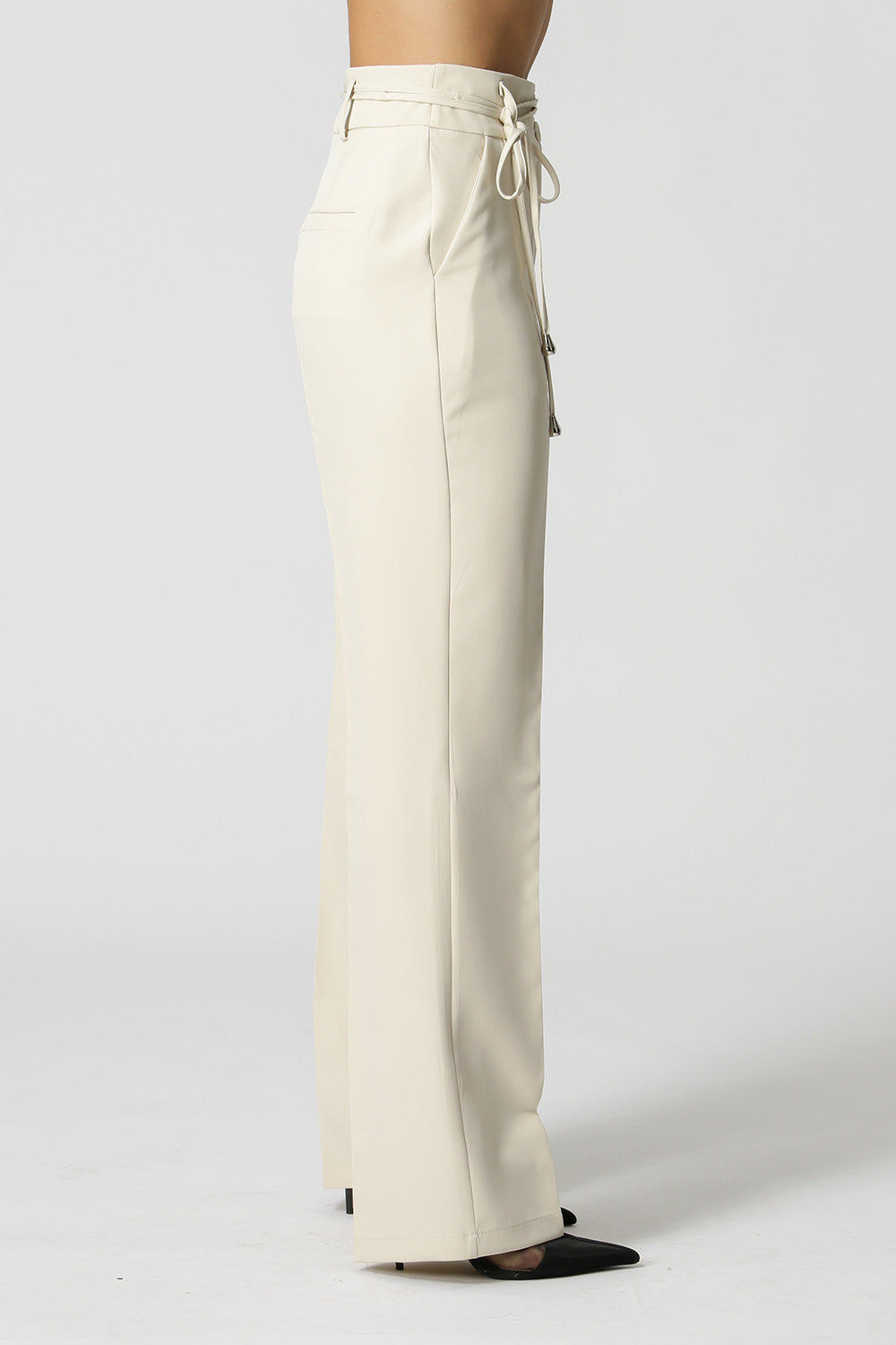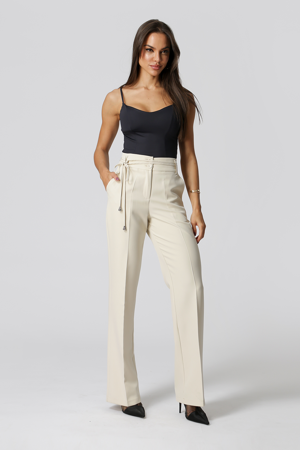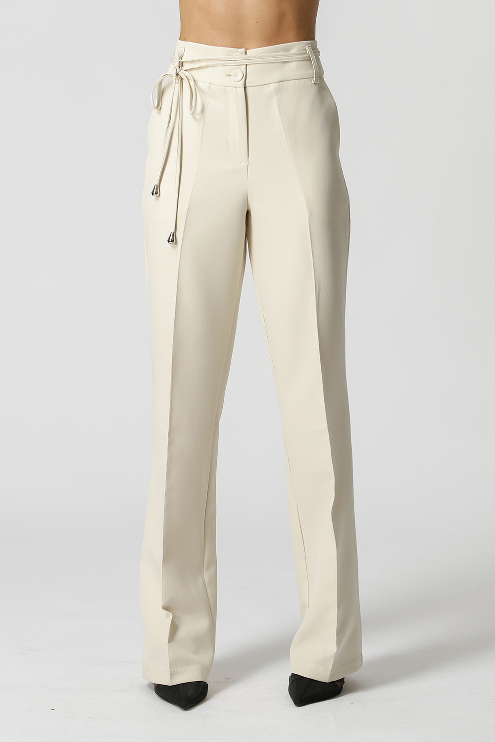 Calça com cinto em tiras do próprio tecido. Confeccionada em alfaiataria. Uma peça com shape reto,versátil e essencial para ter em seu guarda roupa e montar vários looks work.