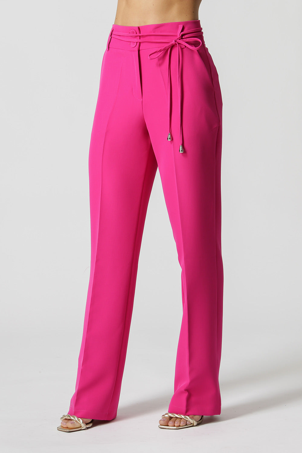 Calça com cinto em tiras do próprio tecido. Confeccionada em alfaiataria. Uma peça com shape reto,versátil e essencial para ter em seu guarda roupa e montar vários looks work.