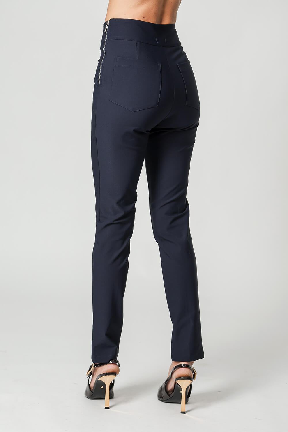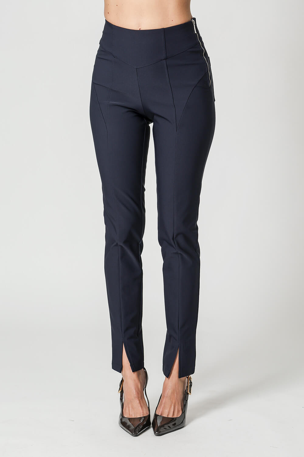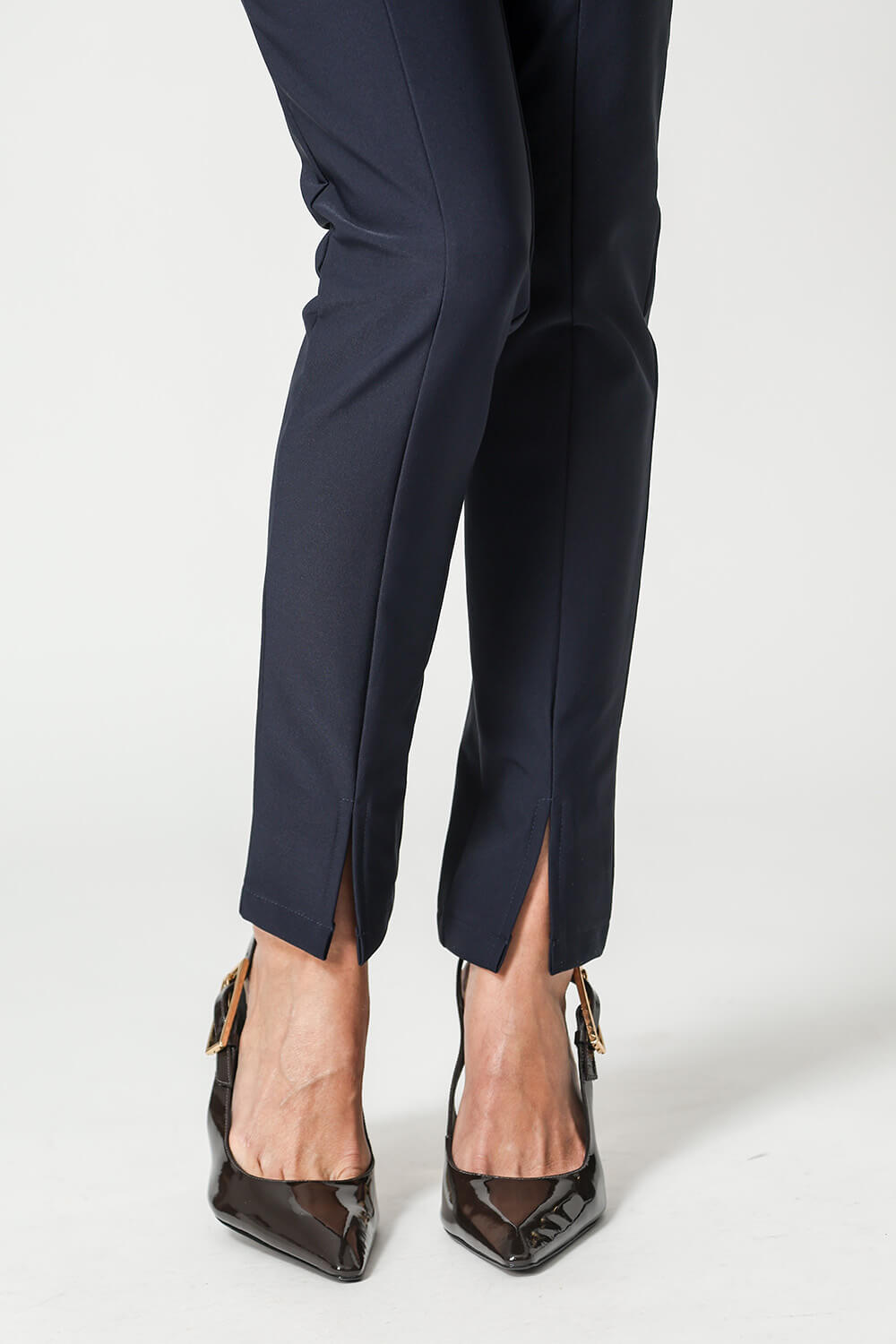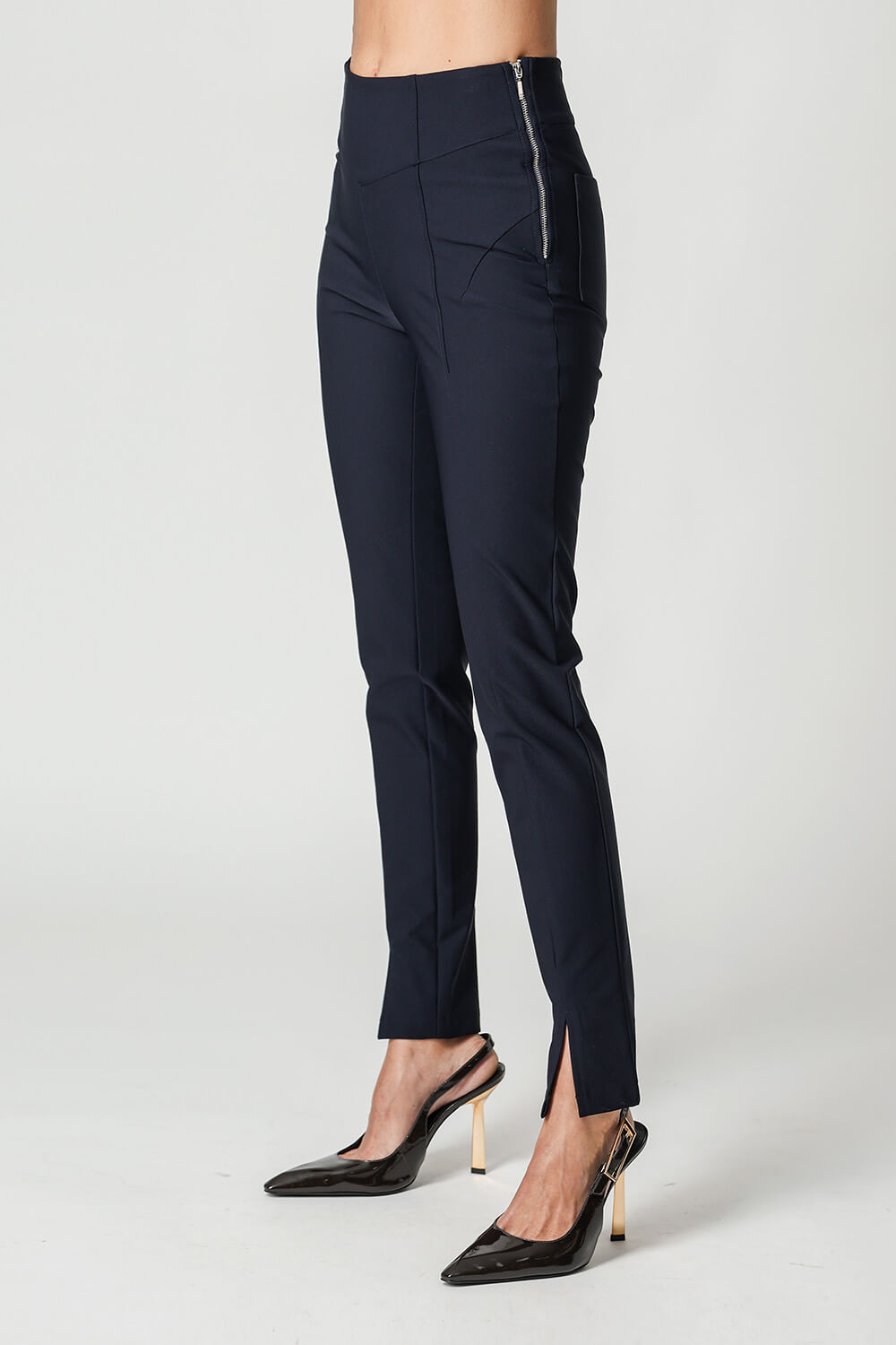 Calça com recortes e fenda frontal. Uma peça que compõe looks de trabalho e casuais.