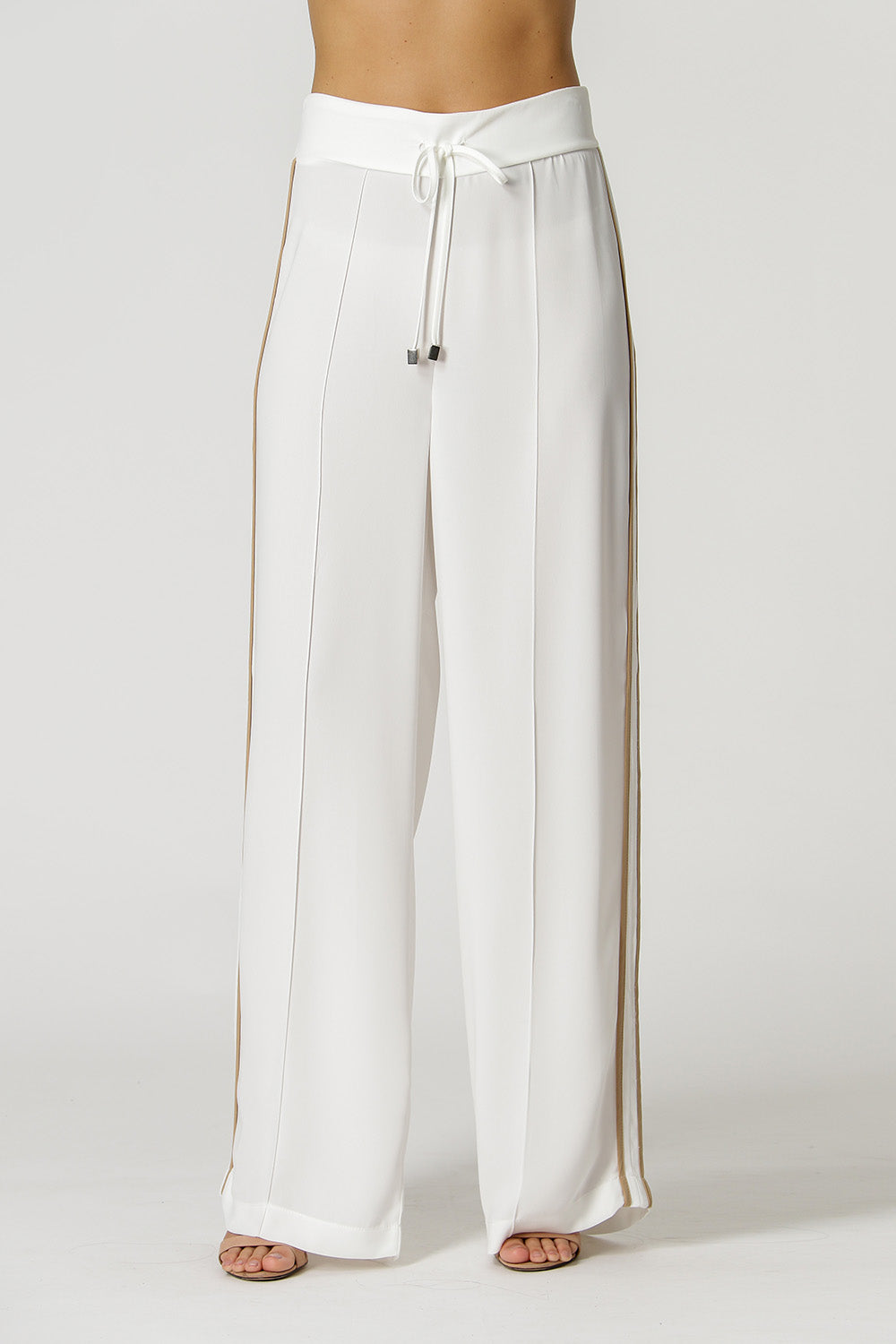 Calça com detalhe de viés na lateral e elástico no cós. Confecciona em tecido crepe fluido premium. Modelo com shape mais solto, versátil com caimento perfeito. Uma peça essencial e que não pode faltar em seu closet.