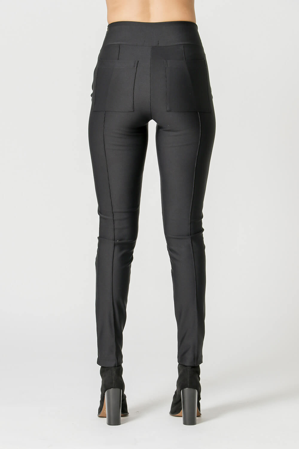 Calça Couro Sintético Com Nervuras. Modelo confeccionado em tecido couro sintético. Um modelo elegante moderno e ideal para compor diversos looks com estilo, aposte nesse modelo.